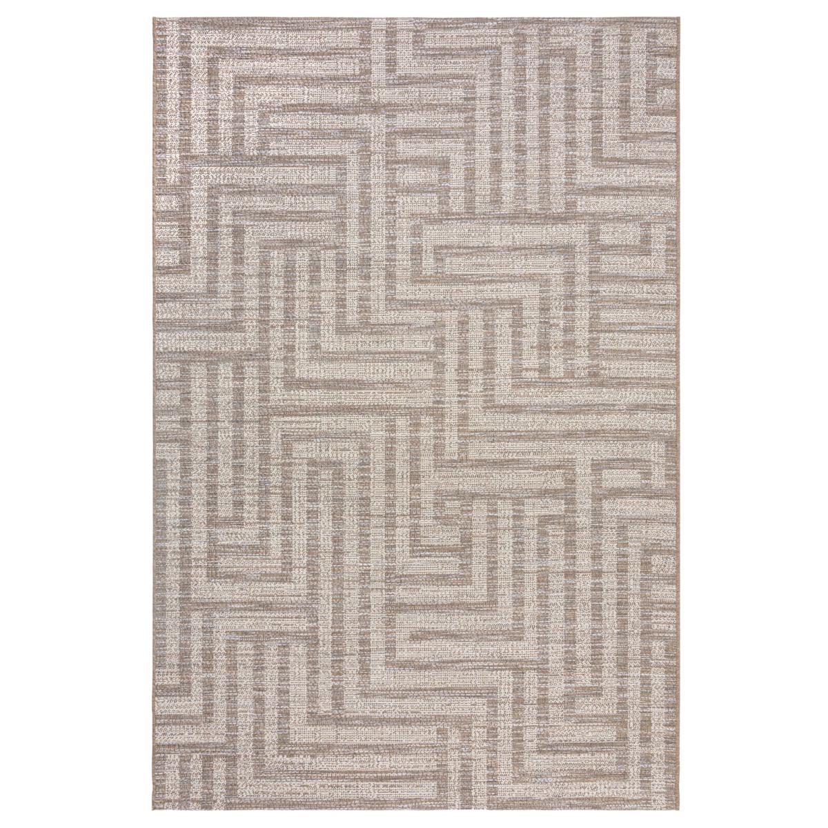 The Salerno Indoor Outdoor Rug from our Indoor/Outdoor collection pairs neutral shades with a maze-effect geometric design to inject contemporary style to your indoor and outdoor spaces. Our Indoor/Outdoor collections use a 100% polypropylene composition to make our designs perfect for both indoor and outdoor living. Built for the outdoors with weather-proof and UV-resistant qualities, don't worry about any mess, the Salerno is stain-resistant and easy to clean with a simple hose down. The low-profile composition is perfect for sitting under furniture. We love using outdoor rugs to create social outdoor zones or add comfort underfoot in busy areas such as the kitchen. This is a hard wearing machine made rug suitable for indoor and outdoor use. When opening, re-roll your rug pile out and leave in a warm room for 24 hours before putting in place, this will help to reduce wrinkles and curling from packing. Turn your rug regularly to ensure even wear and reduce pressure marks from furniture. Do not pull any loose threads, please cut them carefully with scissors to remove. This rug is UV treated to prevent fading – however when not in use for extended periods roll the dry rug and store in a covered/shaded area. Before using any cleaning products on your rug, test an inconspicuous area first to ensure it does not affect the colour. Clean spills immediately by blotting with a clean dry white cloth - do not rub as this may stain the fibres. Vacuum your rug regularly to remove everyday dust. When using indoors we recommend the use of an anti-slip mat beneath your rug to prevent it from slipping and sliding out of place. When using outdoors please take care not to place on rough or sharp surfaces that may damage or pierce your rug. Please keep away from fire. Please do not leave babies or young children unsupervised on this rug.