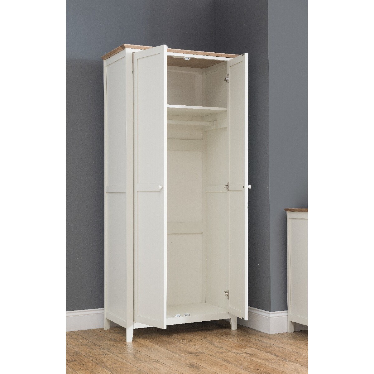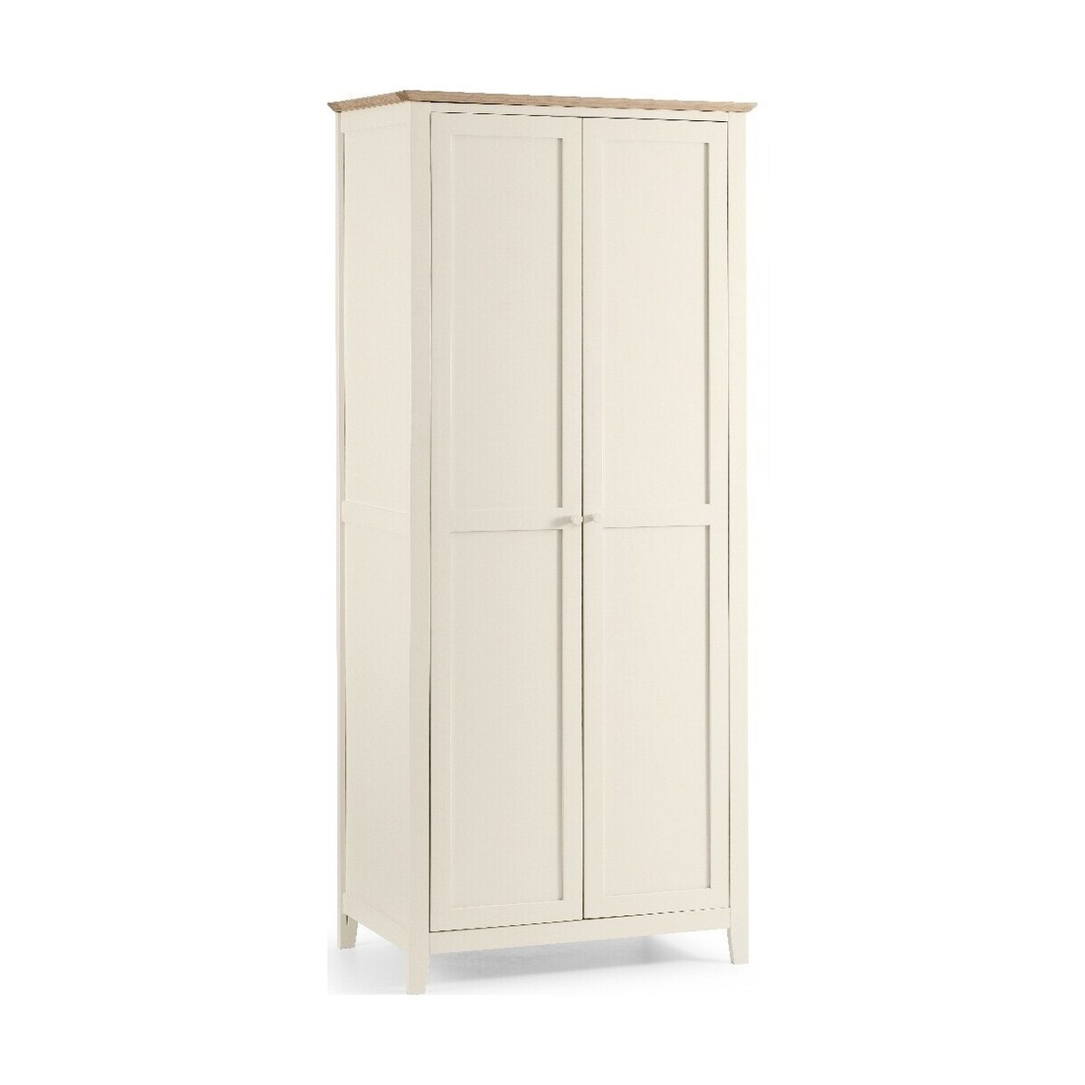 Part of the extensive Julian Bowen collection, the Salerno Ivory & Oak 2 door wardrobe makes a fantastic addition to any modern or traditional bedroom. The combination of high quality solid white oak and oak veneers and ample storage space ensures you’ll have plenty of space to tuck away anything you don’t want peeking out. This style offers an additional shelf as well as drawers and two door hanging space. Finished in a stunning natural lacquer which enhances the oak. Beautiful ivory and oak finish. Coordinates perfectly with the rest of the Julian Bowen Salerno bedroom range. Self assembly required. Manufactured with high quality oak and veneer.