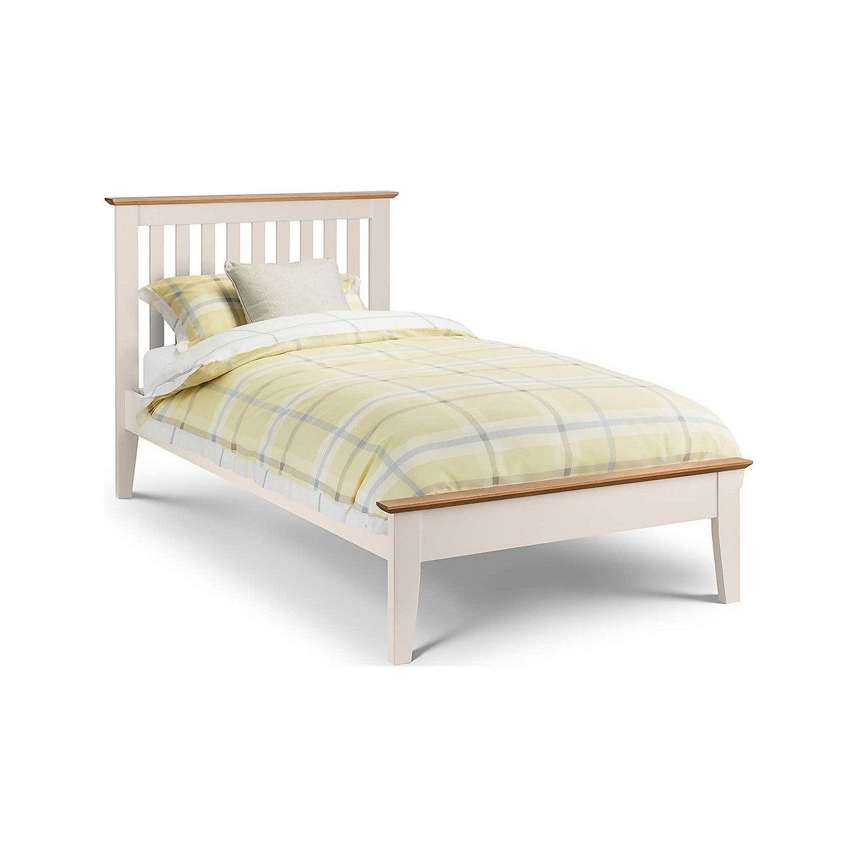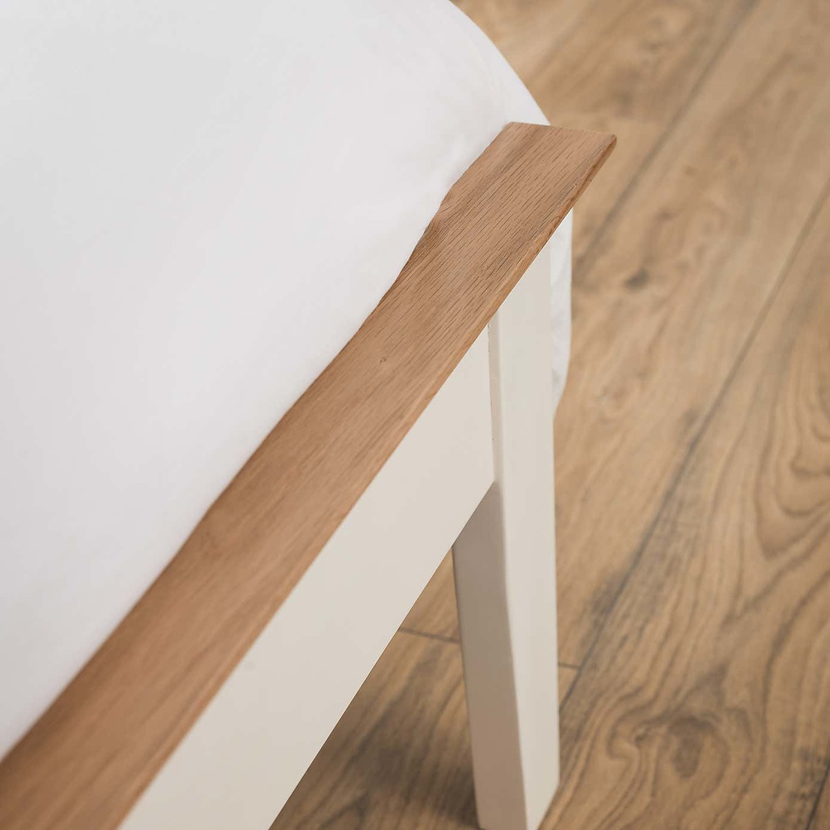 A timeless shaker-style bed frame with refined detailing finished in durable ivory lacquer with solid American White Oak cappings. Please note: Price is for bed frame only and does not include mattress. Please note, unfortunately we cannot deliver this item to the Channel Islands.