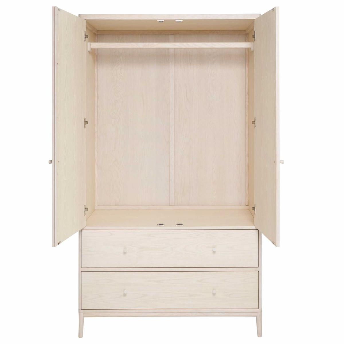 Neat and clean in design, the Salina wardrobe offers substantial storage with its spacious interior, sturdy wooden hanging rail and generous drawers beneath. Crafted from ash, this wardrobe boasts a beautiful pale finish that catches the natural grain markings of the wood perfectly, while bringing a minimalist and fresh look to your bedroom interior.