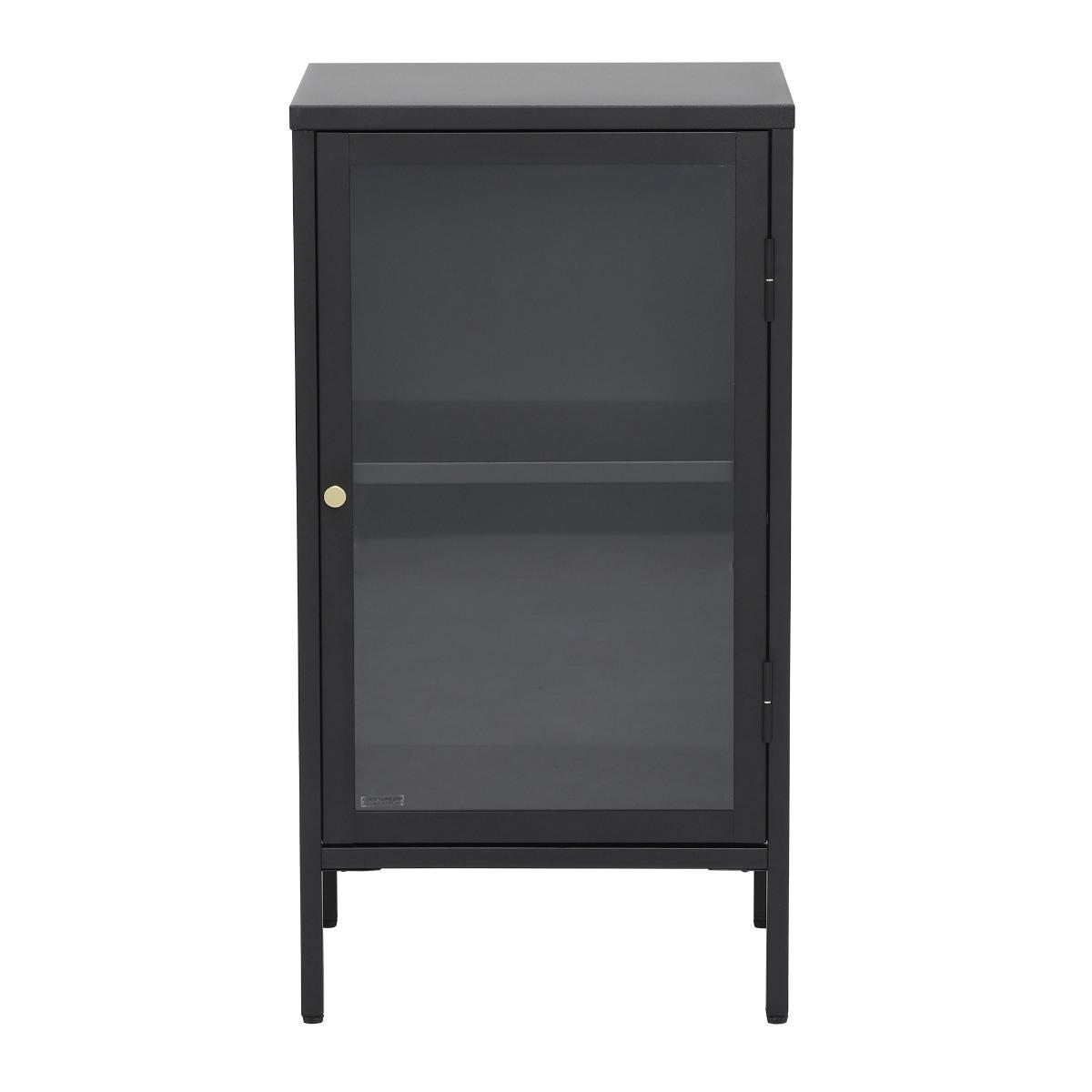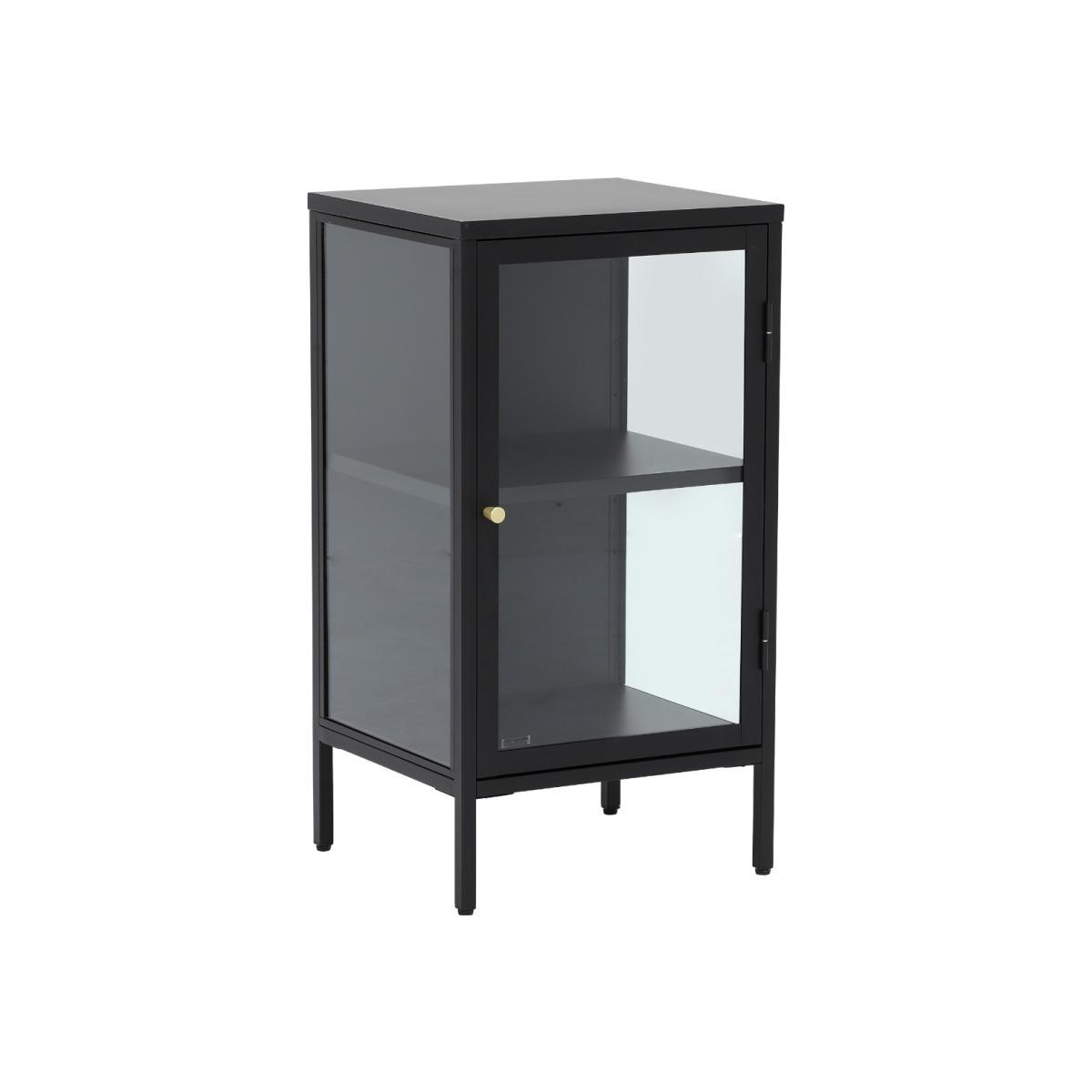 I love this glass-fronted cabinet for its compact and versatile design, making it ideal for displaying decorative items, glassware, or ceramics without overwhelming a space. It works well in contemporary and minimalist interiors, especially when paired with a mix of open shelving and closed storage for functionality. Practical styling tips include grouping similar items together to create a cohesive look, using the transparent doors to showcase your favourite pieces, and balancing the cabinet’s darker frame with lighter colours in surrounding furniture to keep the space feeling open and inviting. It’s a smart addition for kitchens, living rooms, or even bedrooms where a touch of display storage is needed without sacrificing style.