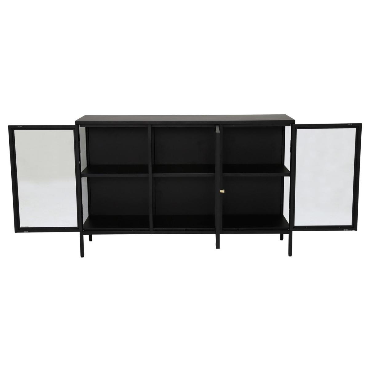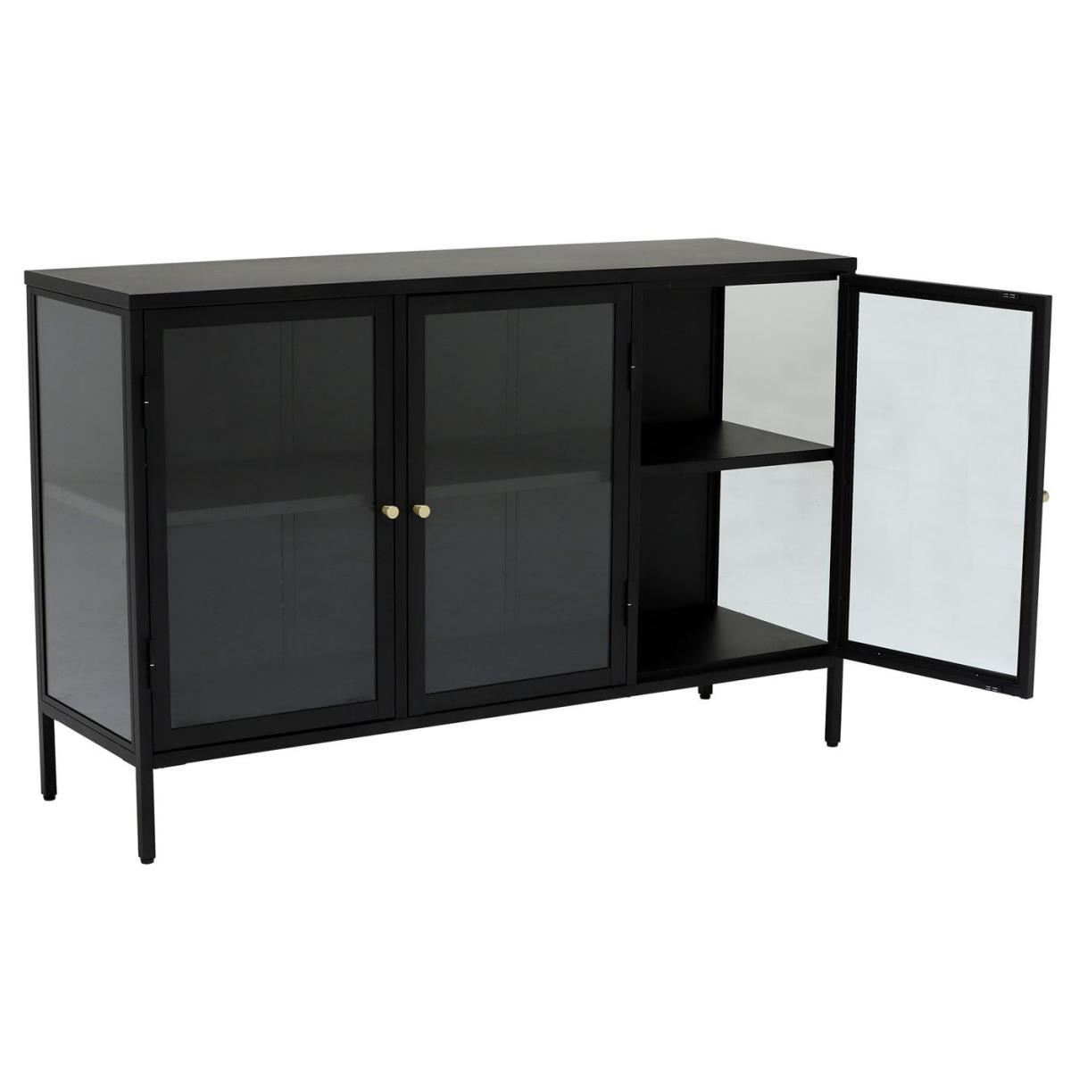 Design. Complete with glass doors and side panels for a light, modern look, the Salinas black metal sideboard is a stylish place to store tableware and accessories that you don’t mind being on display. Glamorous gold handles give added detail to the doors, inviting complementary metallic accessories to take their place on top.