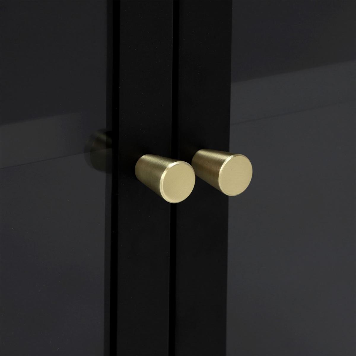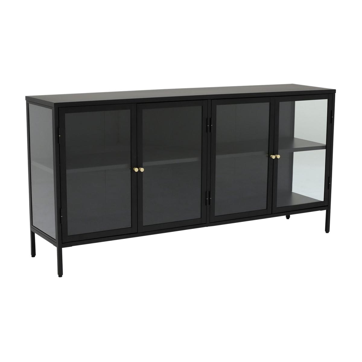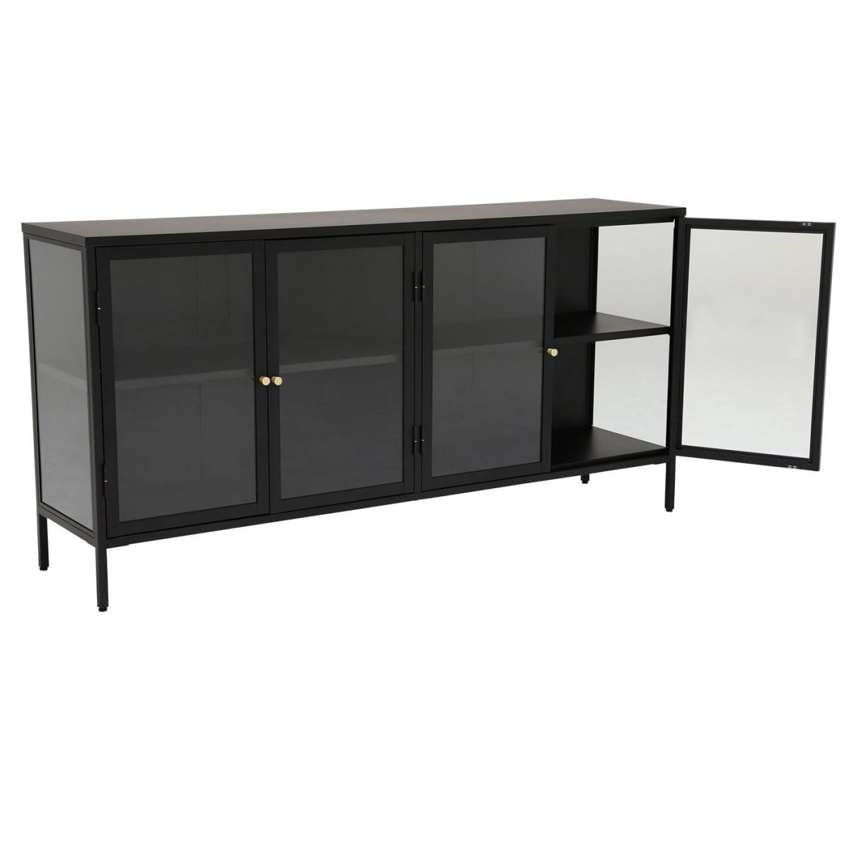 A sleek storage cabinet for any area of the home, the Salinas 4 door sideboard brings together black metal and clear glass for a beautiful balance of light and dark. Containing two spacious shelves and finished with delicate gold handles, this large sideboard will showcaseyour best tableware in style.
