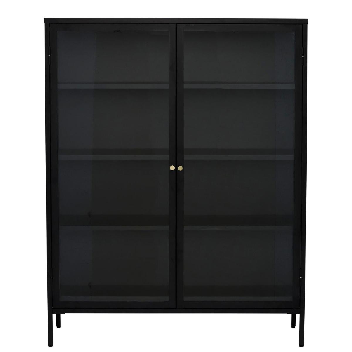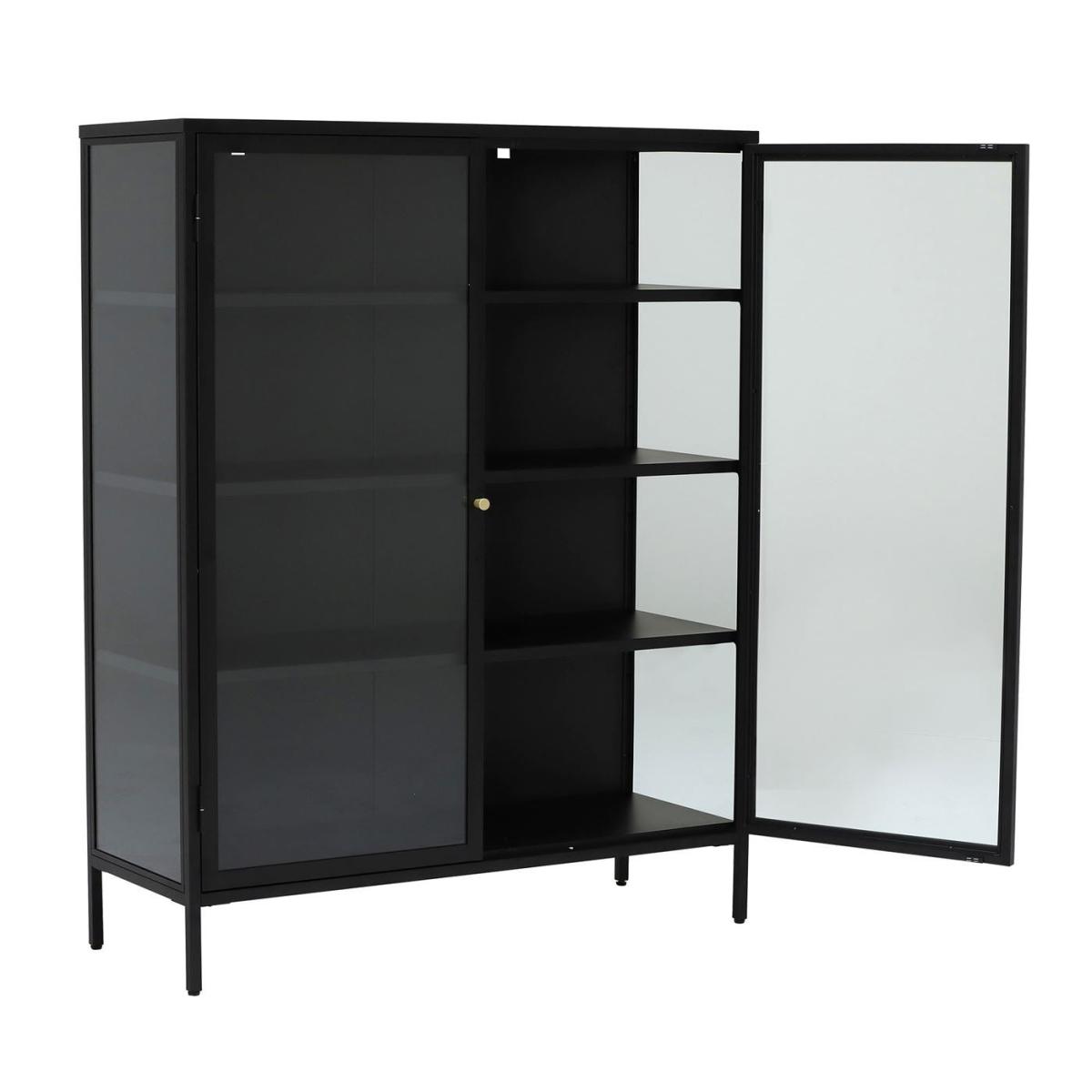 Design. Featuring a sleek black frame andclear glass doors, the Salinas metal cabinet offers a contemporary way to display your little treasures. The black painted finish goes well with a wide range of colour schemes, while gold handles add a subtle touch of glamour that’s so on trend. Whether a stylish storage cabinet or a modern display cabinet, it’s sure to give your home a smart look.