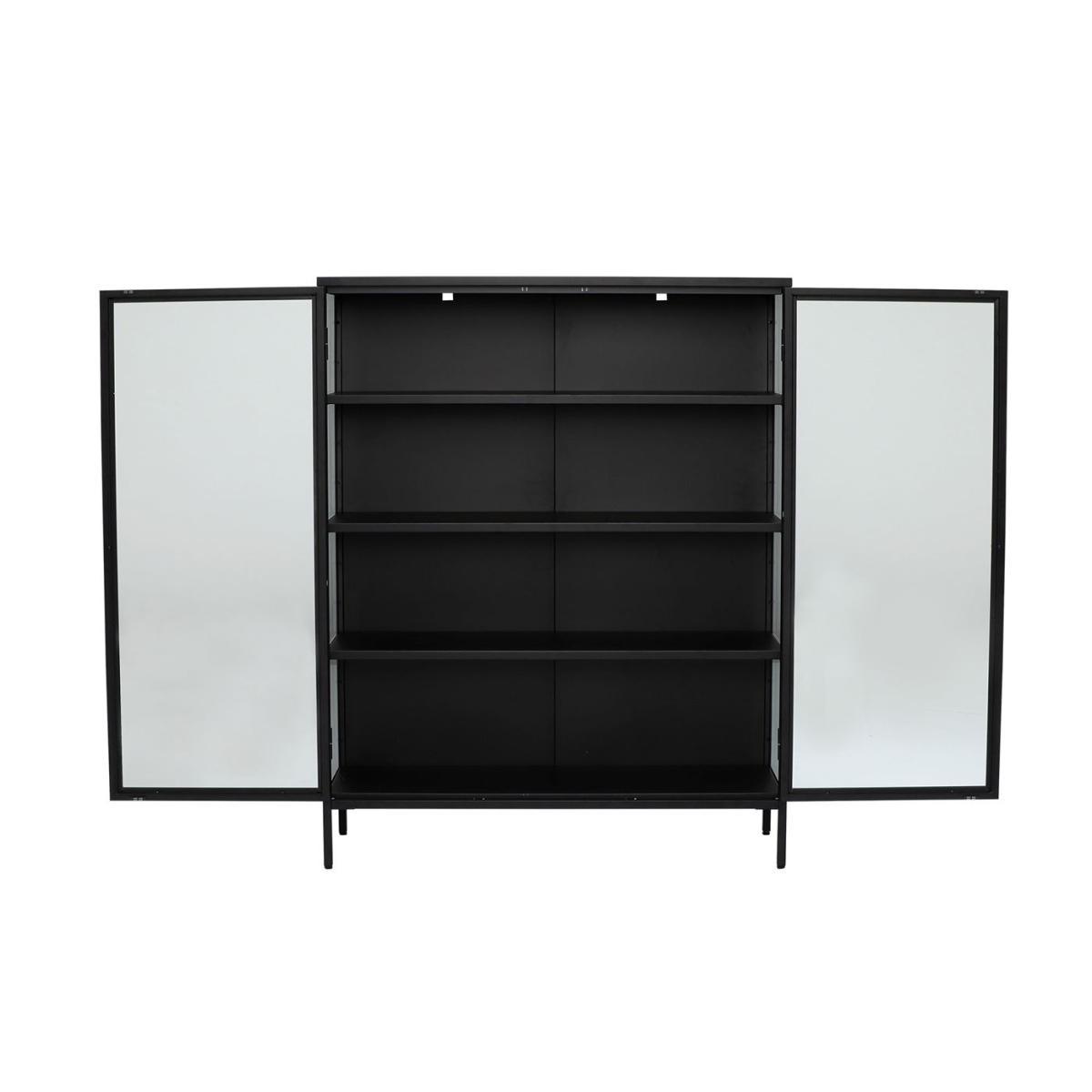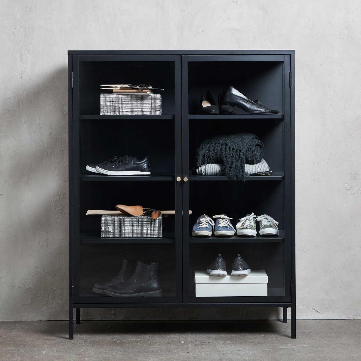 Design. Featuring a sleek black frame andclear glass doors, the Salinas metal cabinet offers a contemporary way to display your little treasures. The black painted finish goes well with a wide range of colour schemes, while gold handles add a subtle touch of glamour that’s so on trend. Whether a stylish storage cabinet or a modern display cabinet, it’s sure to give your home a smart look.