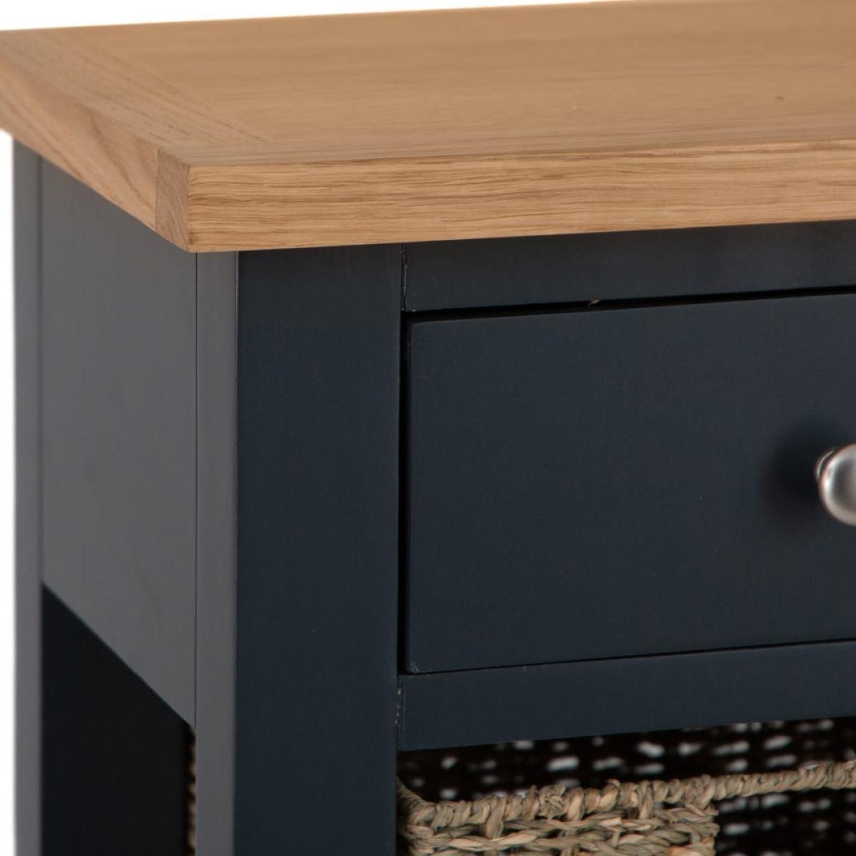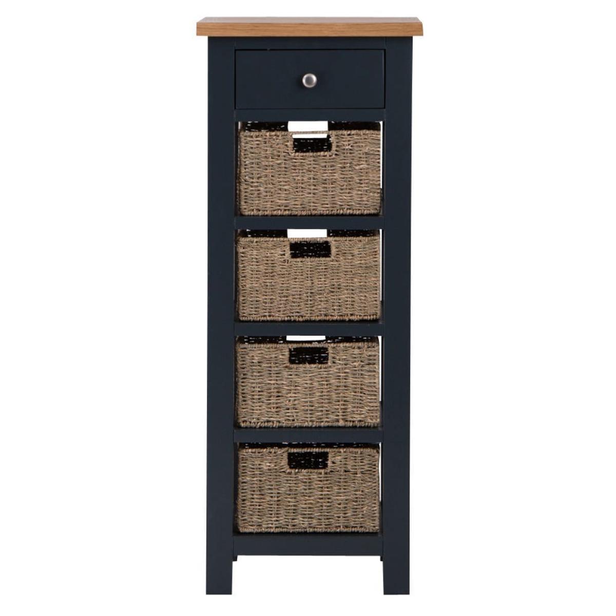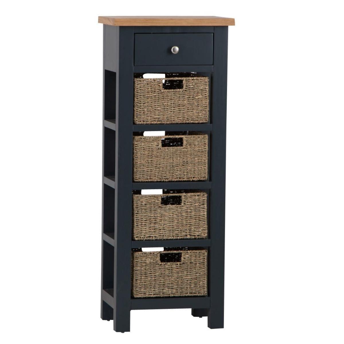 Salisbury Blue Painted Oak 5 Drawer Tallboy with Wicker Baskets