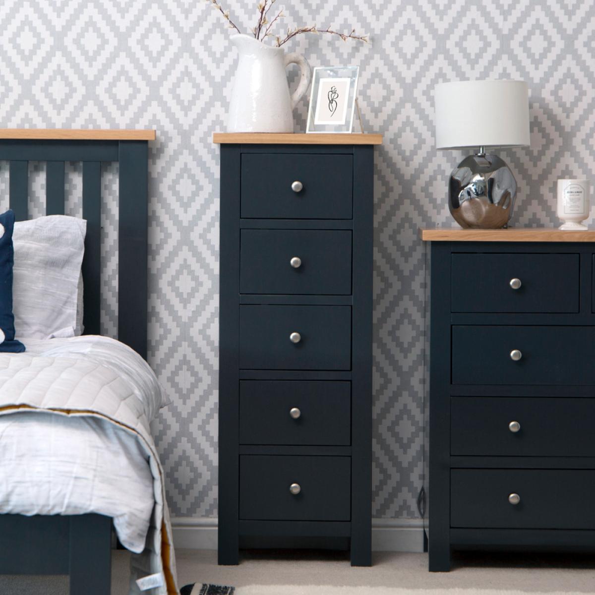 Introducing our Salisbury Blue Painted Collection. A delightful addition to the modern family home, this beautiful collection combines timeless aesthetics with farmhouse charm and a very affordable price tag. An extensive collection of painted and oak Bedroom, Living Room, Dining Room and Hallway furniture, furnish whole rooms or just pick individual items to inject some warmth and cosiness in to your home at the touch of a button. With crisp, straight edges and a smooth painted finish, the standout feature of the Salisbury Painted furniture is the subtle round handle, which perfectly complements the unfussy design. This gorgeous painted oak collection is famous for its use of wicker baskets and features many unique items that can’t be found elsewhere at Chiltern Oak. If you like the style but you’re looking for something a little different, this range is also available in Grey and Ivory, called Salisbury Grey and Salisbury Ivory.