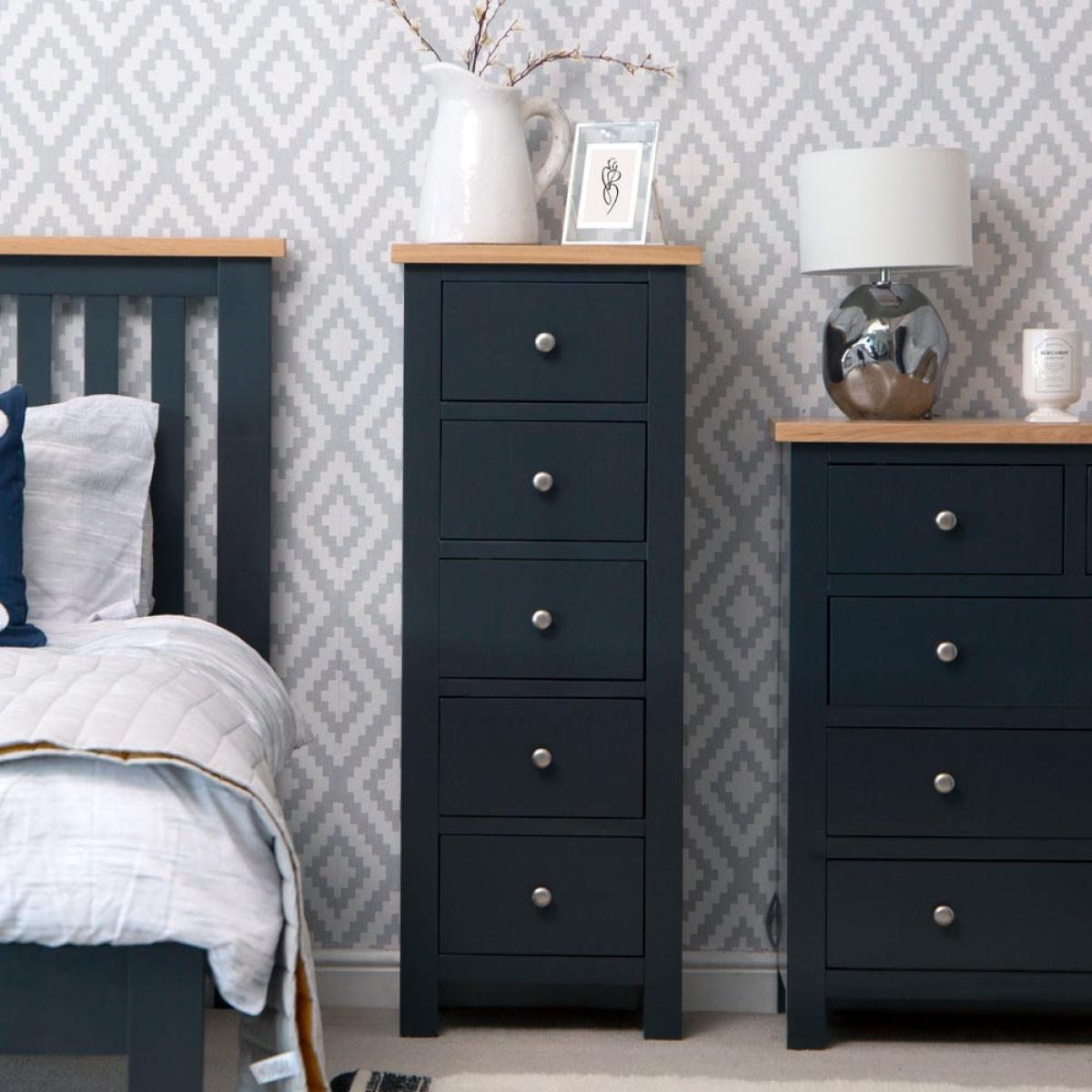 Salisbury Blue Painted Oak 5 Drawer Tallboy