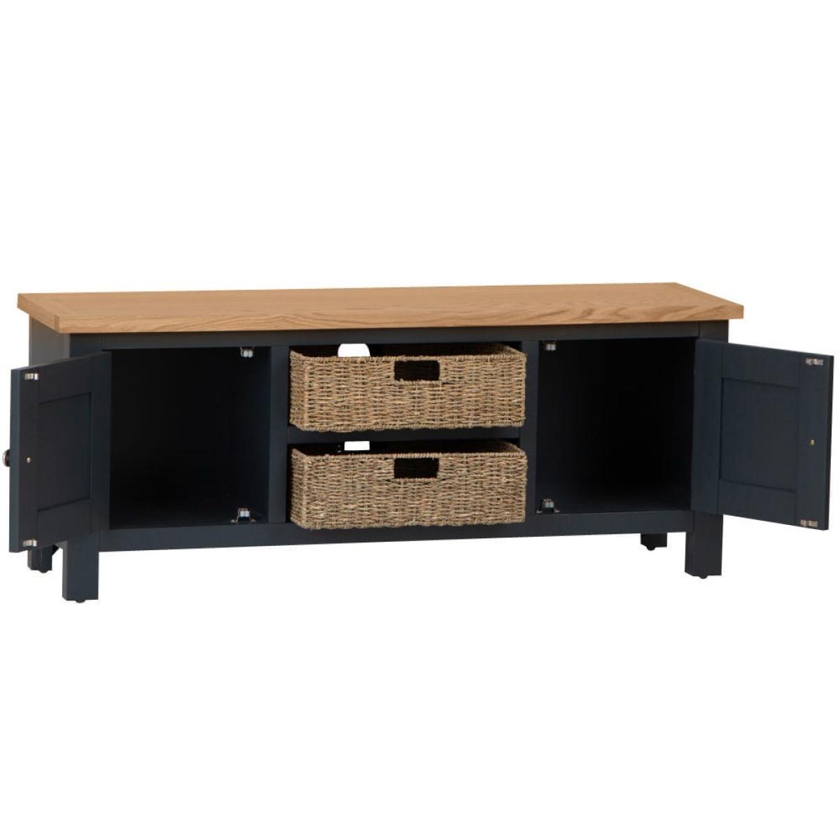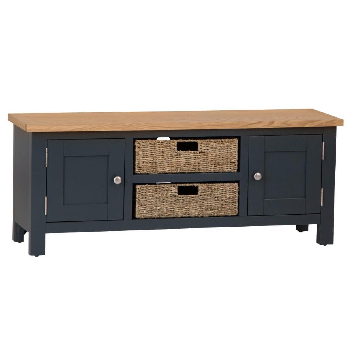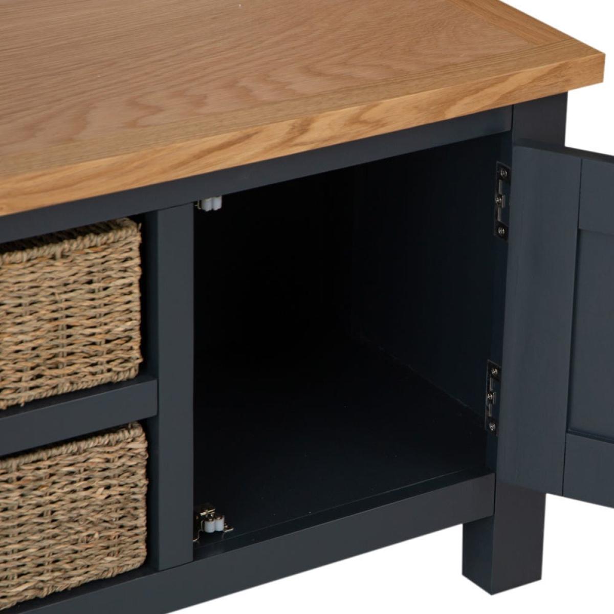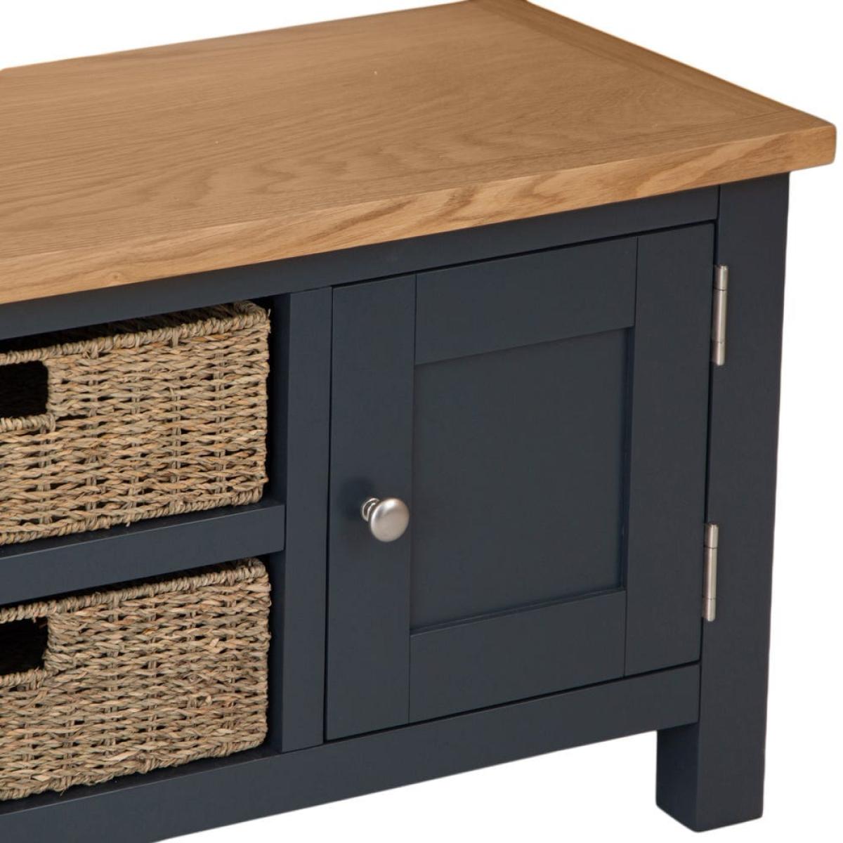 Salisbury Blue Painted Oak Large TV Unit with Wicker Baskets