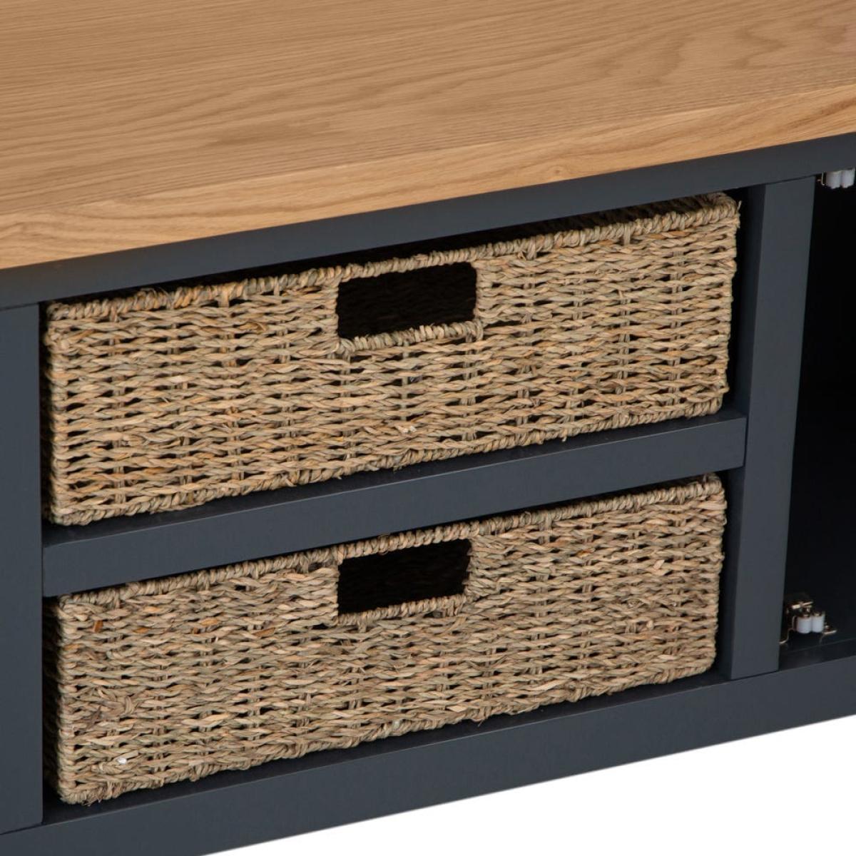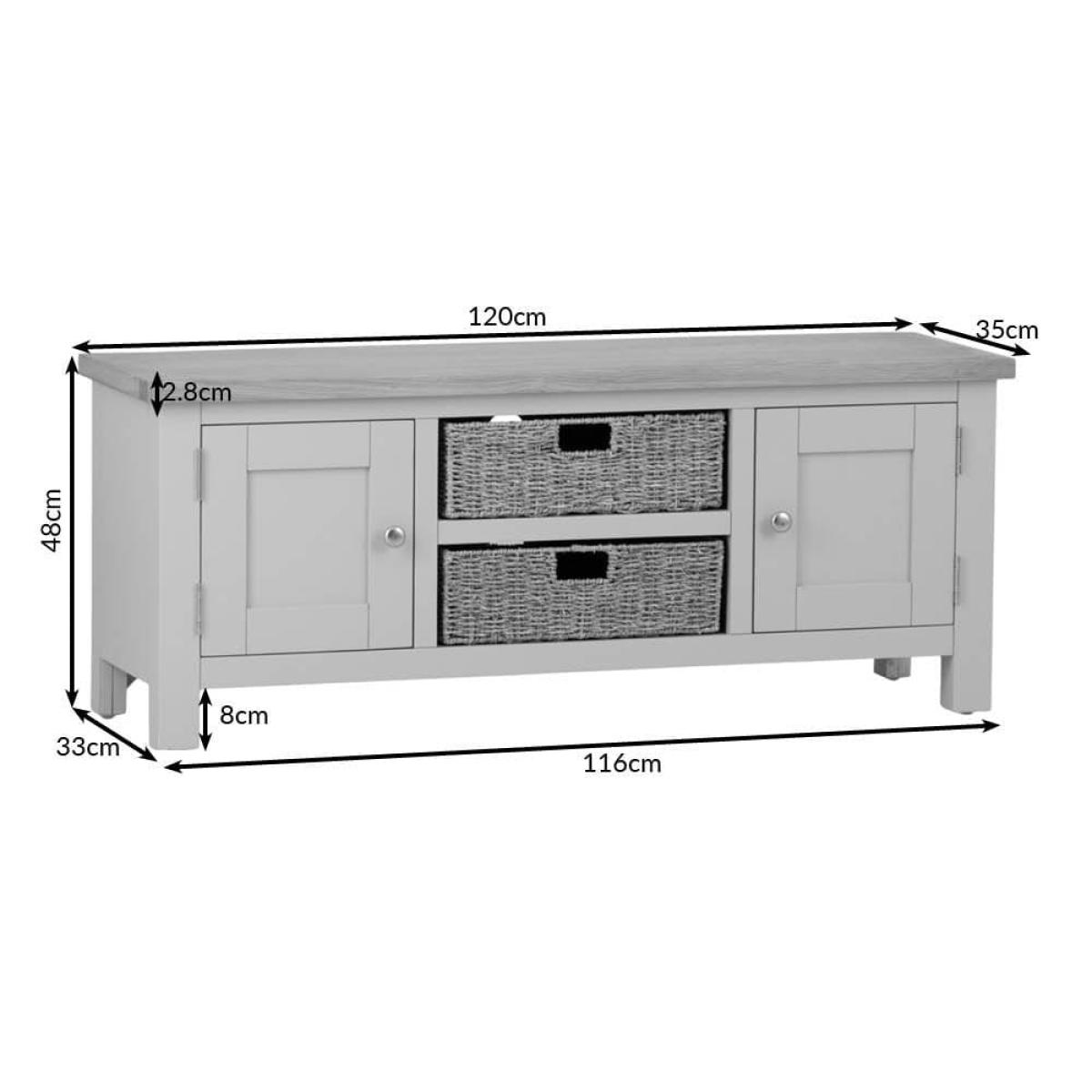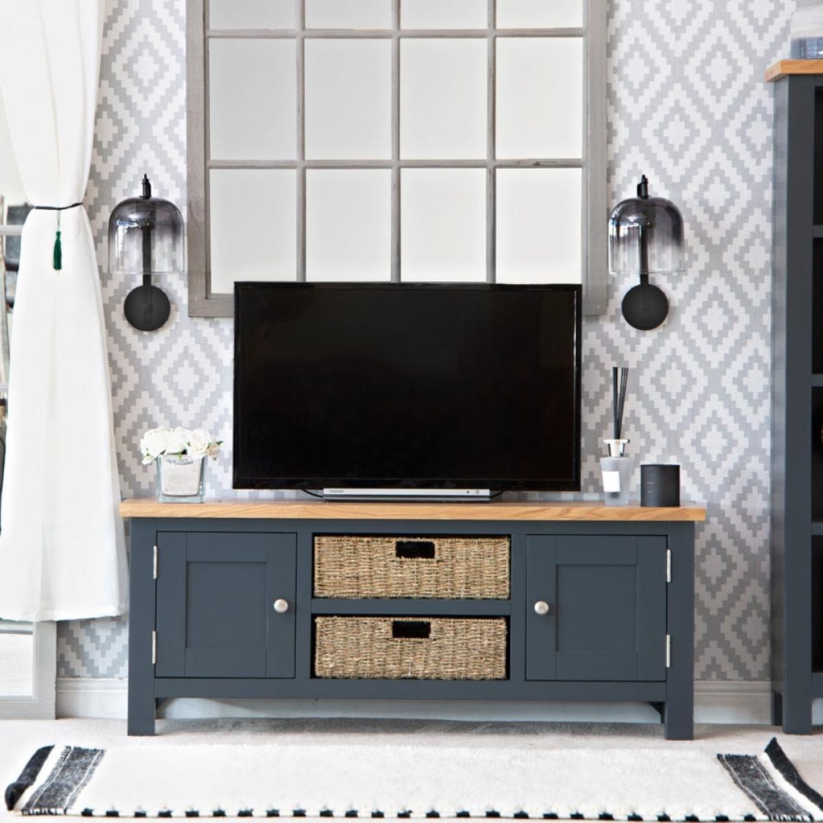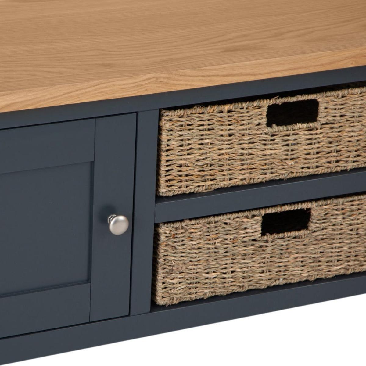 Salisbury Blue Painted Oak Large TV Unit with Wicker Baskets