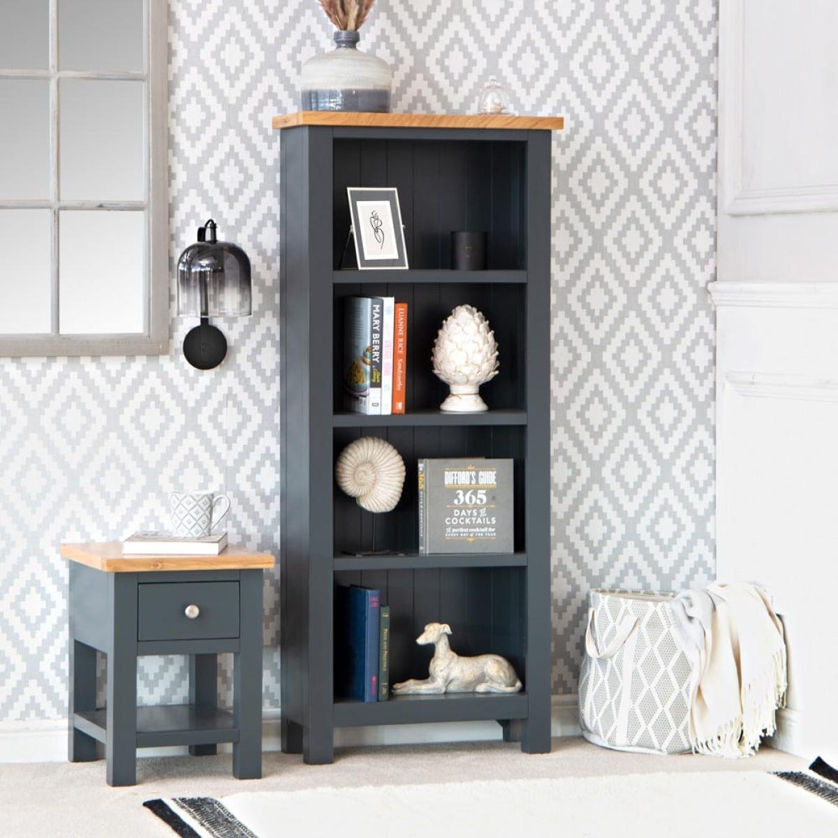Salisbury Blue Painted Oak Small Narrow Bookcase