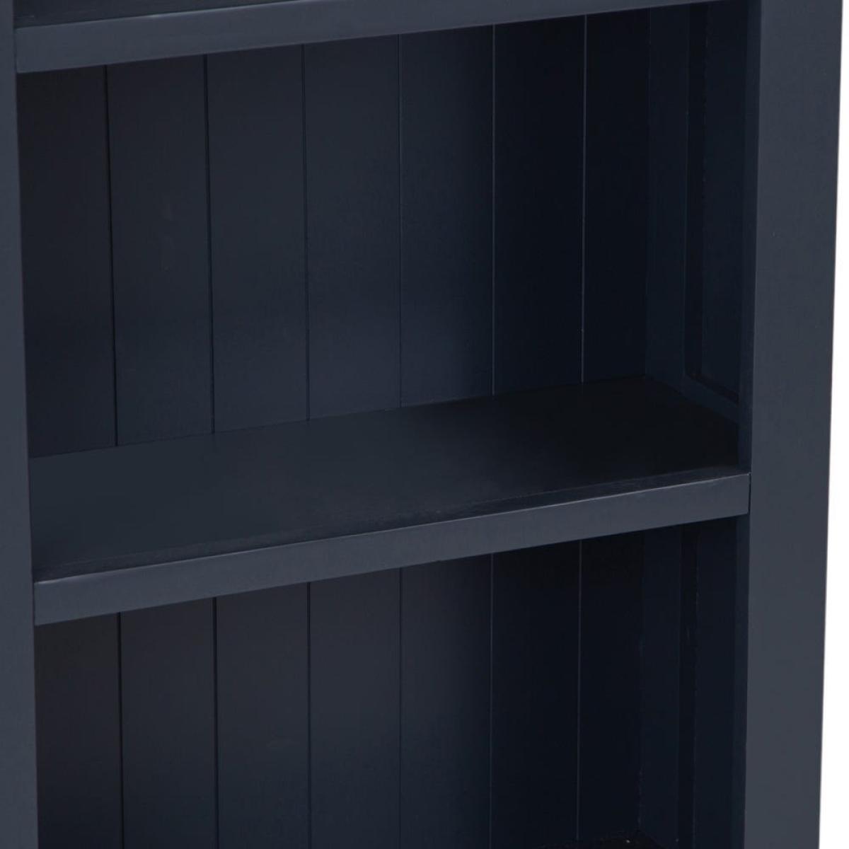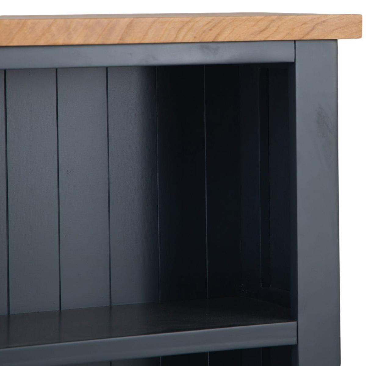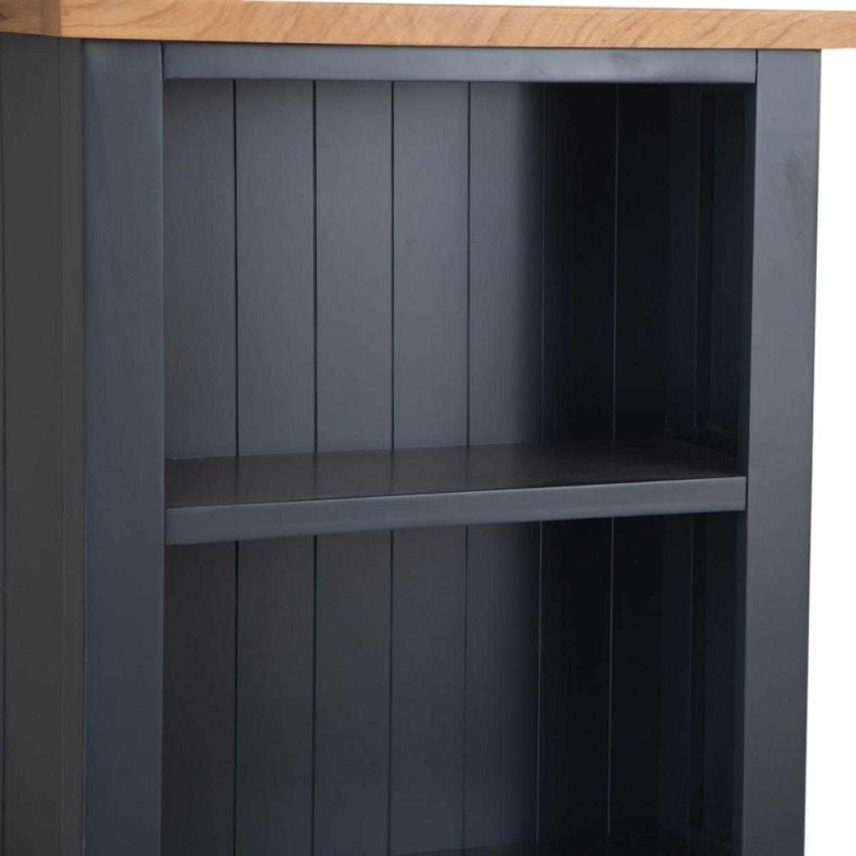 This little bookcase is a versatile piece that works well in both traditional and contemporary interiors. The Salisbury blue finish adds a touch of colour without overwhelming the space, making it ideal for adding visual interest in smaller rooms or alcoves. Its narrow profile makes it perfect for squeezing into tight spots, like a hallway or beside a desk. In terms of styling, I recommend keeping the top clear for a few decorative accents, such as plants or small artwork, to make the space feel curated. You could also layer books and decorative objects on each shelf for a personalised touch. Its natural wooden top lends itself well to contrasting textures, so pairing it with woven baskets or ceramic vases can add depth to the look. Overall, a practical yet charming addition to any small-scale storage needs.