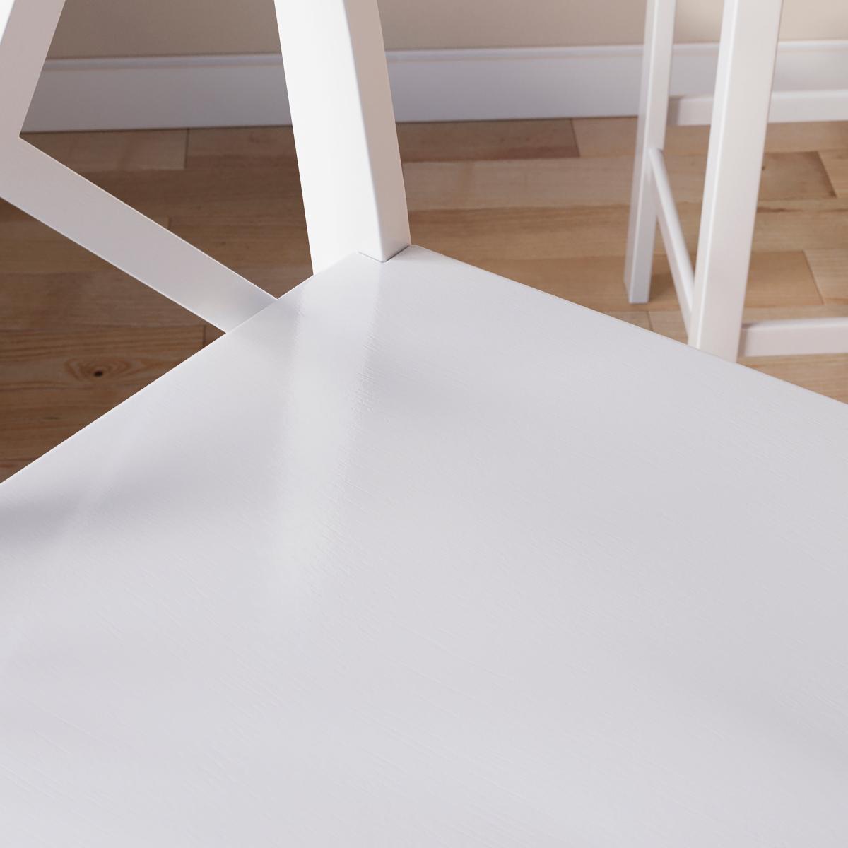 I’m a fan of this white cross-back bar stool because its clean lines and subtle weave detail add a touch of country charm without feeling rustic. It’s ideal in coastal, farmhouse or modern-Scandi kitchens, where the bright finish lifts the space and contrasts nicely with natural wood islands or marble counters. For practical styling, pair it with a sheepskin throw or a linen seat pad in muted grey or blush to soften the look and boost comfort. If your room’s palette is very neutral, introduce a single accent colour - say teal or mustard - in nearby accessories to create a cohesive, lived-in feel.