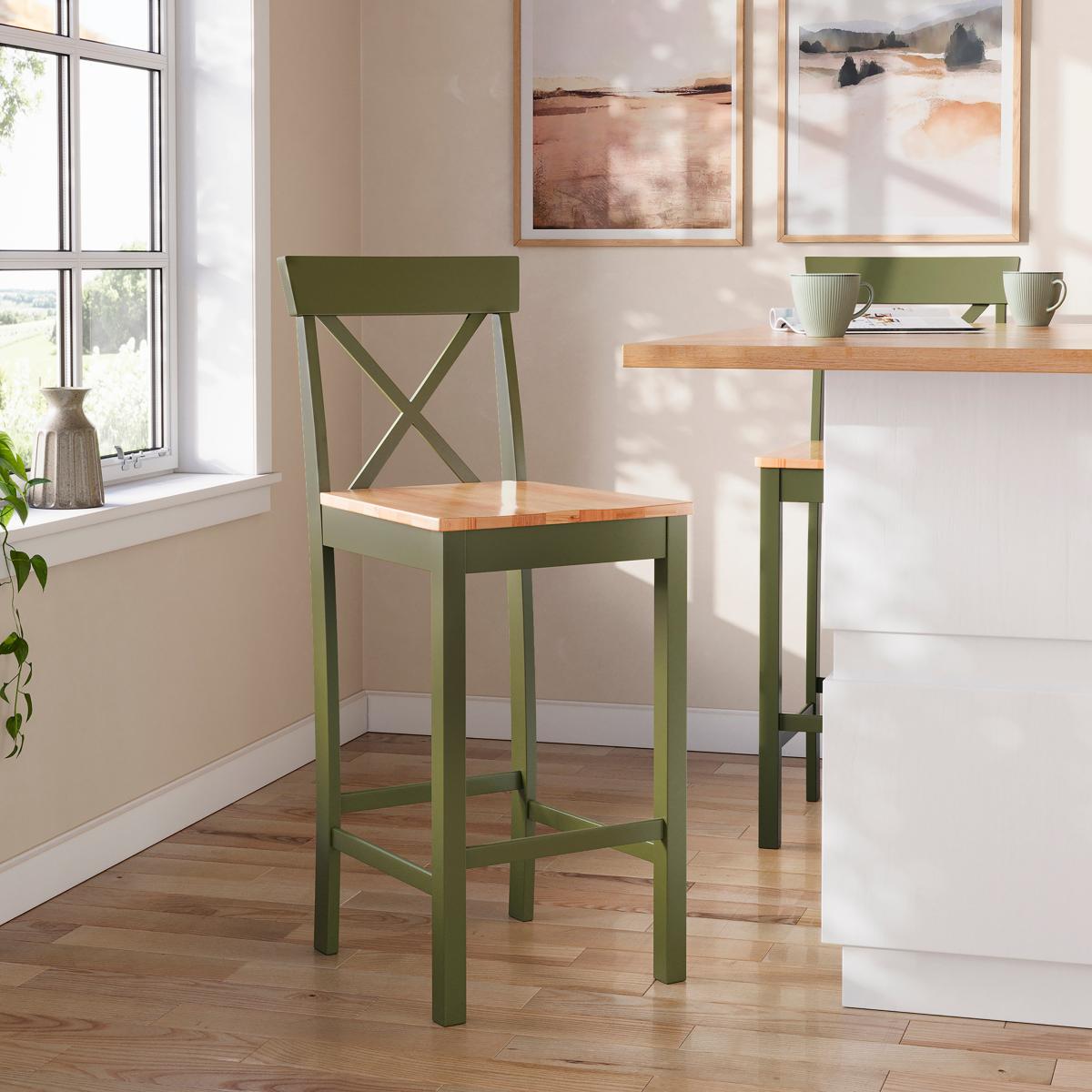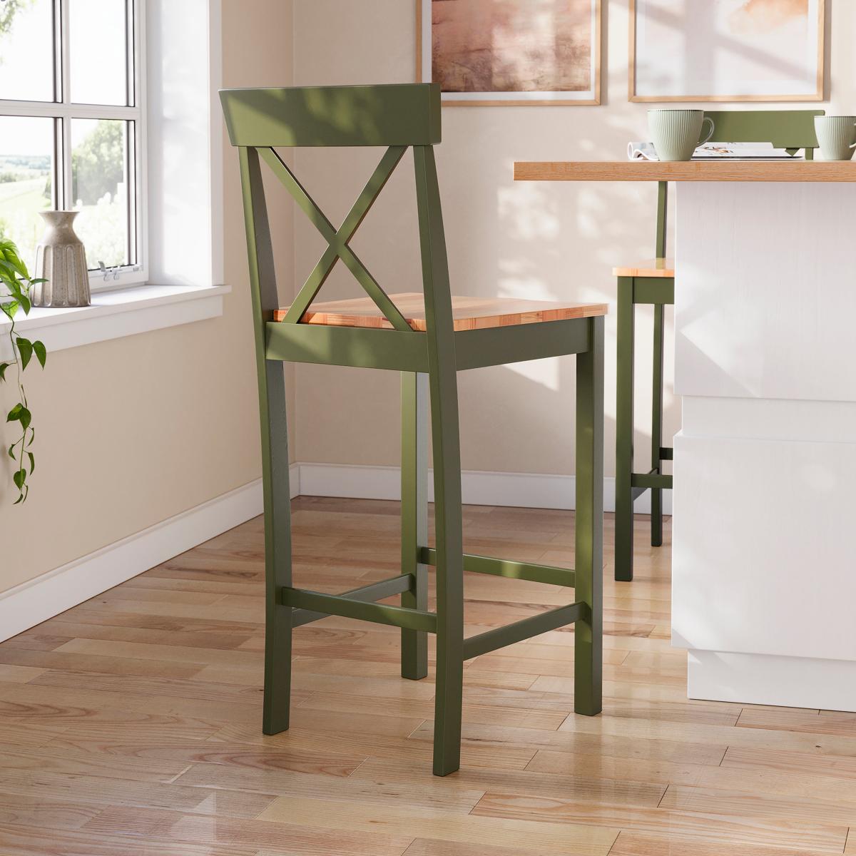I love this counter height stool for its versatile wooden grain finish in olive, which adds a subtle pop of colour without overwhelming a space. It works particularly well in contemporary and rustic interiors, blending beautifully with both neutral and pastel palettes. For style tips, consider pairing it with a matching or contrasting bar table to create a relaxed, welcoming breakfast nook or socialising area. Practical advice would be to use it in spaces with good lighting, as the wood grain detail can be highlighted and appreciated best that way. It’s a great choice for bringing a touch of colour to minimalist kitchens or open-plan living areas, while remaining easy to coordinate with various colour schemes and accessories.