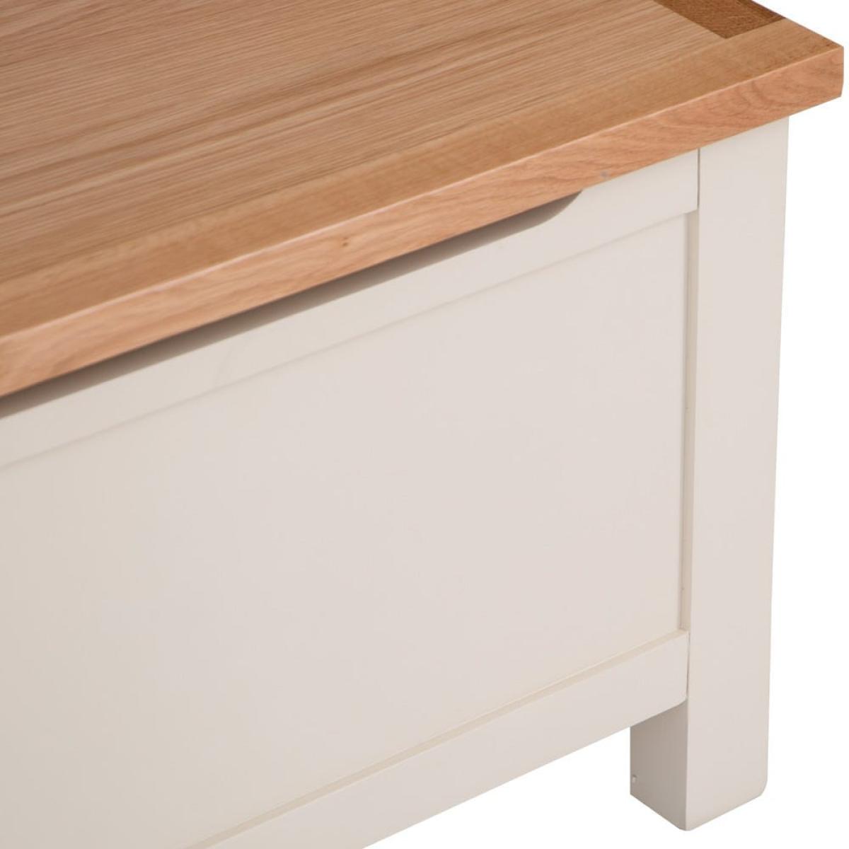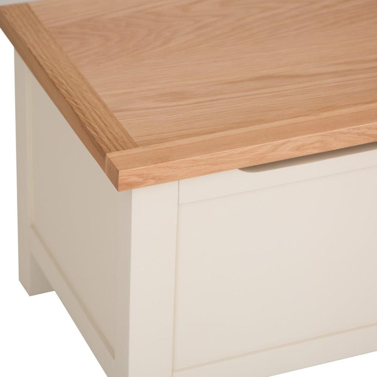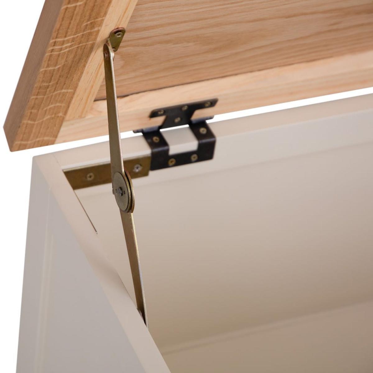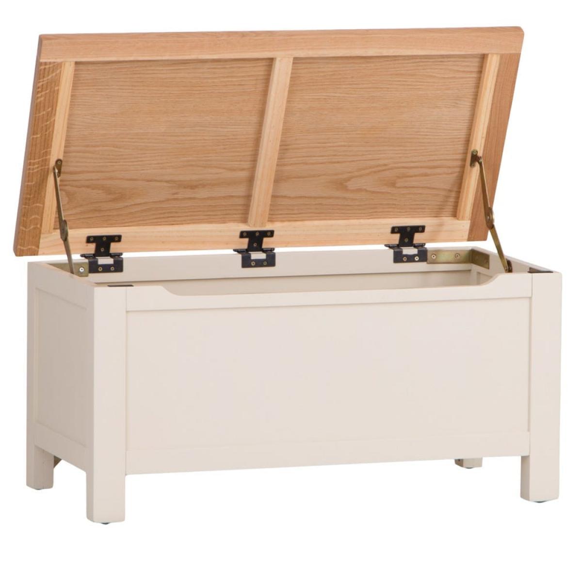 Keep spare throws, quilts and cushions neatly stowed away in this elegant Salisbury ivory painted oak blanket box. It’s the perfect size to sit neatly at the foot of a double bed, and it makes a handy seat when you’re getting ready too. Our much-loved ivory hue flatters any style of bedroom, and the natural oak top provides a complementary pared-back charm. A stay hinge keeps the lid open when you need to rummage around for elusive sports kit. You could also use this box in a hallway for wellies and outdoor games, or in a kid’s bedroom for stuffed animals and toys.