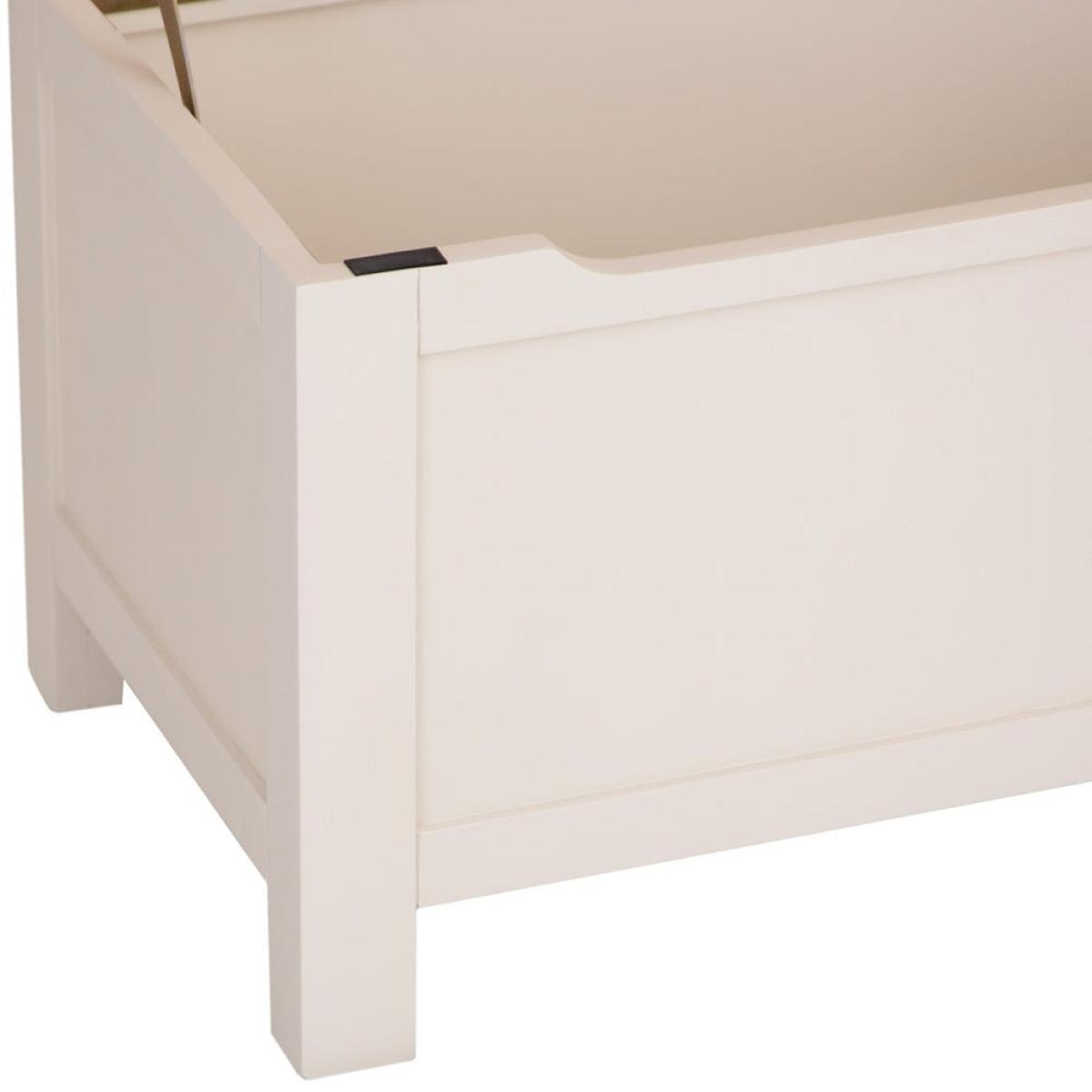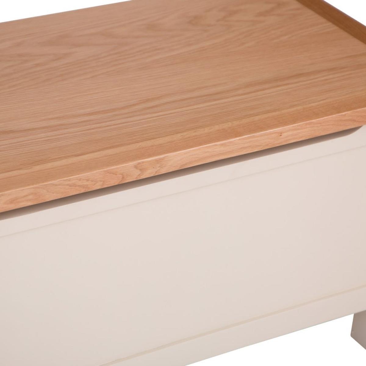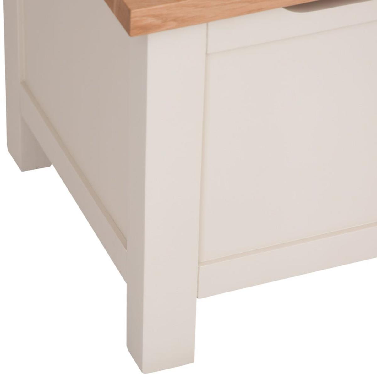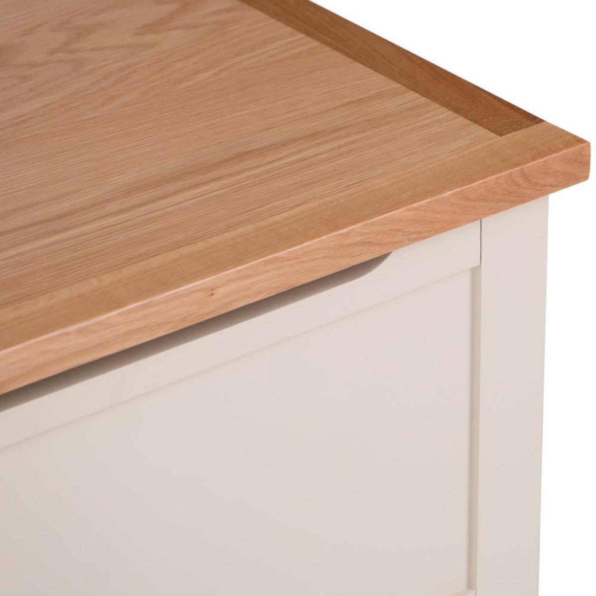 Keep spare throws, quilts and cushions neatly stowed away in this elegant Salisbury ivory painted oak blanket box. It’s the perfect size to sit neatly at the foot of a double bed, and it makes a handy seat when you’re getting ready too. Our much-loved ivory hue flatters any style of bedroom, and the natural oak top provides a complementary pared-back charm. A stay hinge keeps the lid open when you need to rummage around for elusive sports kit. You could also use this box in a hallway for wellies and outdoor games, or in a kid’s bedroom for stuffed animals and toys.