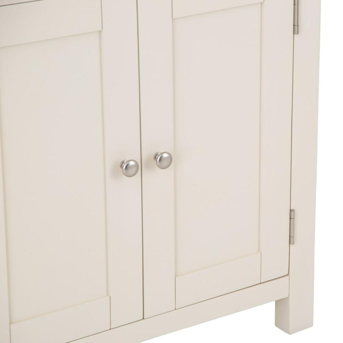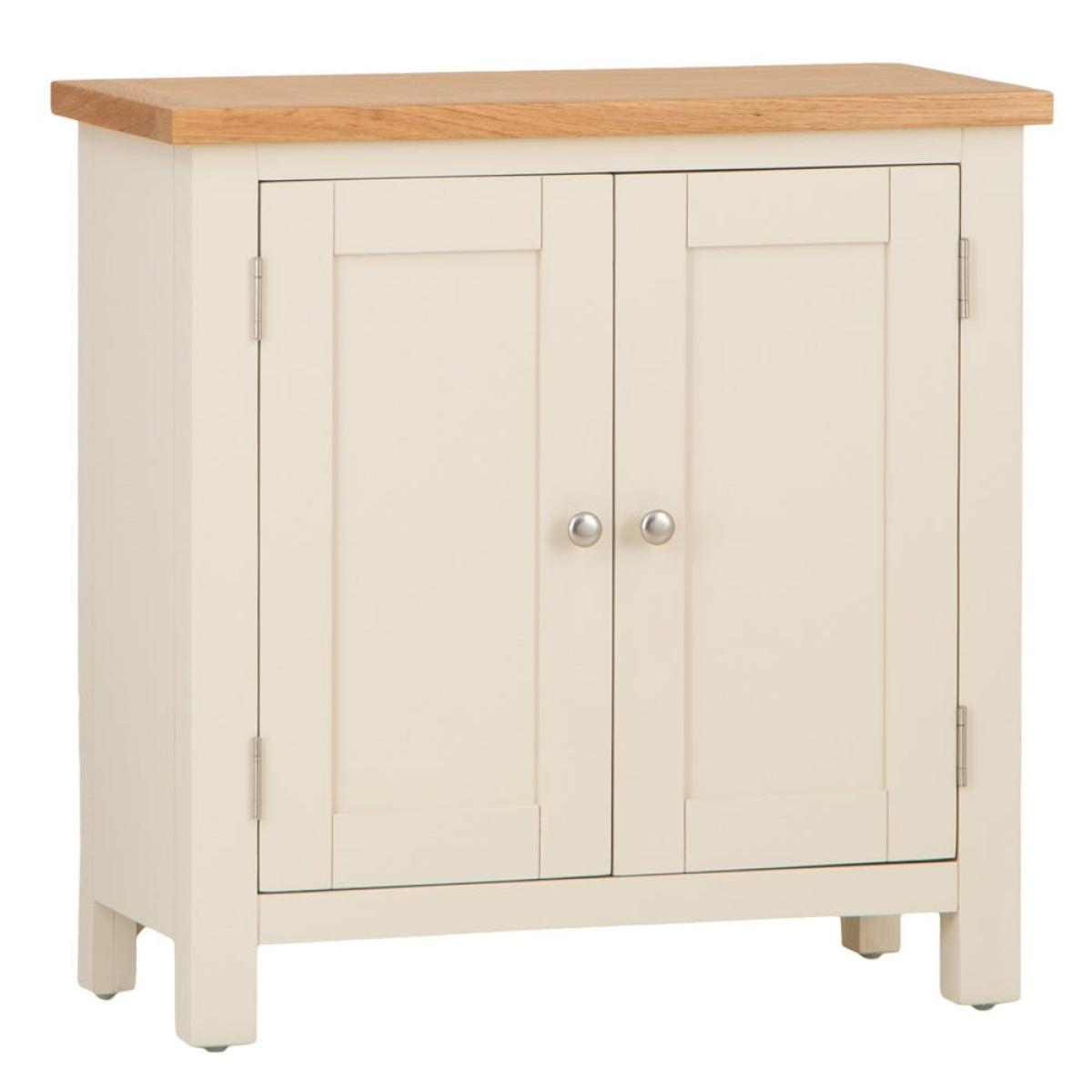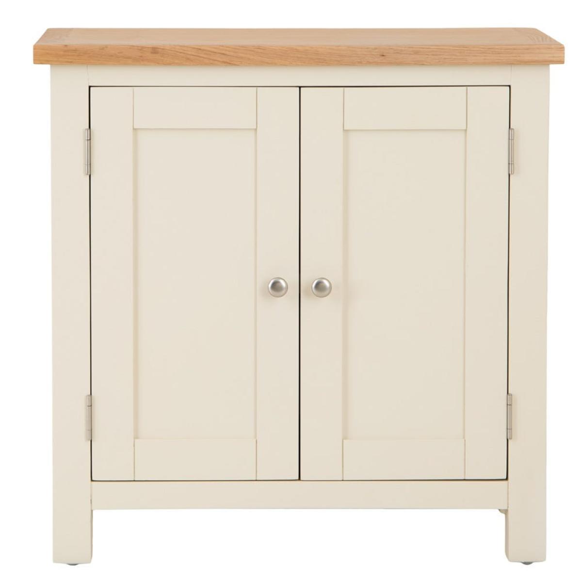 Keep it classic with this Salisbury ivory painted oak small cupboard. The versatile ivory shade suits both simple and elaborate styles of decor, and is complemented by our distinctive honey-coloured oak top. A pair of Shaker-style doors feature stylish chrome knob handles. Use this cupboard in a dining area to maximise storage space when you’re entertaining guests. There are two deep shelves for spare plates or your special-occasion champagne flutes, and the spacious top makes the perfect spot for stacking plates. Alternatively, keep it in your living room for boardgames and puzzles to keep the family entertained on rainy days indoors.