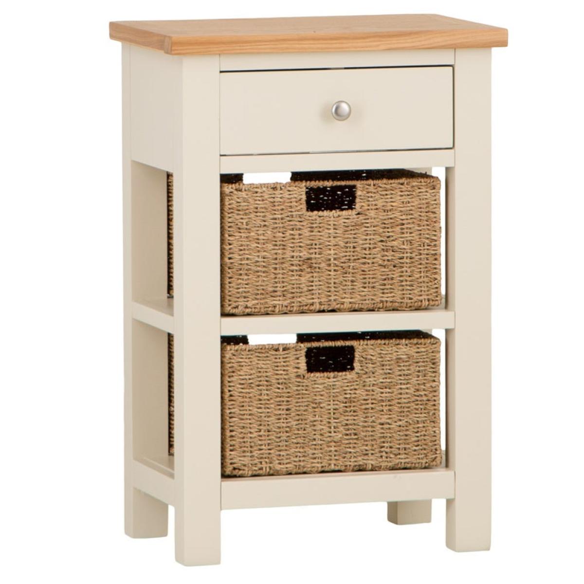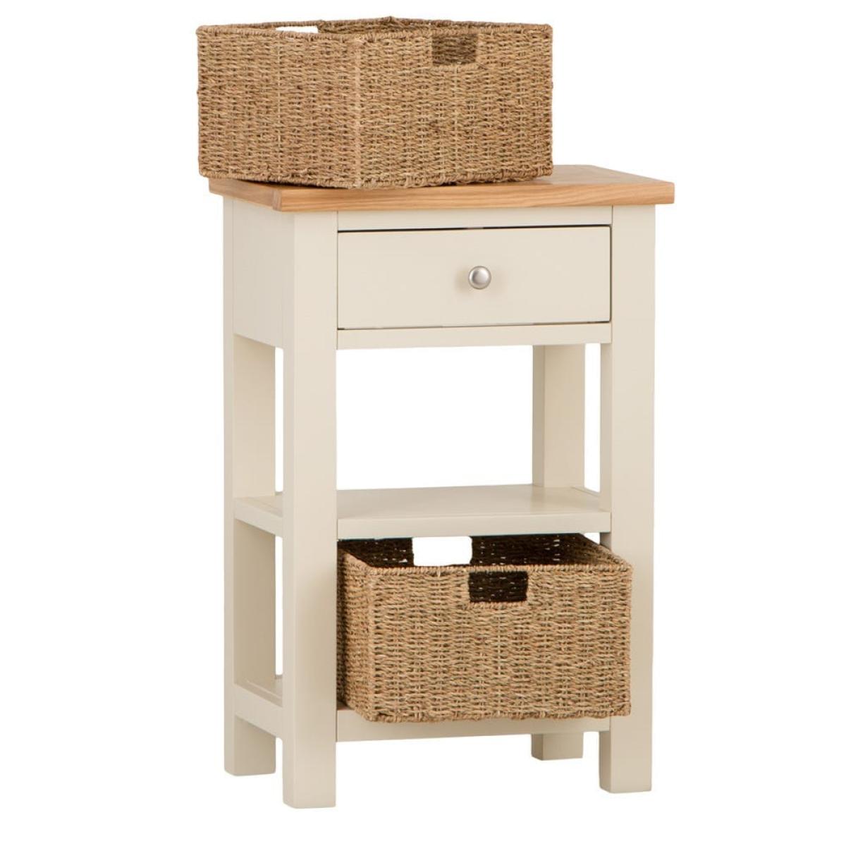 Salisbury Ivory Painted Oak Telephone Table with Wicker Baskets