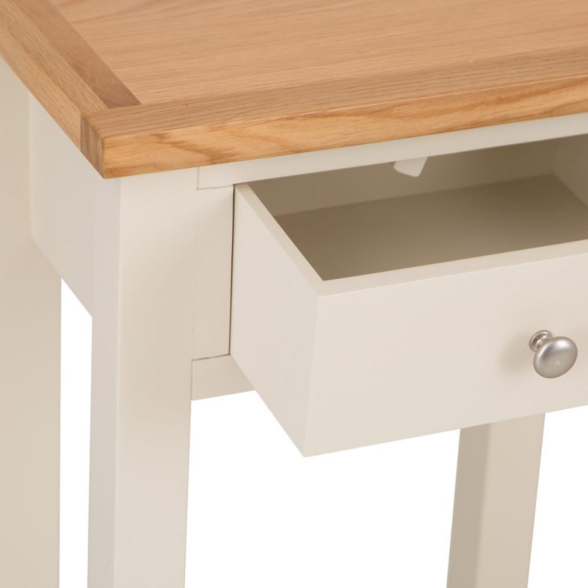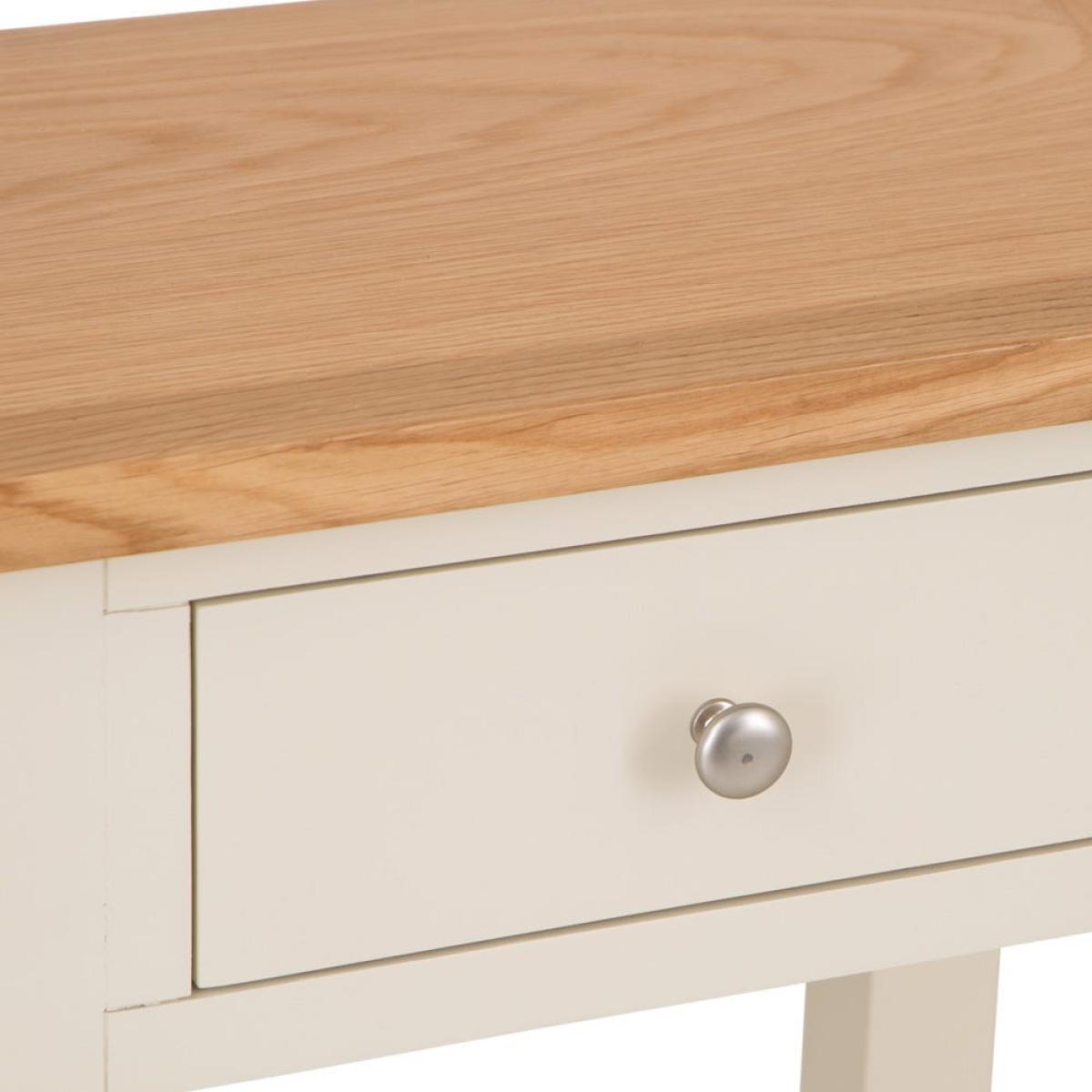 I love this little side table for its versatile, classic look and practical size. The painted ivory finish paired with natural oak accents makes it perfect for both traditional and contemporary interiors, adding a touch of understated elegance without overpowering a space. It works well in a hallway, living room, or bedroom, especially when styled with a table lamp, a few decorative accessories, or even a plant for added texture. Practical styling tips include keeping the surface tidy with useful items like a tray or coasters, and placing a small basket or box on the lower shelf for essentials - it’s a neat, functional piece that can bridge different design styles effortlessly.