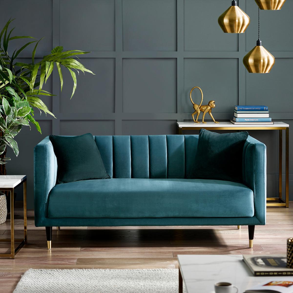 I love the teal sofa for its modern yet timeless appeal. The scalloped back detail adds a touch of elegance without feeling too ornate, making it versatile for both contemporary and more traditional interiors. It works particularly well in colour schemes that feature warm neutrals, gold accents, or lacquered woods - the richness of teal instantly elevates a space. Practical styling tips include pairing it with neutral or patterned cushions to add depth, or contrasting with textured throws for cozier vibes. Its size makes it perfect for smaller living rooms or as a stylish statement piece in larger open-plan spaces. Overall, it’s a smart choice for adding colour and sophistication while remaining approachable and comfortable.