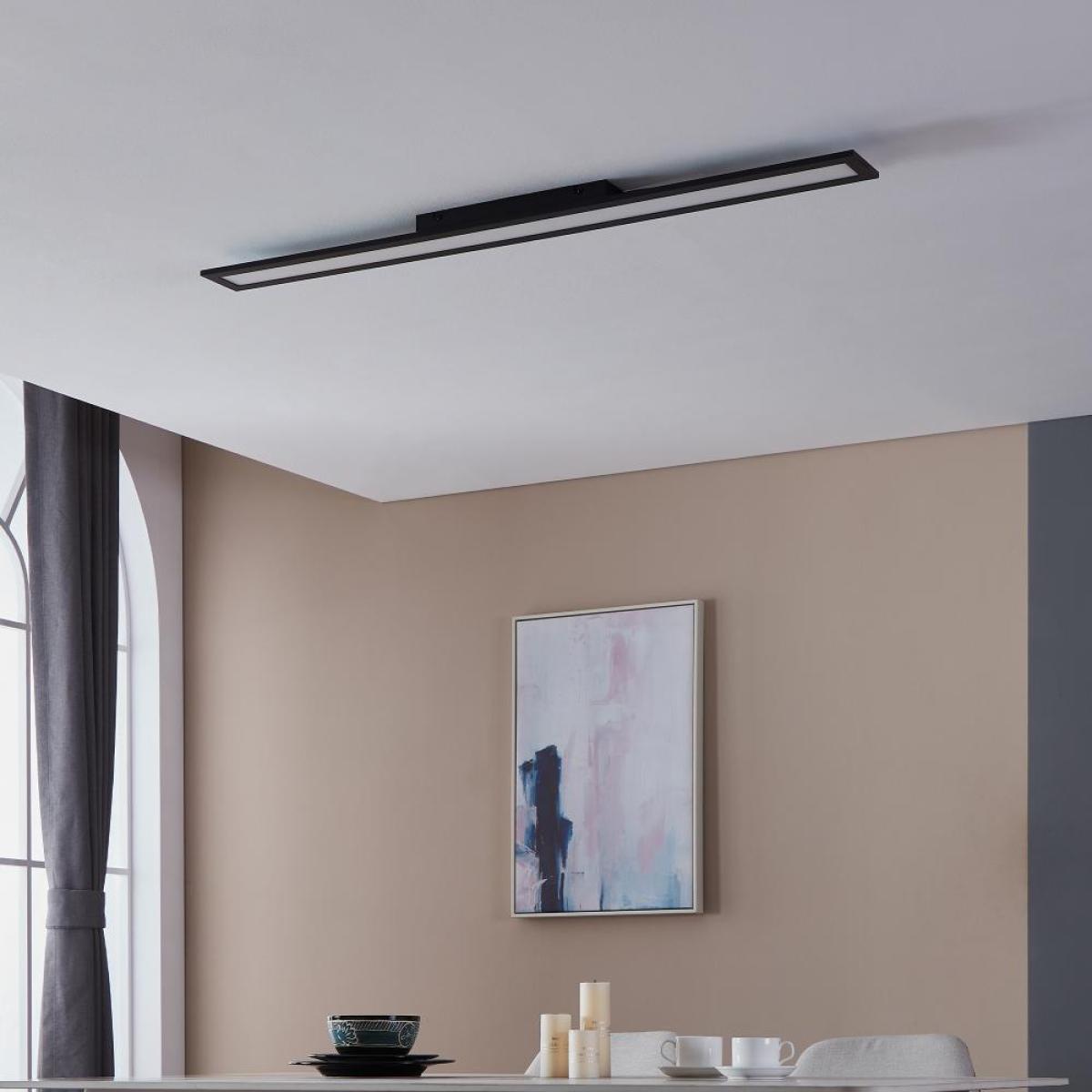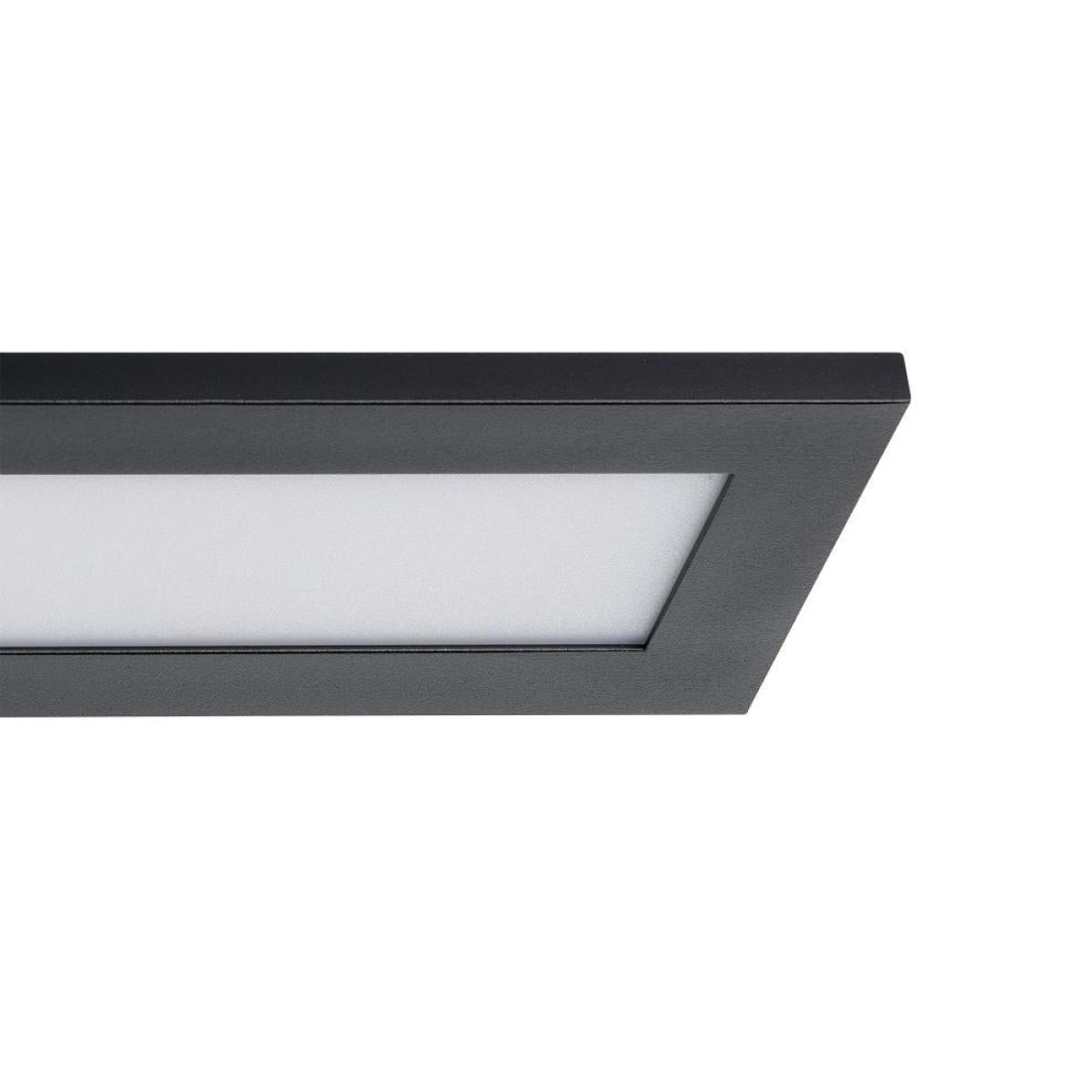 The features a rectangular, black aluminium frame measuring 120 cm long and 10cm wide with a white plastic cover. The optical floating effect due to the hidden bracket, gives the LED panel has a high-quality look. The timeless design and the neutral white light of the ceiling light are ideal for any room where good illumination is required, such as the kitchen, hallway, utility room or office.
