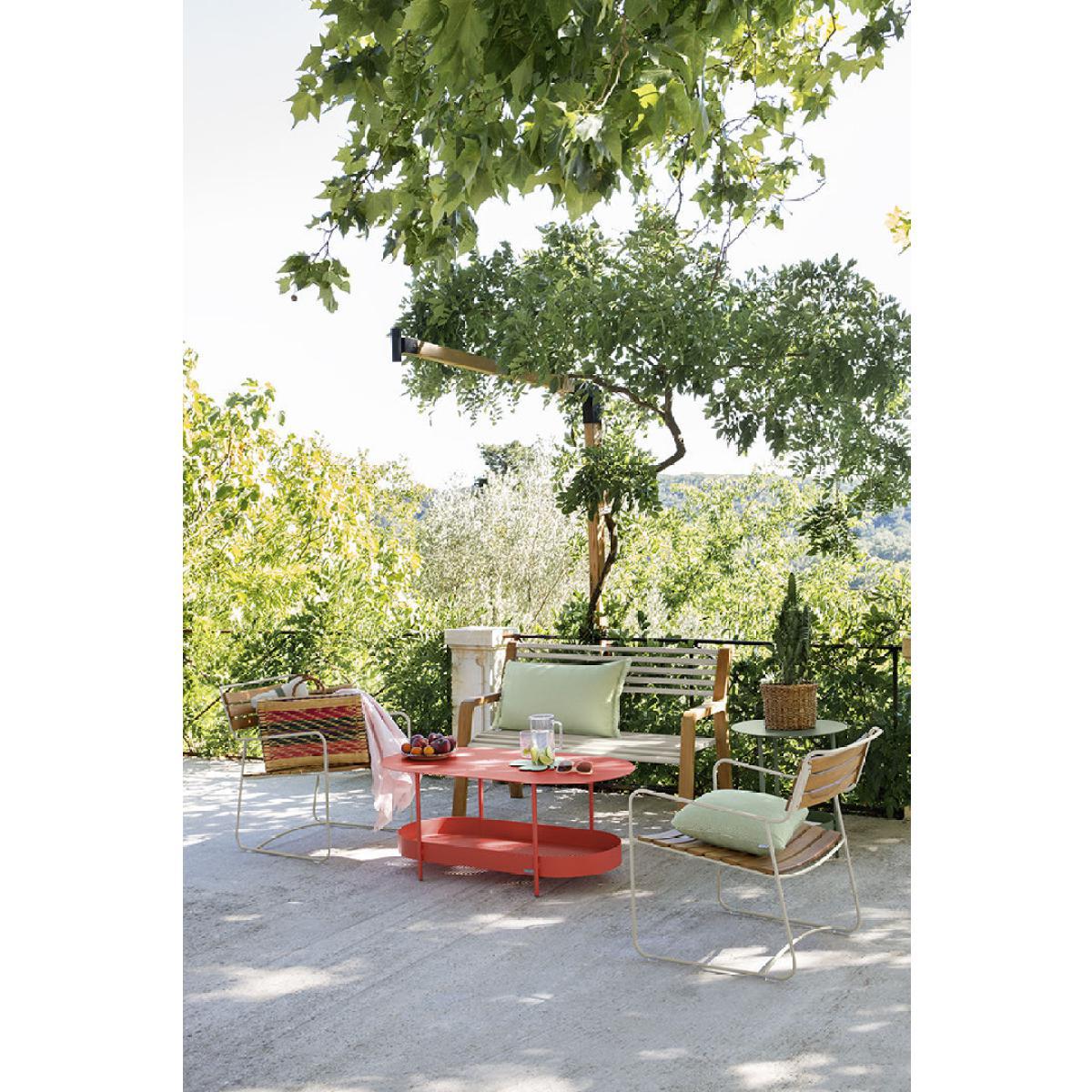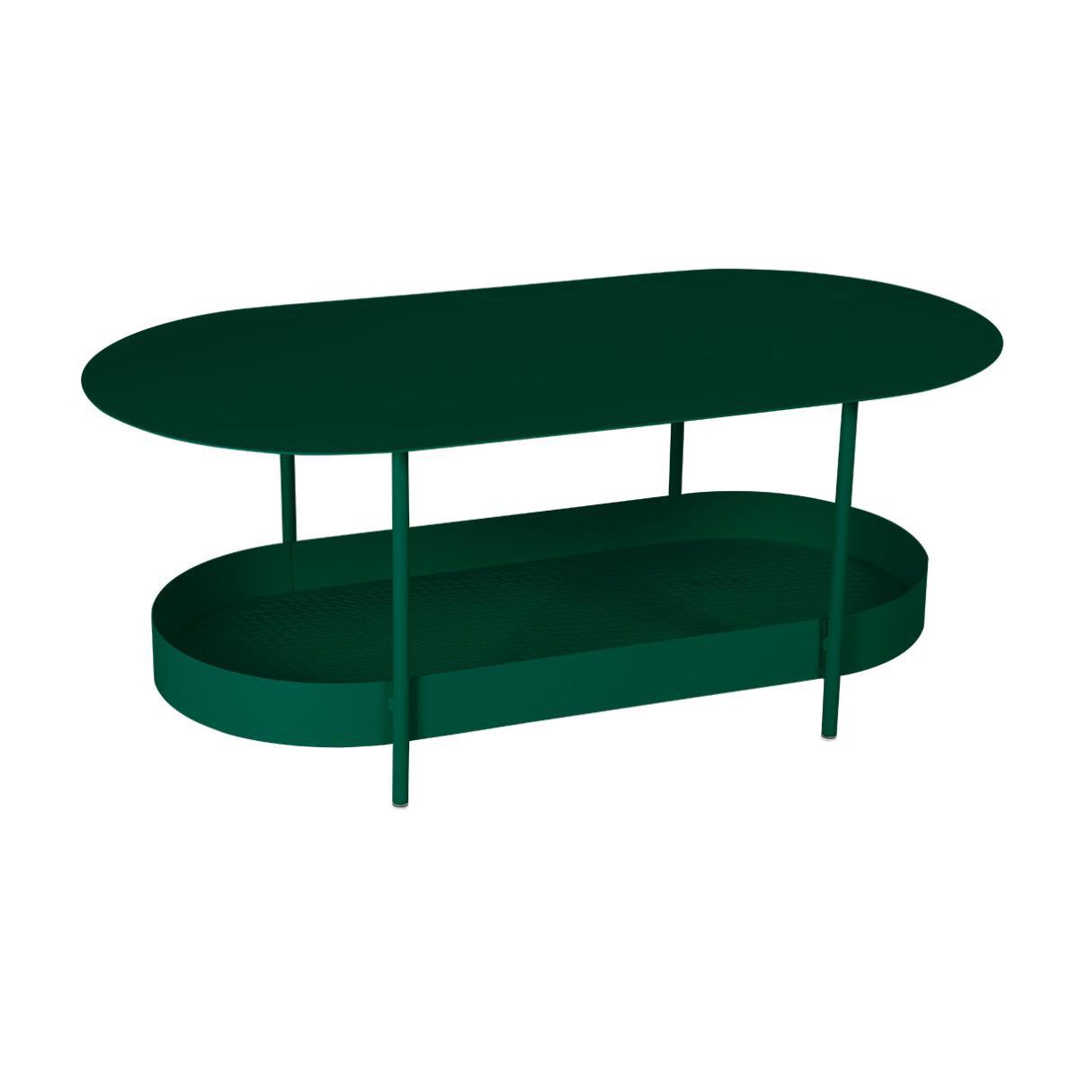 Been dreaming of treating yourself to a unique piece of designer furniture that stands out from the crowd? Inspired by Bauhaus and modernism, the very special oblong shape and integrated storage basket of the Salsa coffee table make it that very rarest of treasures! It looks amazing and is designed by the Spanish studio Goula & Figuera. And it will turn your garden furniture as well as your interior decor upside down! The Salsa coffee table is a very clever metal piece - its upper sheet metal tray with a clean edge will hold your newspapers and magazines, a few candles and, on aperitif nights, tapas and cocktails. All this while its lower storage basket enables you to store your bottles or even plants. It is a stunning piece of design! Ultra practical! Even more, its lightness and silent gliders make it so easy to move around in total discretion. Its design, combined with the anti-UV polyester powder paint, allows it to withstand bad weather. Cleverly designed, the holes in the lower tray allow rainwater or plant water to drain away - if you have plants on it -. And it is easy to clean. The Salsa coffee table accompanies the pedestal table of the same name - its oblong shape has been carefully chosen to match perfectly with its own disc for a perfect match with the rest of the collection! And when you know that it was completely made in France at the Thoissey workshops, you cannot help but fall for its charms. The design coffee table in colourful metal you were dreaming of it? Fermob delivered it! All you have to do is choose THE colour - among the 24 colours in the colour chart. Which will enhance your decor.
