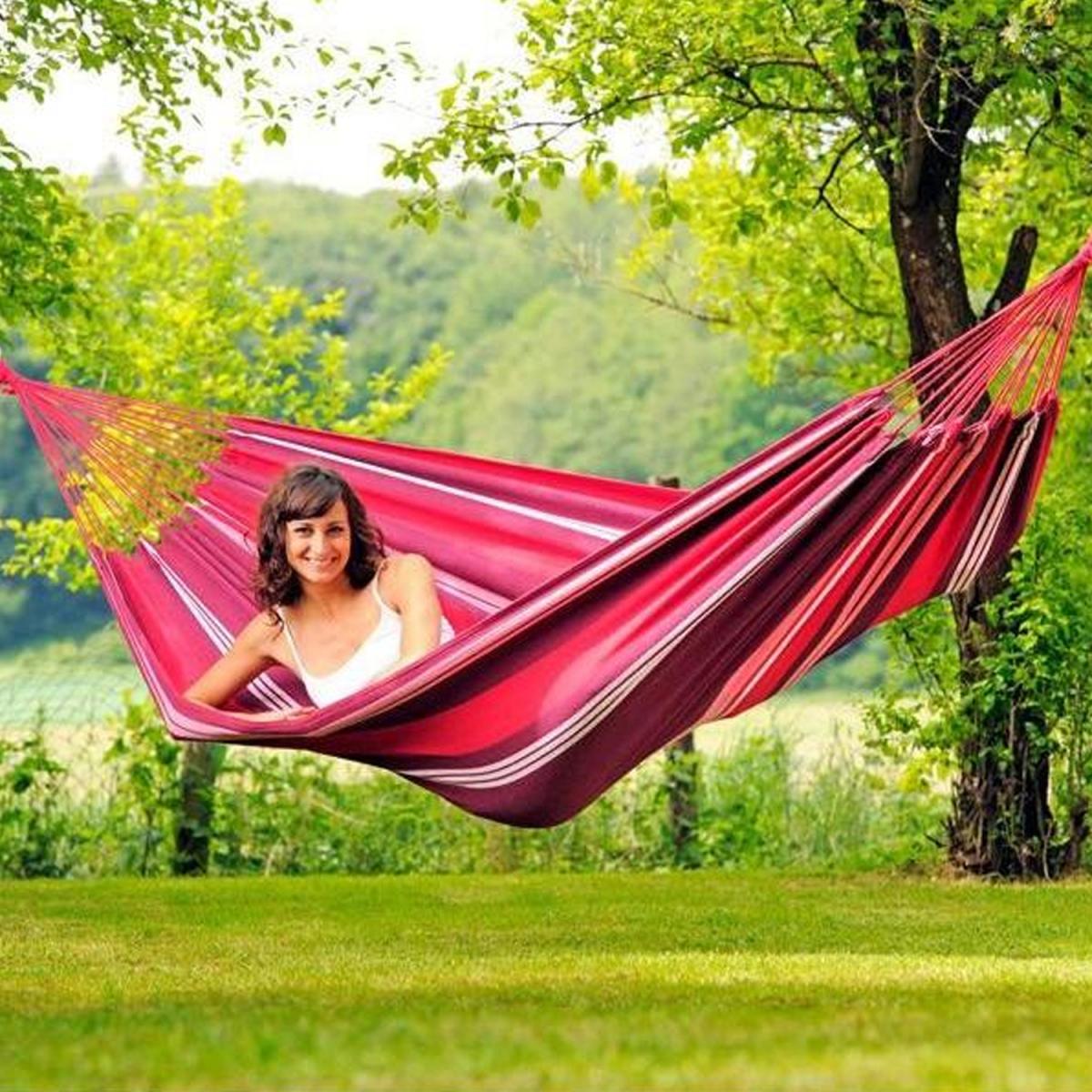 I love this hammock because of its vibrant striped design, which adds a relaxed, summery vibe to any space. It works particularly well in bohemian or coastal-inspired interiors, where natural textures and bold patterns are key. For practical styling, consider hanging it in a window nook or between two sturdy points in a conservatory or sunroom to create an inviting relaxation corner. Pair it with some neutral cushions or throws to balance out the bold stripes and enhance comfort. It’s a versatile piece that, when styled correctly, can serve as both a functional lounge spot and a colourful focal point in your indoor or outdoor setting.
