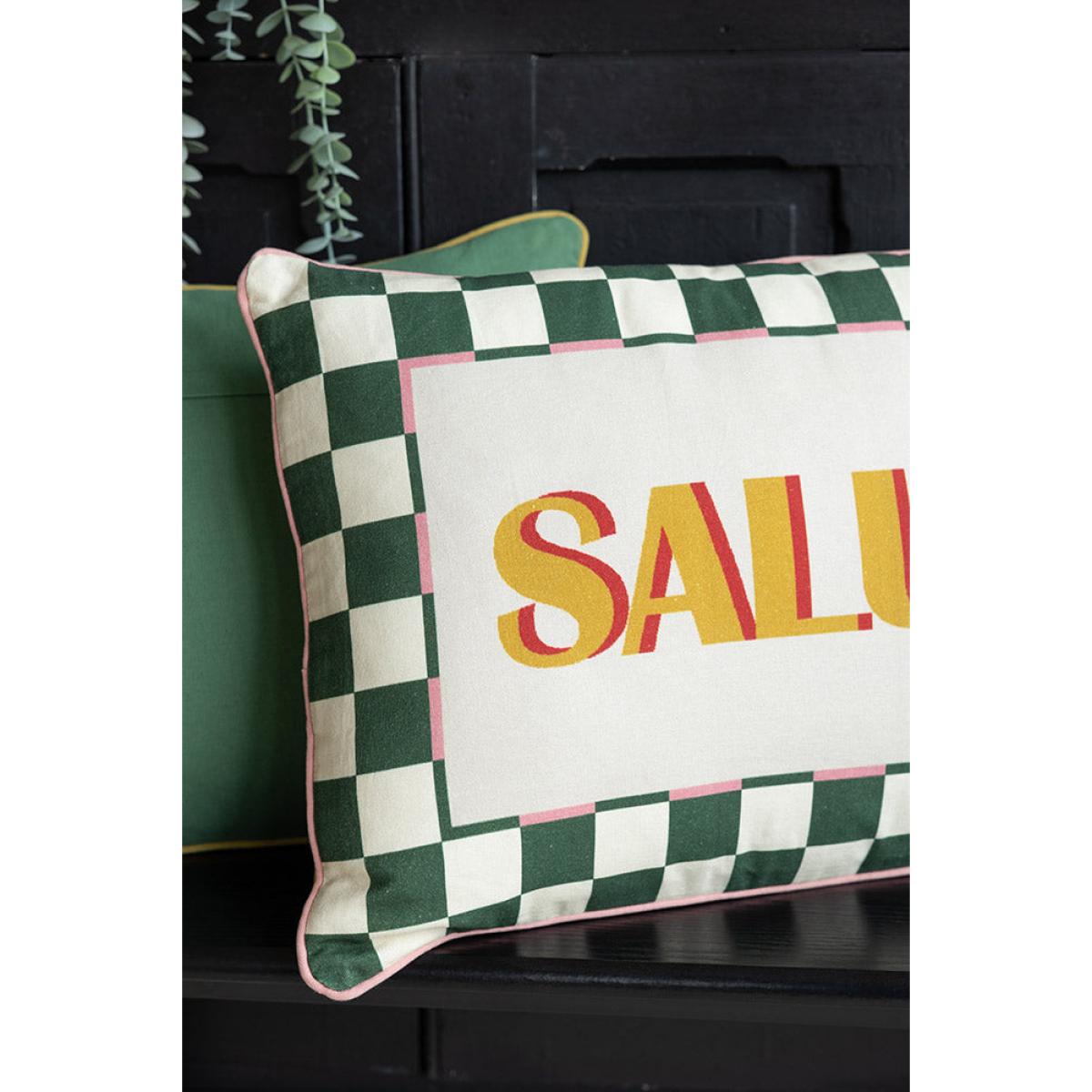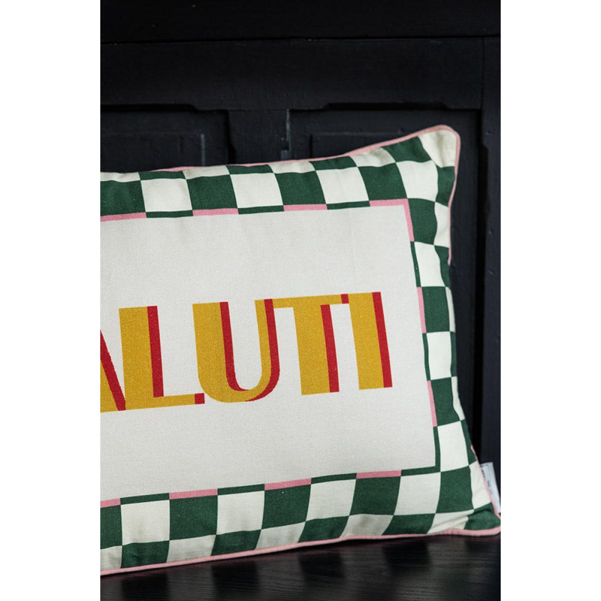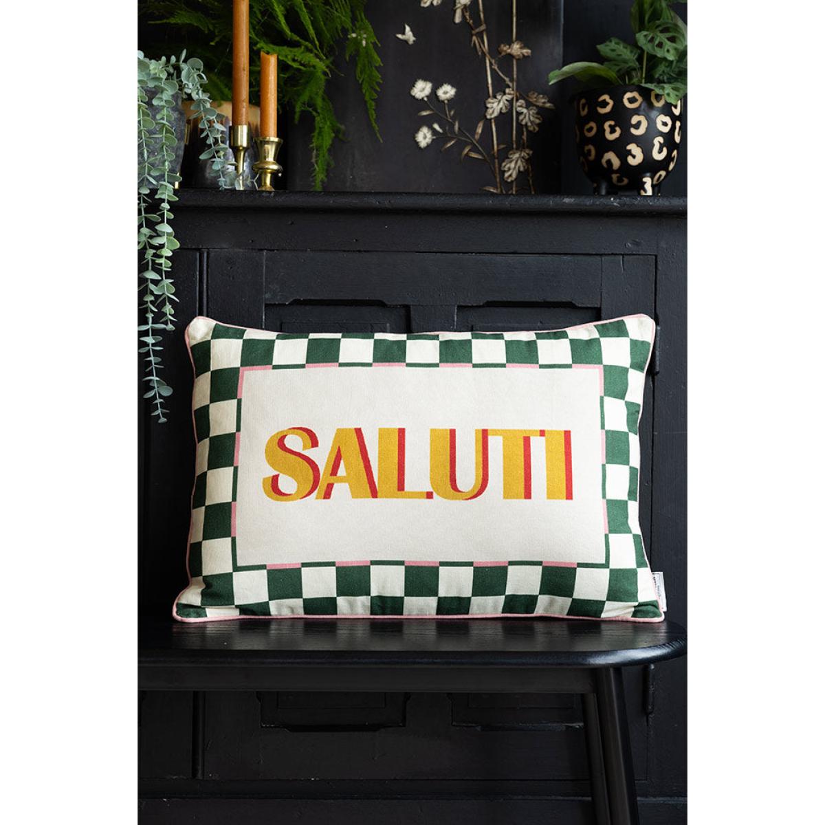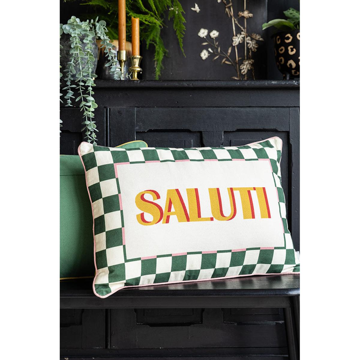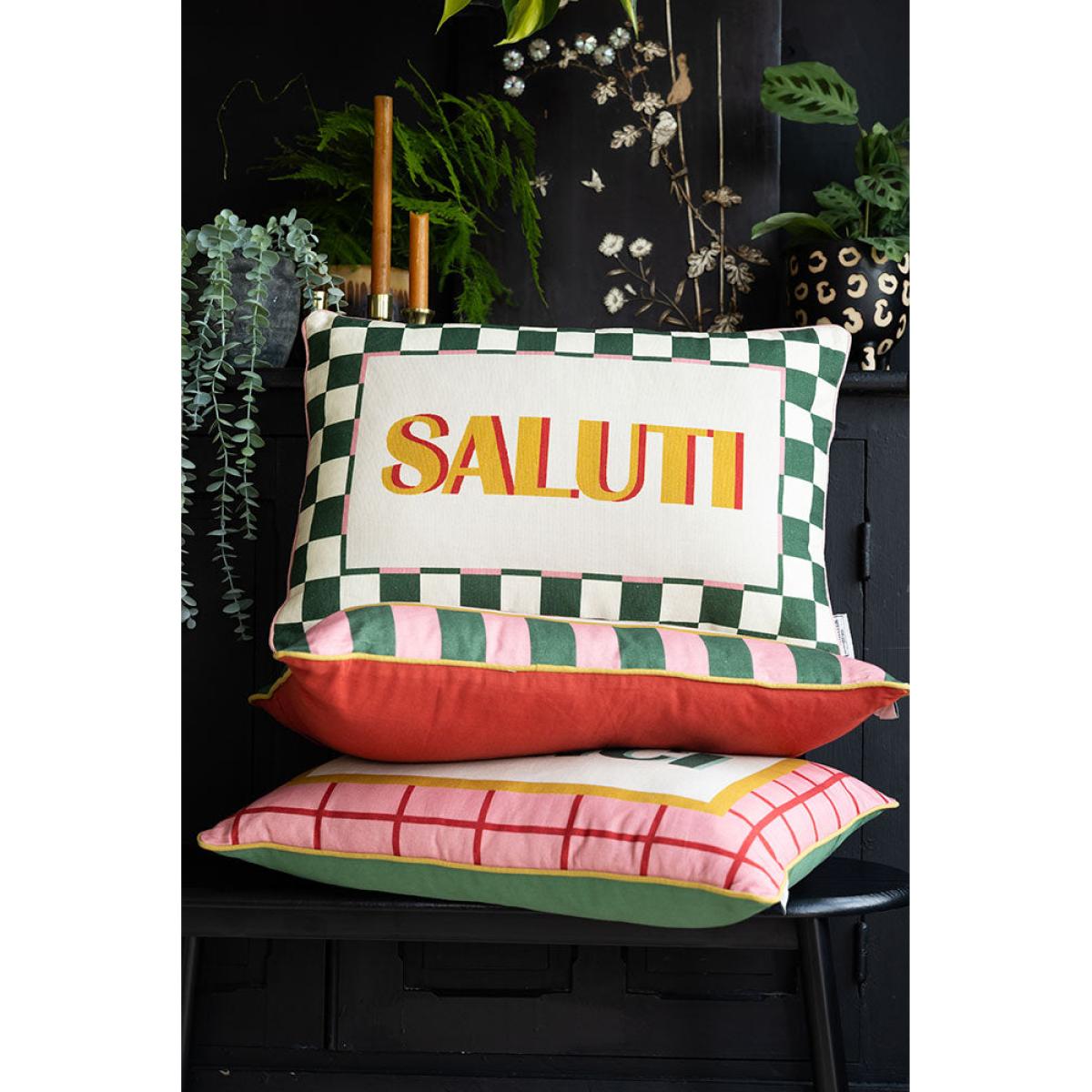 We love cushions for their versatility and ability to change the look and feel of a room almost instantly – simply add a colourful, contemporary piece like this to a neutral or block colour sofa and feel the uplift in energy it brings. This cushion features a check design and 3D typography that gives it a modern, contemporary feel, while still adding a supportive, comfortable element, and is the perfect fusion of style and comfort. ‘Saluti’ means ‘greetings’ in Italian, making this cushion perfect for the living room or kitchen snug – make your guests feel welcome every before you pop the kettle on (or open the wine...) Use as an accent of colour and to create a talking point in your home. A personality piece that will soon take pride of place in your cushion arrangents. - Saluti cushion - Material:Cotton cover with polyester filling - Measures: H40cm x W60cm