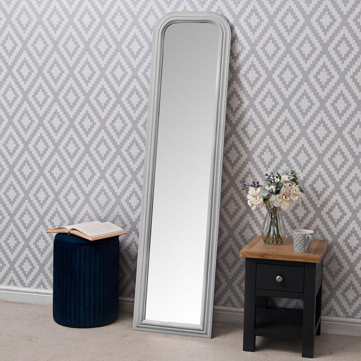 Dashing out of the door? Give your outfit that essential once-over with this Salzburg grey arched leaner hallway mirror (40 x 160cm). This full-length piece lets you admire yourself from top to toe, and the elegant grey frame suits both bold patterned wallpaper and simple pale walls. This sizeable mirror gives the illusion of extra space and light in narrow hallways or cosy bedroom corners, and the sculpted frame and rounded corners have a classical feel. Designed to lean languidly, this mirror also comes complete with fittings and fixtures so you can mount it on the wall if you prefer.