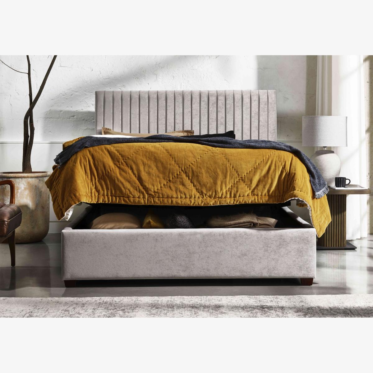 What if you could design your ideal ottoman bed frame? What if you could choose from a range of sumptuous cushioned headboards in dozens of upholstery fabrics, add headboard wings and a matching footboard and more? It’s all possible with our exclusive Mix and Match collection of electric and manual ottoman bed frames. And because there are literally hundreds of possible combinations, it’s impossible to show them all. That’s why you’ll find just a small selection of carefully designed Mix and Match bed frames here which we hope you'll love – or perhaps even inspire you to create your own. The Mix and Match range of customisable ottoman bed frames is exclusively available at Furniture Village. Understated and elegant, this lovely upholstered ottoman bed frame brings extra storage to your bedroom. And as it comes complete with our fluted Sam headboard, it brings exceptional style too. Why you'll love it Luxury style, everyday practicality – this ottoman bed frame will transform your bedroom. Comes complete with our elegant fluted Sam headboard. Large ottoman storage compartment is ideal for lightweight items like duvets, pillows and clothing. Sprung slatted wood base provides excellent support for all kinds of mattresses. Huge choice of high-quality fabric upholstery options. In double, king and super king bed sizes. Also available with an electric-powered ottoman lift mechanism. Handmade in the UK exclusively for Furniture Village. This ottoman bed frame with headboard is part of our Mix and Match range. Mix and match headboard styles and sizes, ottoman mechanisms, upholstery fabrics and more. What you need to know Mattress sold separately. For easier access, the bed frame and the headboard are each available in two pieces. Maximum mattress weights: double 90 kg, king 100 kg, super king 110 kg. End-opening ottoman with manual mechanism. Please keep hands clear of the mechanism when opening and closing the ottoman. Do not sit on the foot end of this ottoman bed frame when opening. Clean regularly using a soft brush or vacuum with the curtain attachment. Deal with any spills promptly. Professional cleaning advised for oil- and grease-based stains. Some fabrics can show wear on areas of more use or in direct sunlight. Item code: SAM-MO46--008