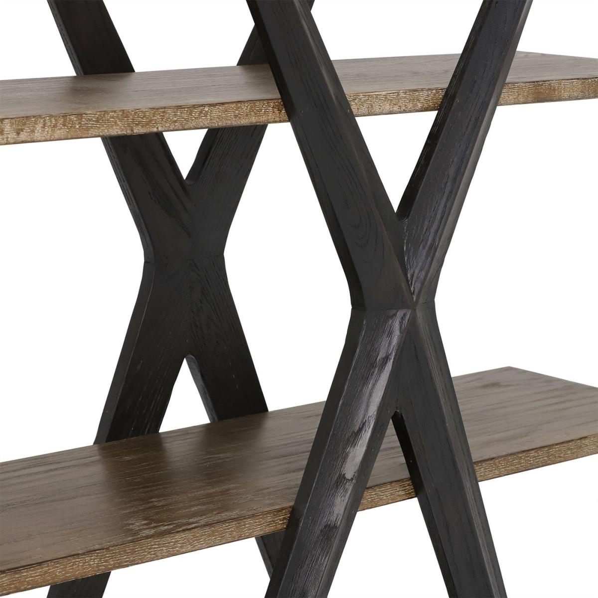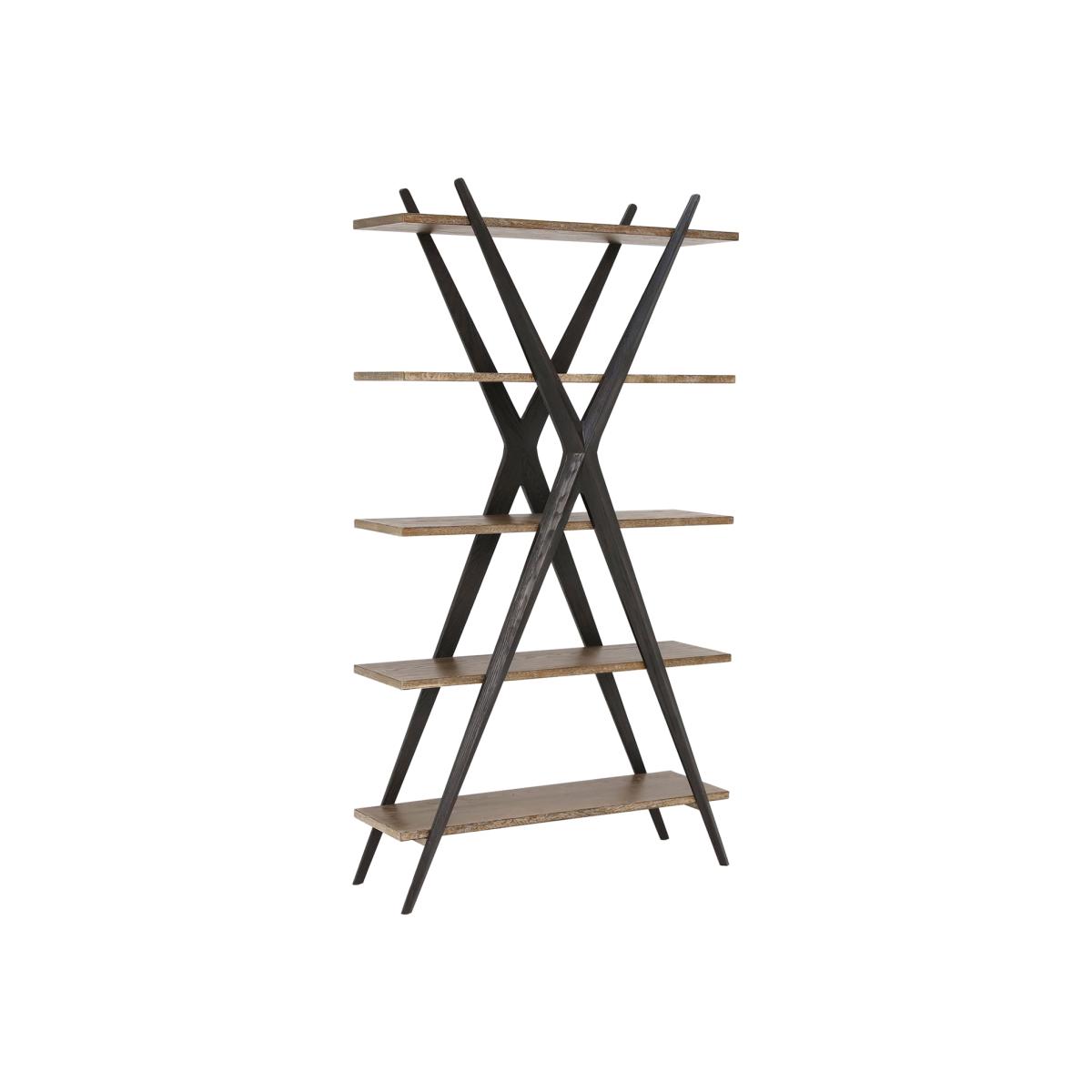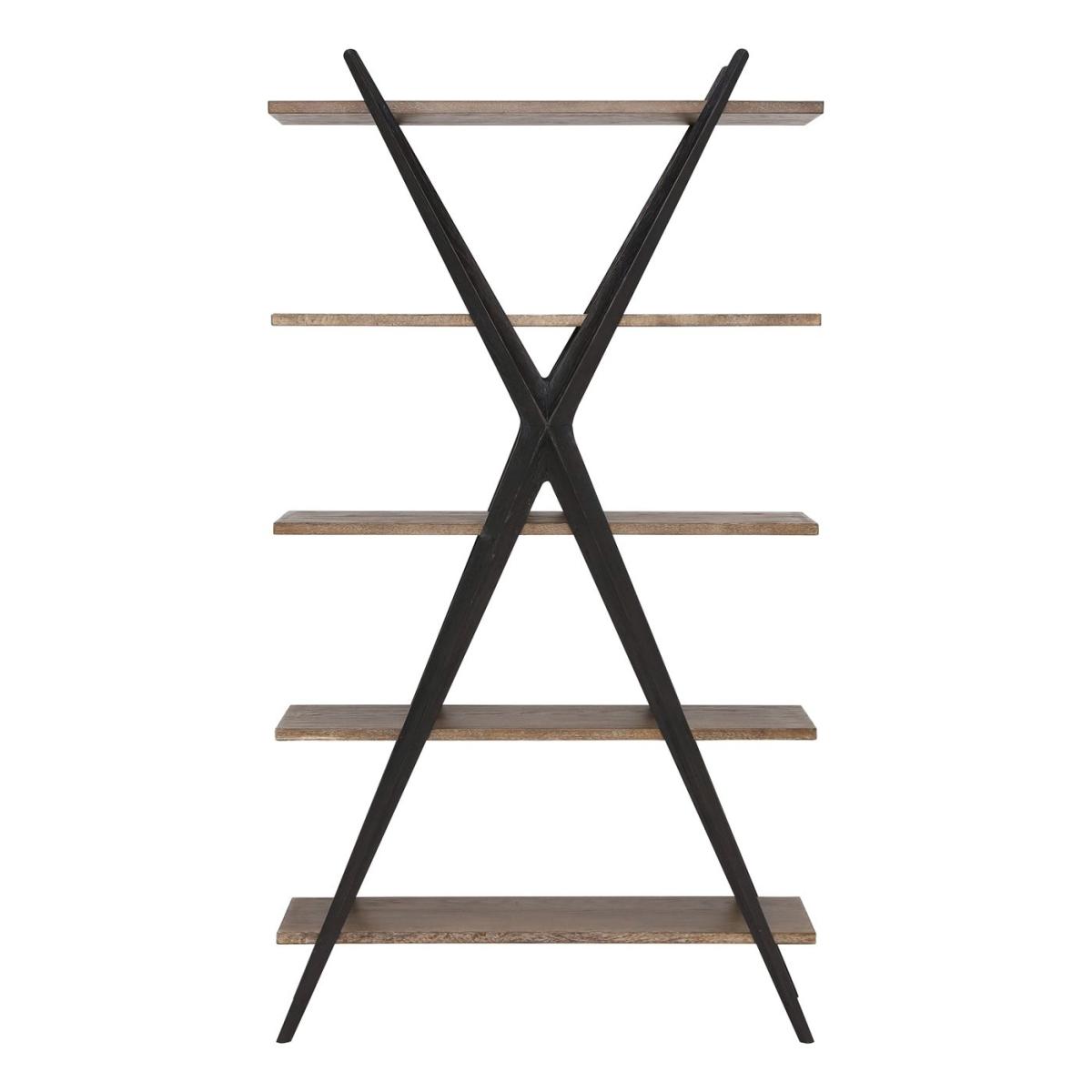 Design. Put your favourite pieces on display with the Sam cross shelving. Crafted from solid oak and veneer, its statement frame combines style with practicality. Strong and sturdy, this bookcase is built to last. Its exciting cross frame is certain to liven up many hallways, home offices or even dining areas. The bookcase offers ample room for storing and displaying plants, photos, accessories and of course books, allowing you space to emit those cherished personal touches throughout the home.