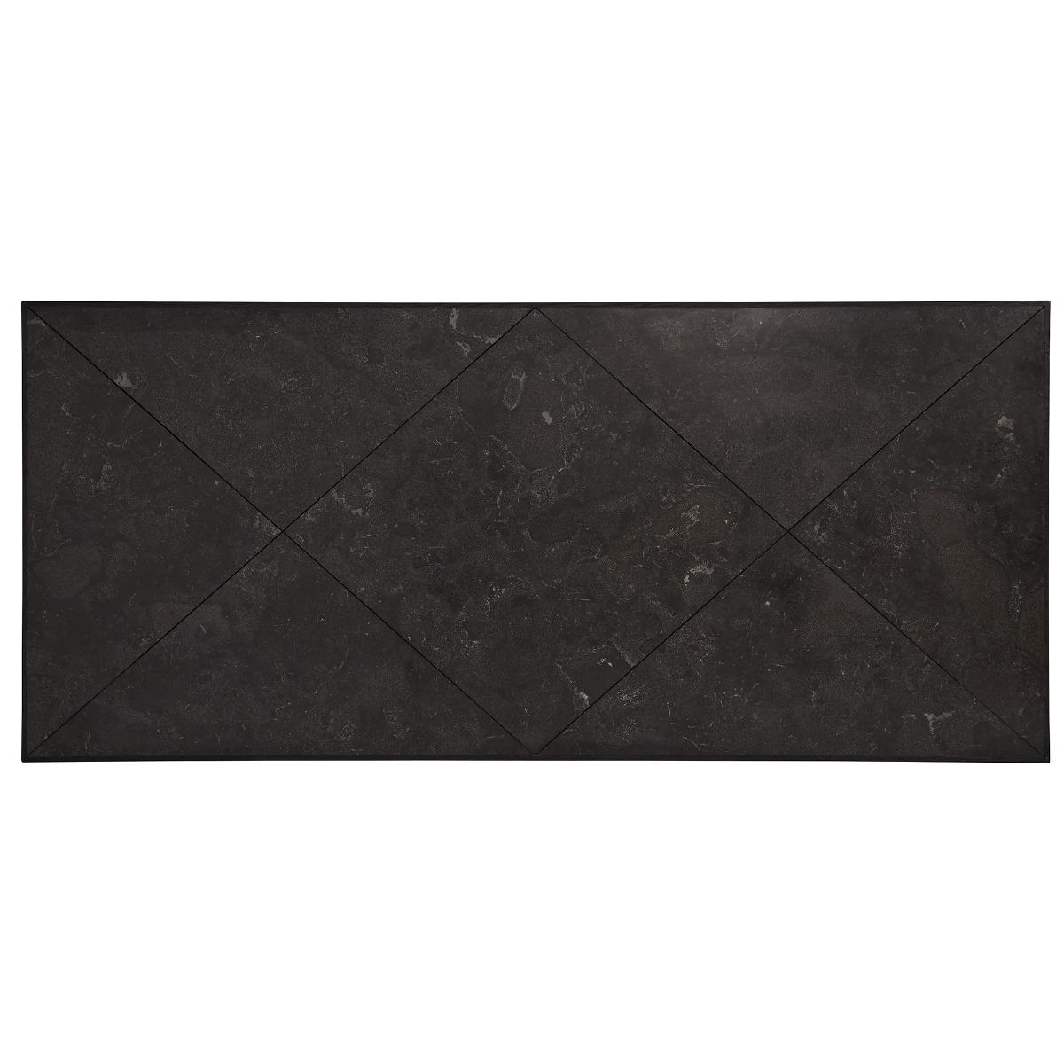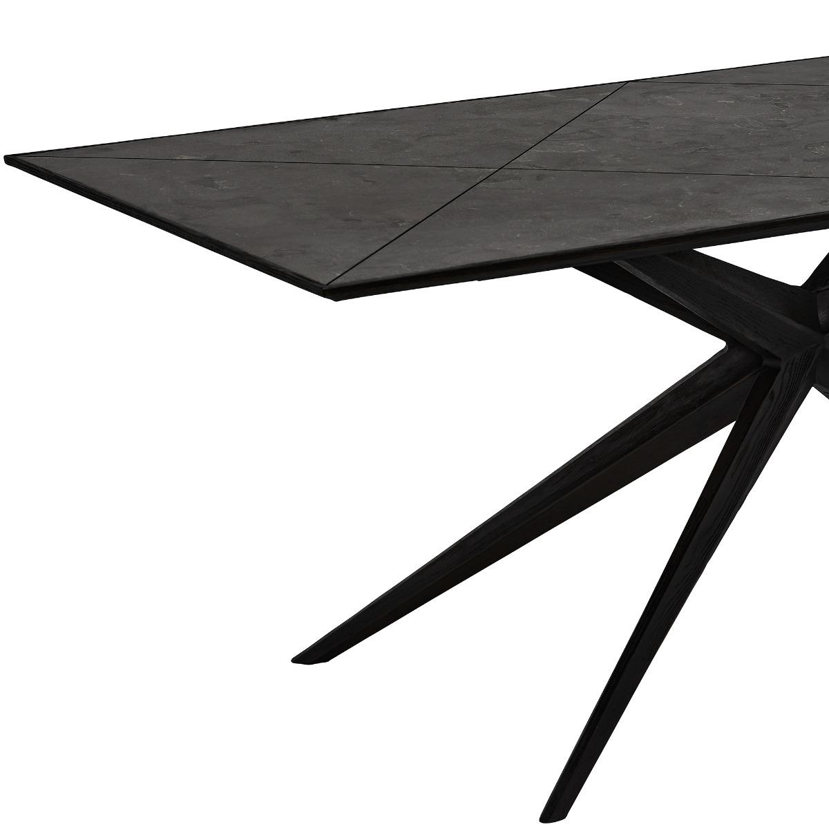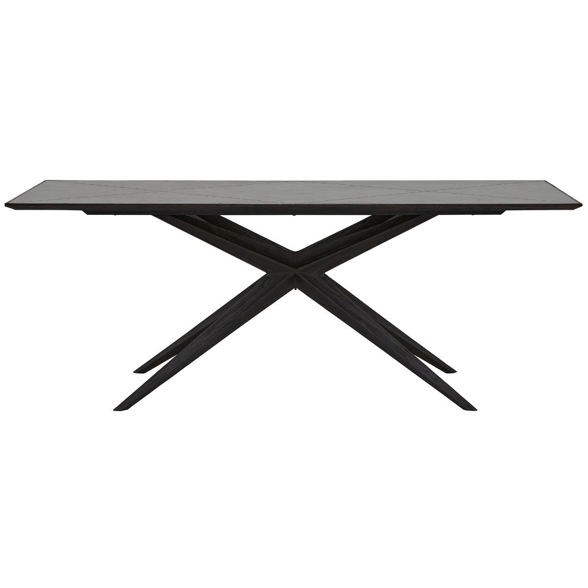 Design. Table and chairs are a focal point in your dining space and should certainly make an impact; the Cross Dining Table will do just that. Ebony legs spayed in an unusual crossed design is the base to a quality blue stone veneer top, perfect for a modern home. The Cross Dining Table offers plenty of space to fit 6 chairs around comfortably, ideal for entertaining.