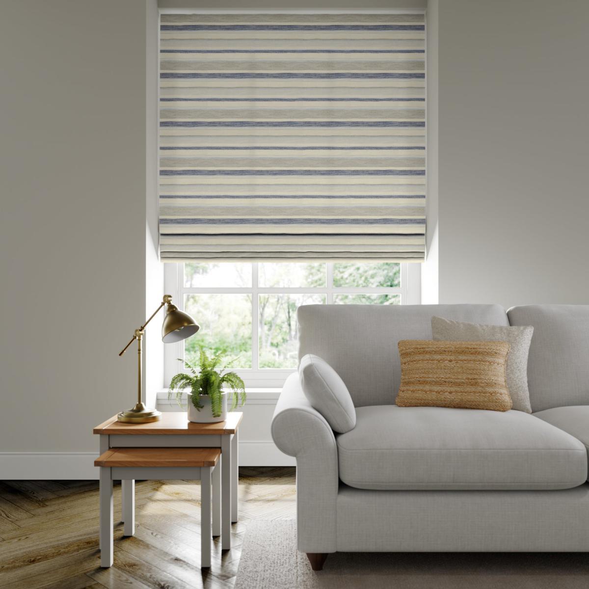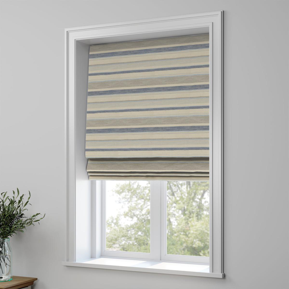 * Choose from 3 linings* Select your fitting type* Pick a side for the operating chain With a simple horizontal striped design, elegantly decorate your home with our Sam Stripe range of Roman Blinds.**Choosing your lining:*** Blackout provides minimal light disturbance in your home making it perfect for bedrooms. * Thermal helps to keep the warmth in and the cool air out meaning it’s great for family rooms or lounges. * Our Standard Lining is perfect if you like the glow of natural light whilst your curtains are closed whilst still maintaining your privacy.**Choosing your fitting type:*** Inside the recess: this gives a tidy, snug finish as it’s made to fit your window exactly. * Outside the recess: this option is great if you don’t want the blind to be visible from the outside when it’s drawn up.**Choosing which side you’d like the operating chain:*** Think about where your blind will be situated and what furniture may be near it – choose the side that is easier for you to access.**Need help deciding or measuring?**Book a free appointment with one of our consultants! dunelm. com/category/made-to-measure/book-an-appointment).**Child Safety:**We add clips to the back of our roman blinds to attach the cords to the fabric. They also double up as a child safety feature. If pressure is exerted the clips will detach to prevent the risk of strangulation. Please read our [Blinds Safety Guide](https://www. dunelm. com/info/buying-guides/blinds-safety-guidance) for more information. If the clips detach accidentally during normal use, they can be easily re-clipped back into place. Please note: If your measured width is over 130cm your blinds may come with a fabric join to provide the full width required.