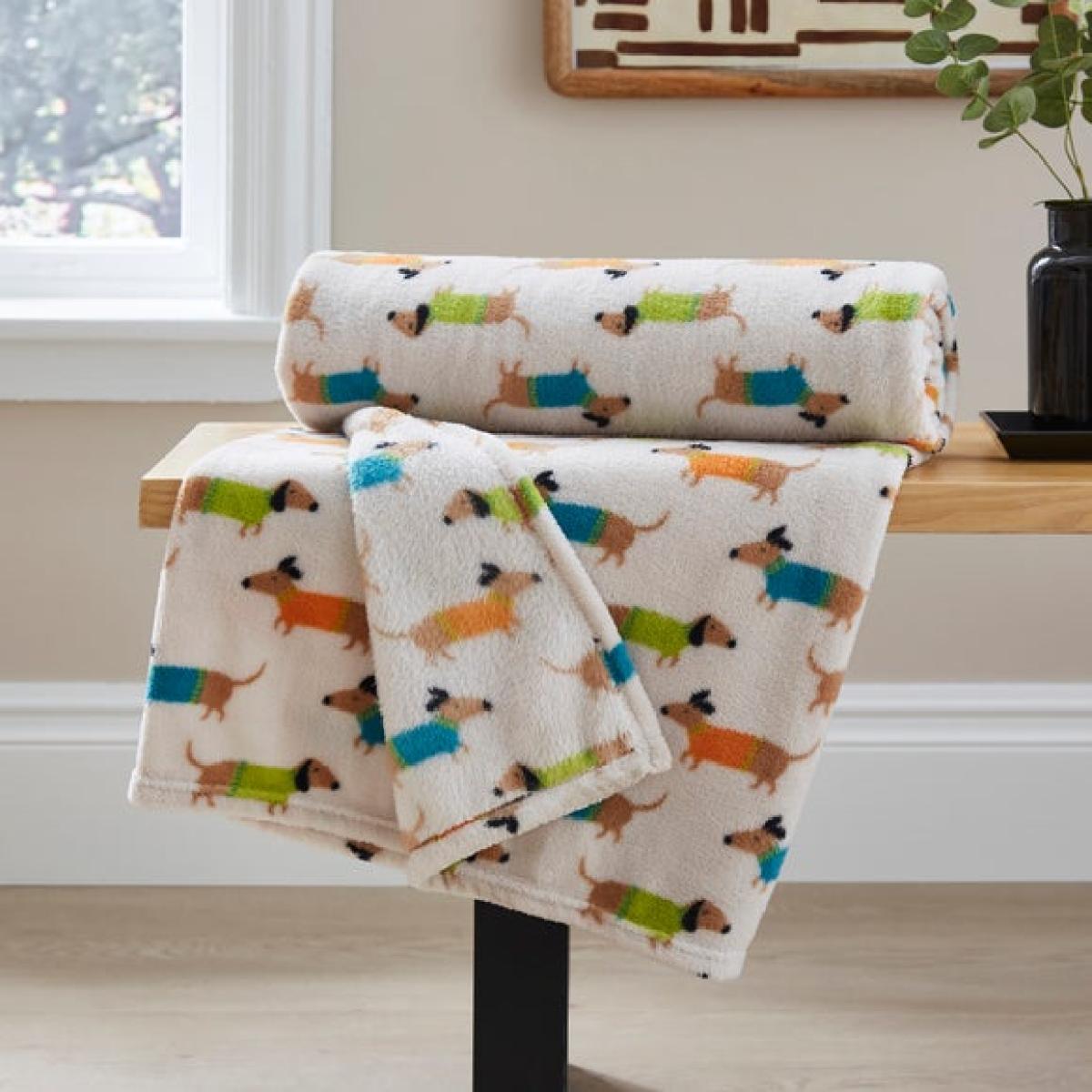 I love the Sam the Sausage Dog throw for adding a playful yet cosy touch to a variety of interiors. Its fun dog print works particularly well in casual or child-friendly spaces, but it can also inject personality into more neutral schemes like Scandinavian or farmhouse styles. The size makes it versatile - perfect for draping over a sofa or layering on a bed for extra warmth. For styling tips, try pairing it with muted cushions to let the print stand out, or combine it with neutral tones to introduce a cheerful accent. It’s practical too - soft and easy to wash - making it ideal for both everyday use and occasional cosy nights in.