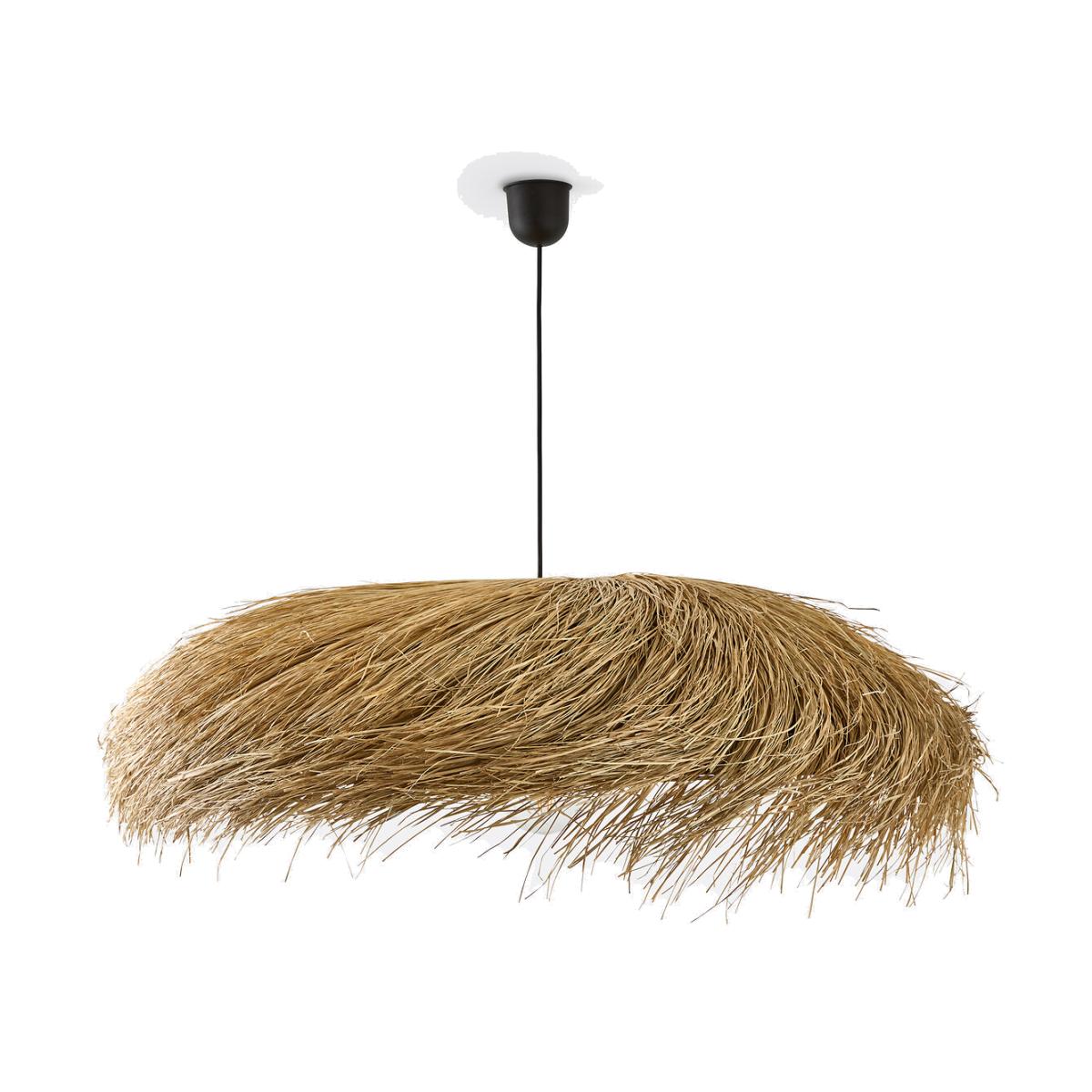 Samaï, a superb pendant light in distinctive materials with a stylish effect, will add a touch of originality to your interior. Product Details • Panama fibres and raffia • Iron structure • Supports E27 bulb (not supplied) • This product is sold non-electrified. Find the Baulind electric cable sold on the site. Dimensions • Diameter: 80cm • Height: 25cm. Dimensions and weight of parcel1 parcel • L91 x H33 x D91cm. 3kg.