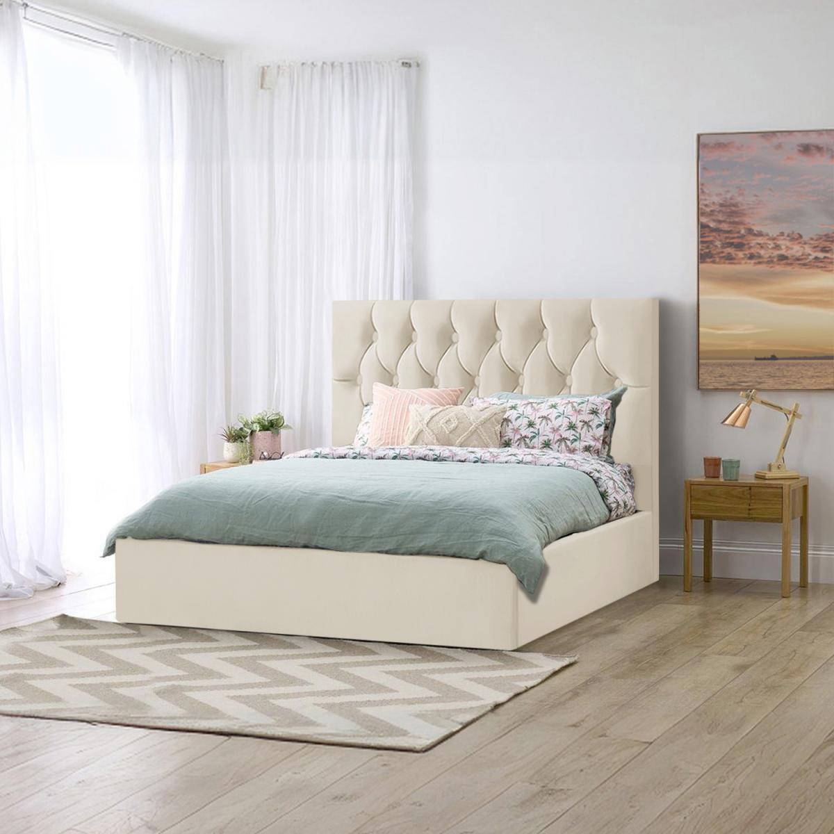 This Chesterfield bed is created in regards to modern style and gives you a look of latest trends to decorate your bedroom. The patterns created on this bed are based on unique but exquisite longitudinal margins that creates a graceful appearance. Furthermore, these elegant patterns are craved out on finest quality of velvet that enhance the aesthetic aspect of this bed. In addition, this bed also features a sublime experience of softness and coziness to offer you with a sound sleep that you have yearned for decades. Succinctly, our beds are the kinds of bed that you dream to possess and experience a relaxing slumber to eradicate all the tired of the weary days. Headboard Height 125cm