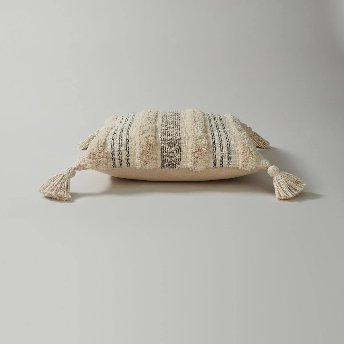 * Removable cover* Washable* Tassel detail* Textured design* Hand wash only Elevate your comfort with the Samara Striped Cushion in Natural. It comes with a removable cover that's easy to wash, ensuring your cushion stays fresh and clean. The tassel detail adds a playful touch, while the textured design adds visual interest. Don't forget, it's hand wash only, so treat it gently to maintain its charm.