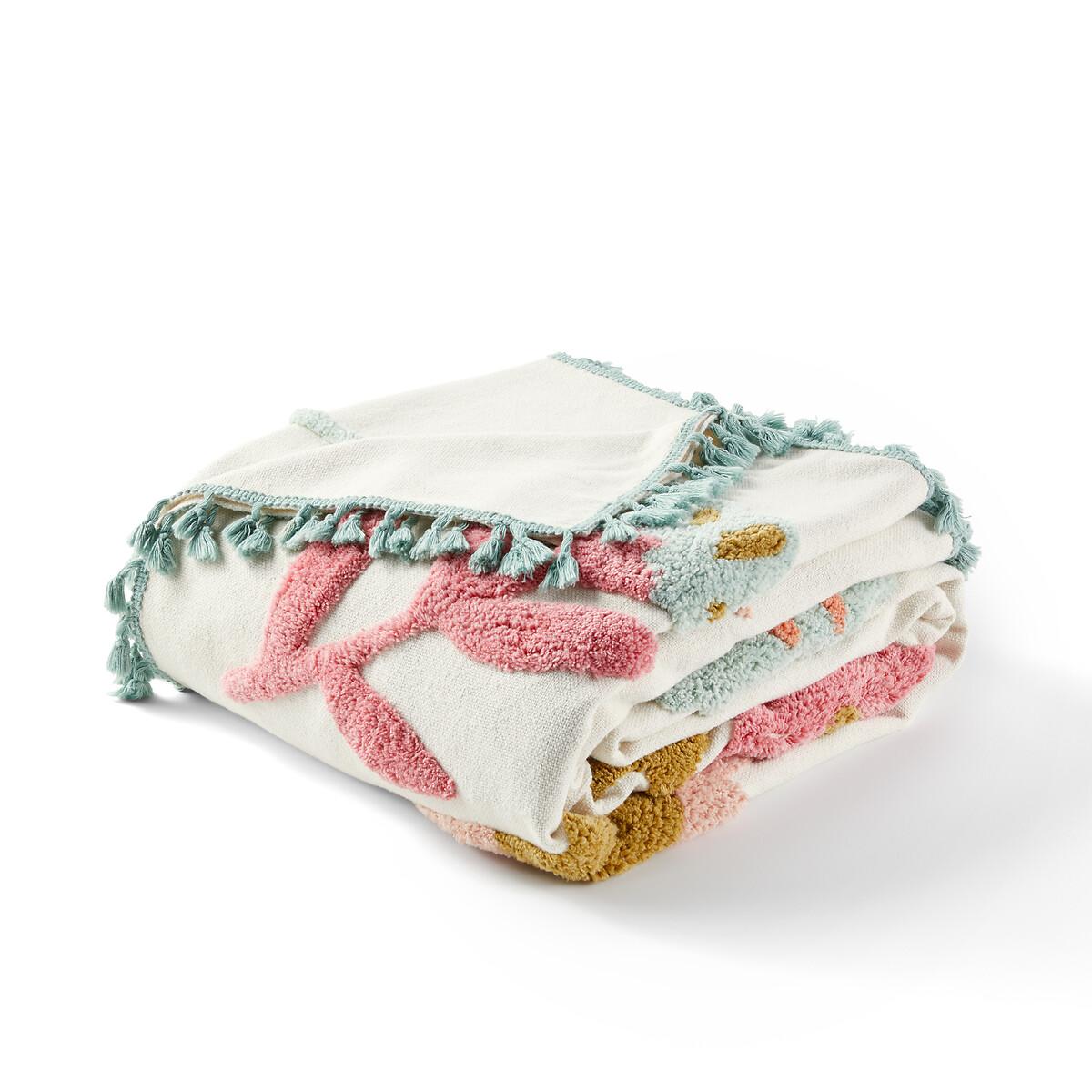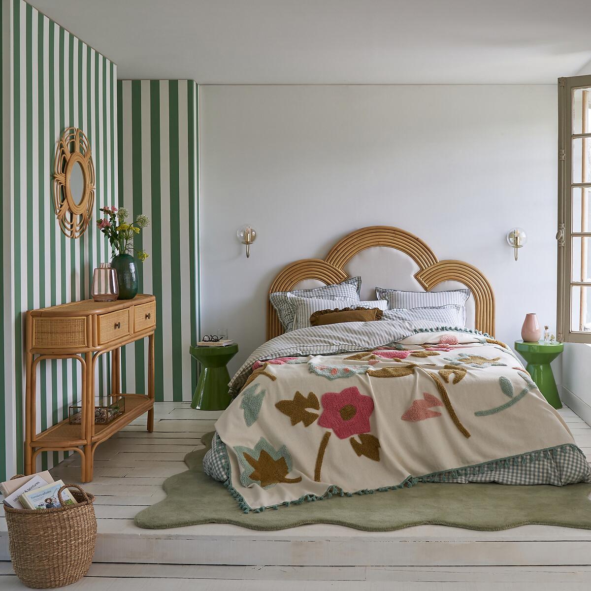Tufted flowers, rich colours, bright pompoms... Made in braided cotton, Samarkand is a decorative piece in its own right. Placed on a bed, it completes your decor with poetry and fantasy.