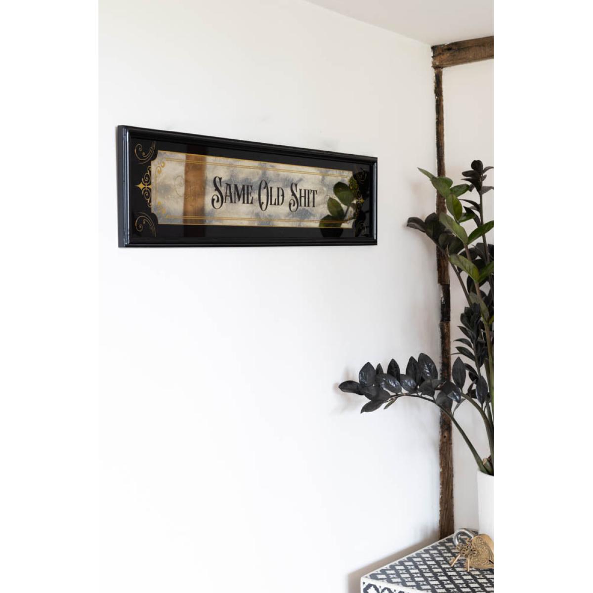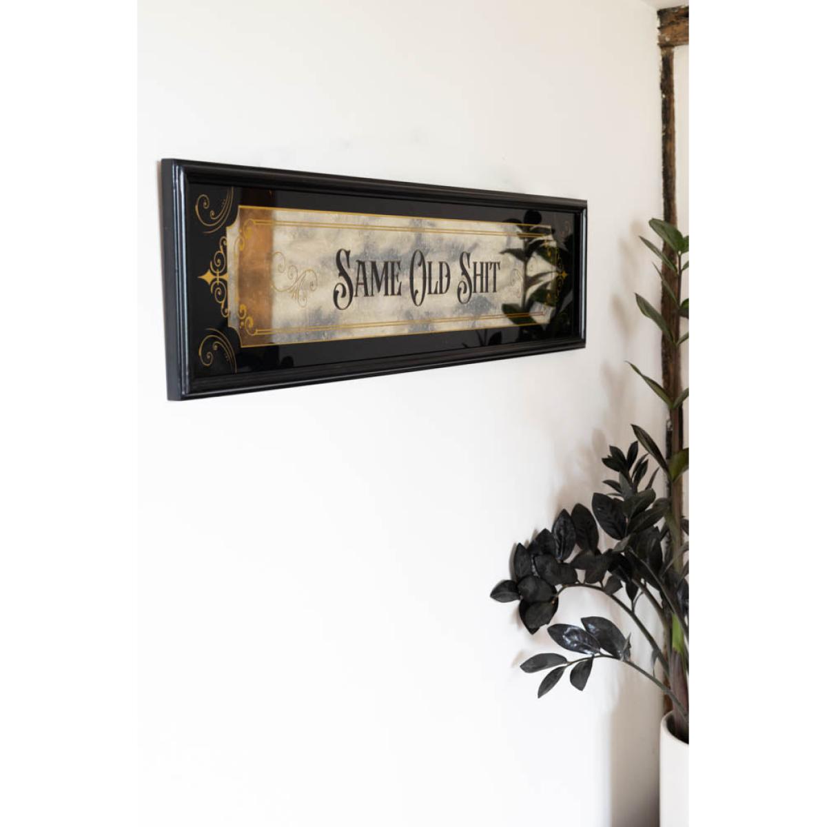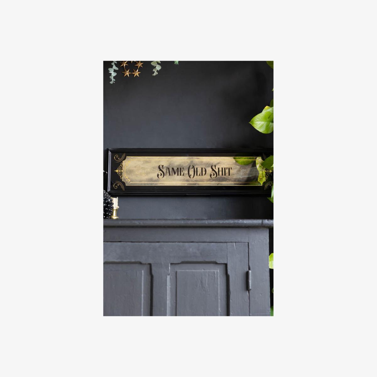 Perfect for embracing your cynical side, the Same Old Shit Mirror Wall Art will make you smile on good days and bad. Designed in-house, we took inspiration from vintage signs and antique advertising mirrors in pubs when creating this vintage mirror, with a cheeky twist added in signature Rockett St George style. The juxtaposition between the vintage look and the naughty slogan is a highlight of this fabulous framed mirror and ideal for those who don’t take life too seriously. Celebrating a black and gold colour palette against a foxed-effect mirrored background, this daring decorative mirror is easy to style anywhere, from a shelf in the kitchen to the walls of your hallway. Alternatively, why not style the wall mirror in the bathroom for a tongue-in-cheek style statement that proves bathrooms need never be boring again?- Framed wall mirror printed with ‘Same Old Shit’ - Measures: H20cm x W74cm x D2.5cm- Includes fixings for hanging on the wall - Match with the Let Happiness Happen Mirror Wall Art for a set that suits your every mood