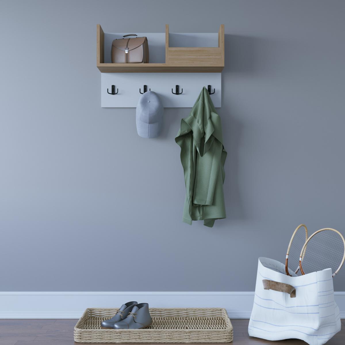 Sameul Floating Coat Hanger will be an attractive part of your house decoration with its stylish appearance and unusual design. While offering you quality with its solid structure, it will give your hall a different look with its aesthetic design. Its wall-mounted design offers a extra space in your house. Thanks to its shelf design, you can easily store your umbrellas, coats, and bags. It is made of 18mm thick quality melamine coated particle board and banded with first-class PVC edge band. The product will be delivered to the customer in the original package as disassembled. It is designed to be assembled by the customer easily using simple household tools like a power drill or screwdriver. Assembly instruction, installation, and wall mounting hardware are included in the package. For fast and error-free installation, product parts are numbered with stickers in accordance with the assembly guide.