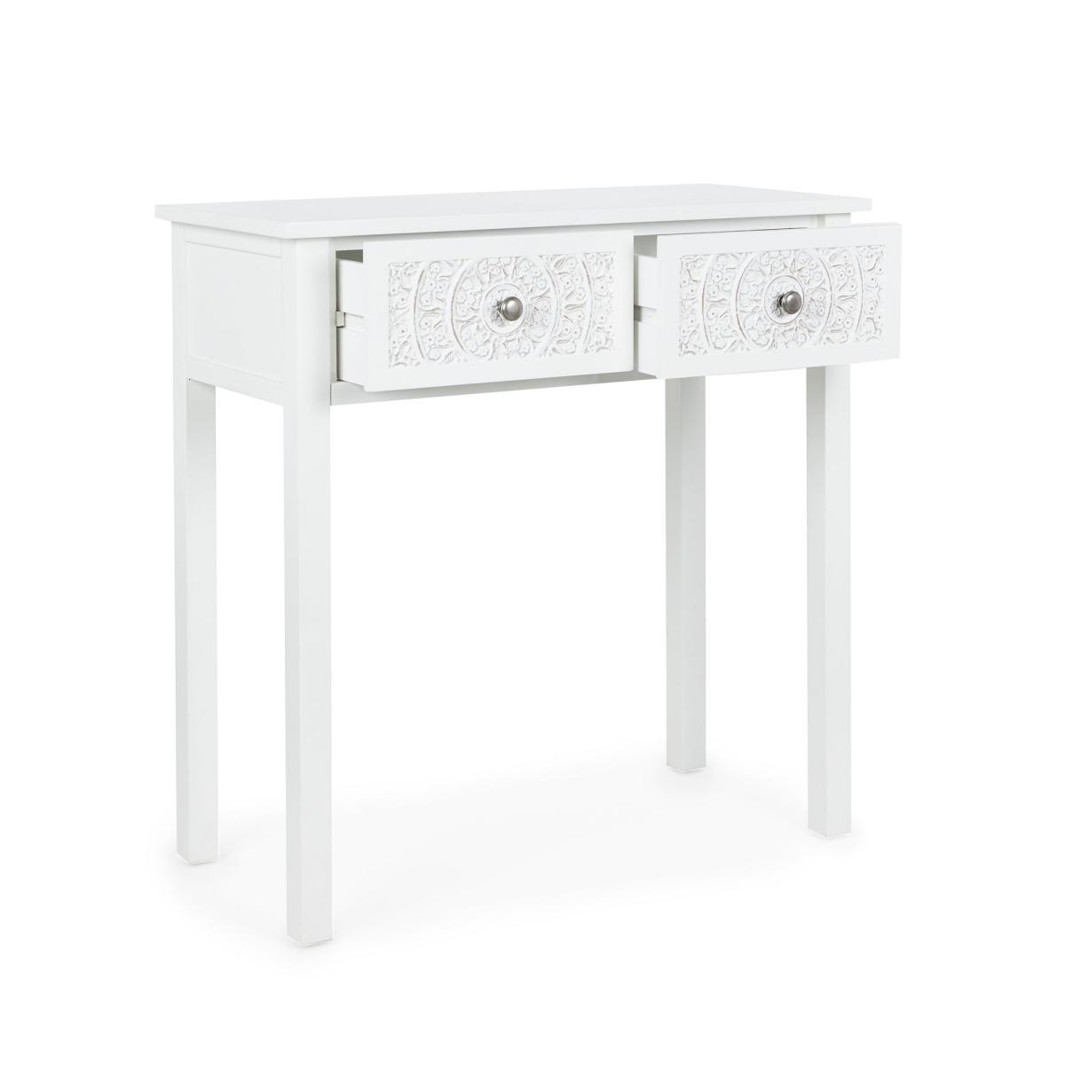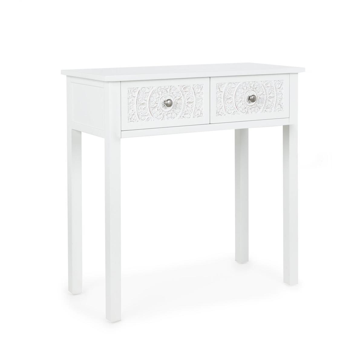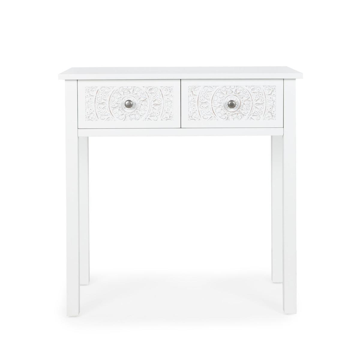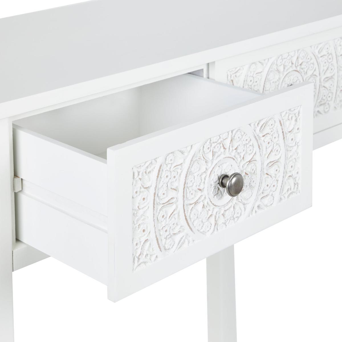 Dunelm Exclusive – Designed and Developed by Dunelm. Elegantly designed with a detailed carved out pattern front, the Samira range features a simple yet clean, structured finish. A contemporary style, the Samira range boasts a chunky, wooden design along with beautifully finished metal handles and a natural lacquered paint surface. Boasting a smaller footprint, the Samira dressing table is perfect for compact spaces whilst still providing ample storage space with its two spacious drawers. Care Instructions: Avoid prolonged exposure to direct sunlight. Wipe up spills immediately with a damp cloth, avoid common hazards such as harsh solvents or abrasives. Maintain with regular dusting. Clean metal fixtures with mild, soap and water, dry thoroughly. Do not use a brass cleaner as this will damage the lacquer.