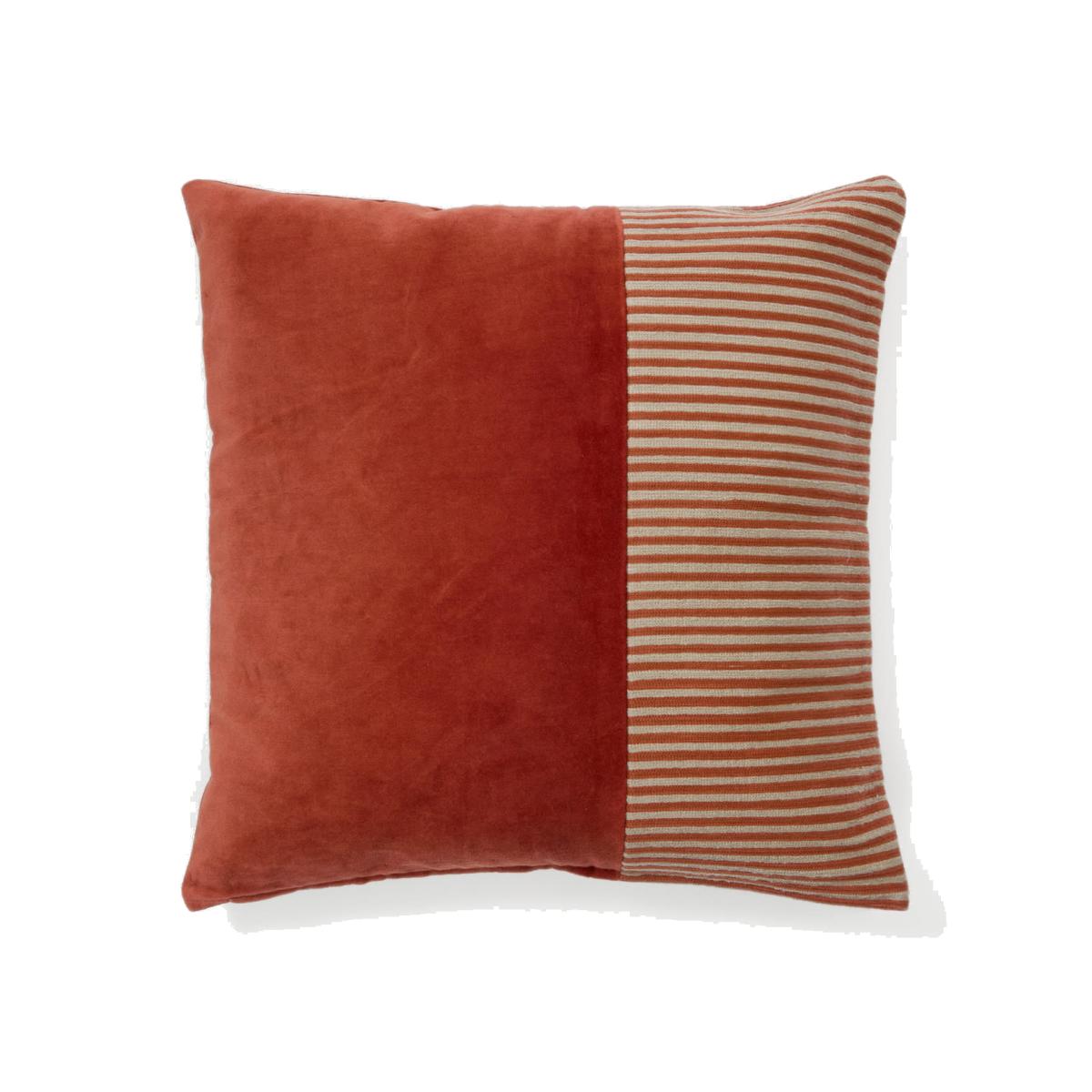 Samit 100% cotton velvet cushion cover with contrasting red stripes, 45 x 45 cm