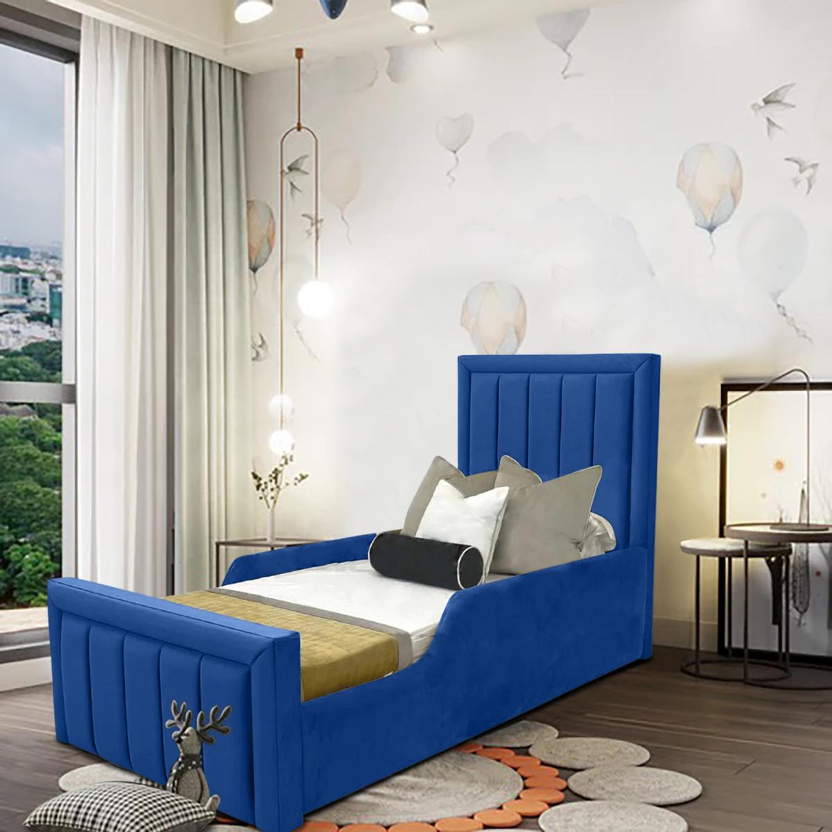 Sammy Bed Gaslift Ottoman Plush Velvet with Safety Siderails - Blue / Small Double