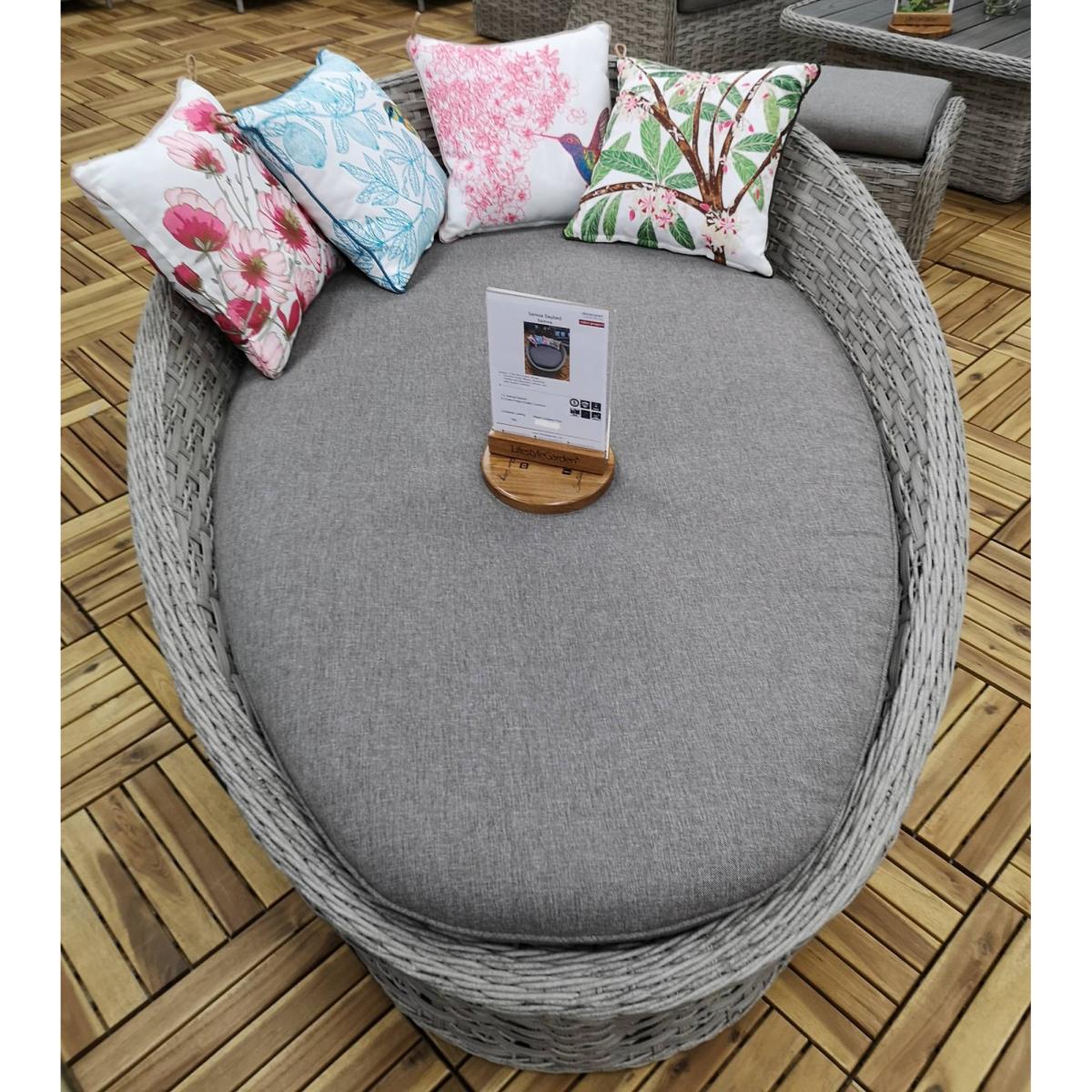 I love the Samoa daybed for its versatile, contemporary look that suits both relaxed outdoor spaces and stylish indoor conservatories. Its oval shape creates an inviting, cocooning feel that works well as a statement piece in larger lounges or garden terraces. The neutral grey wicker foundation provides a great backdrop for a range of colour schemes, while the cushions allow for easy seasonal updates or personalised touches. For styling tips, consider layering with textured throws and a mix of patterned and solid cushions to add visual interest. It's practical too-excellent for lounging in the sun or as a casual chill-out spot, making it a flexible addition to any interior or outdoor setting.