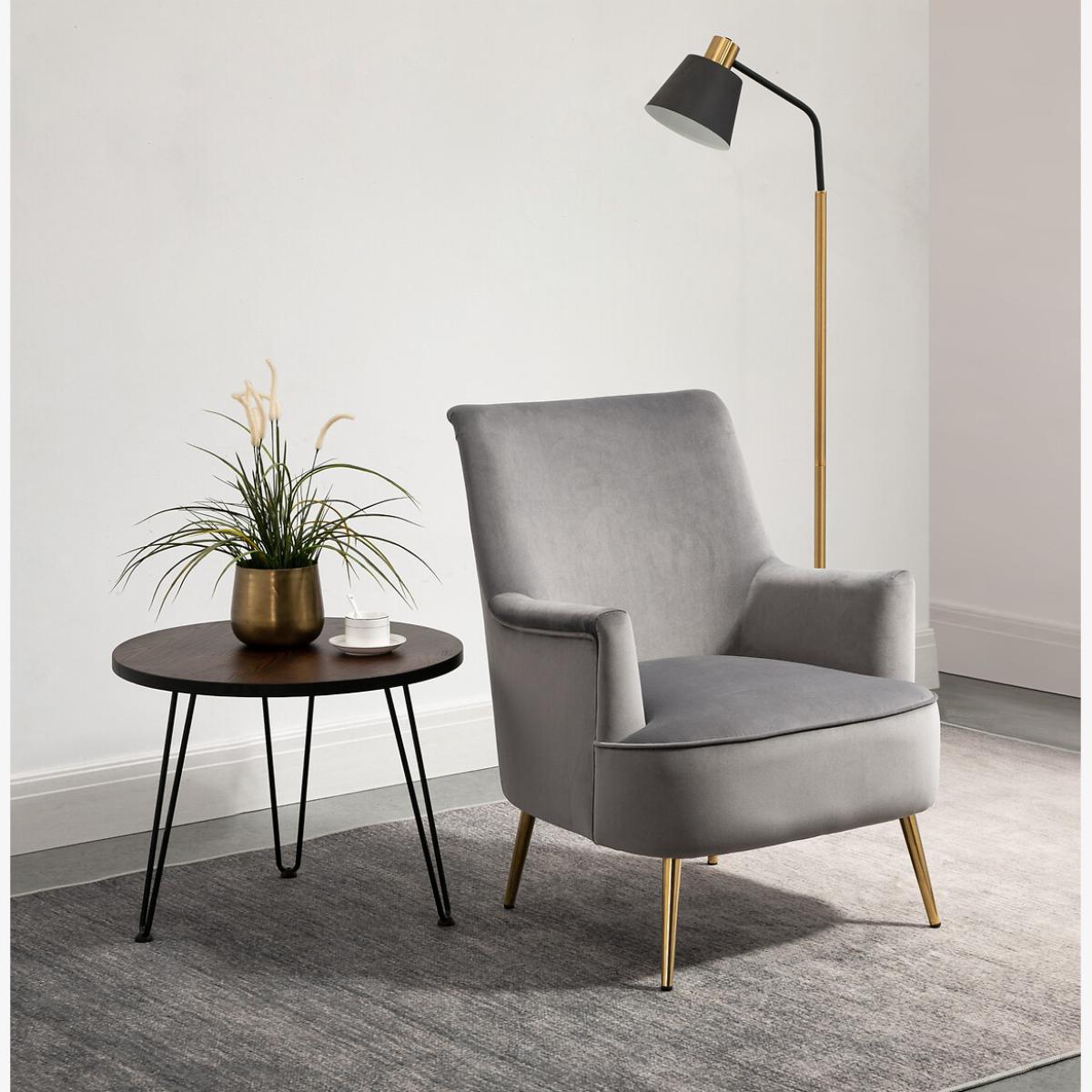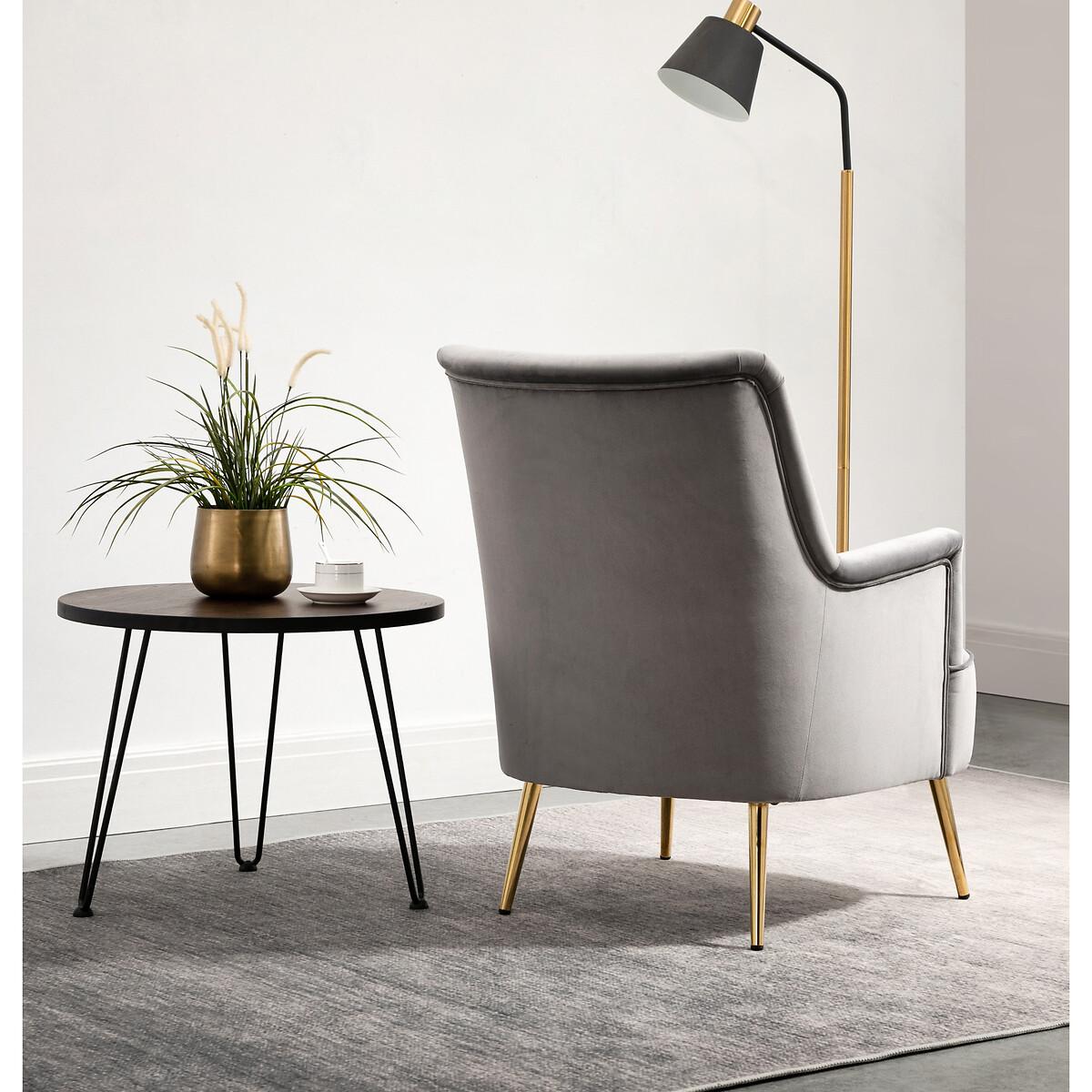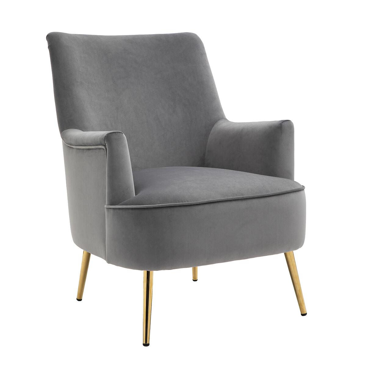 Lean into elegance with this striking accent chair featuring velvet upholstery, a sloped silhouette with high angular arm rests, and chic art deco style golden legs. Product details• Velvet Upholstery• Art deco style metal legs • Firm comfort level• Foam fillings• Pine and Plywood frame• Assembly required • EUTR Compliant, BS5852 compliant• 1 Year Warranty. Product Composition - FAbric - 100% Polyester, Pine and Plywood Frame, Foam Fillings. Product Dimensions - D84 cm x W70 cm x H90 cm , Weight - 11 KGSeat Height - 47 cm. Seat Width-48.5 cm. Seat Depth - 53 cm. Back Height - 50 cm. Arm Height - 62 cm Package Dimensions - 84 cm x 71.5 cm x 70 cm, Weight 14 kg. This product will be dispatched by one of our trusted suppliers. You’ll be contacted by their selected courier about your delivery. Please note: this product cannot be delivered to all Offshore Islands, Northern Ireland or Republic of Ireland. KYOTO01