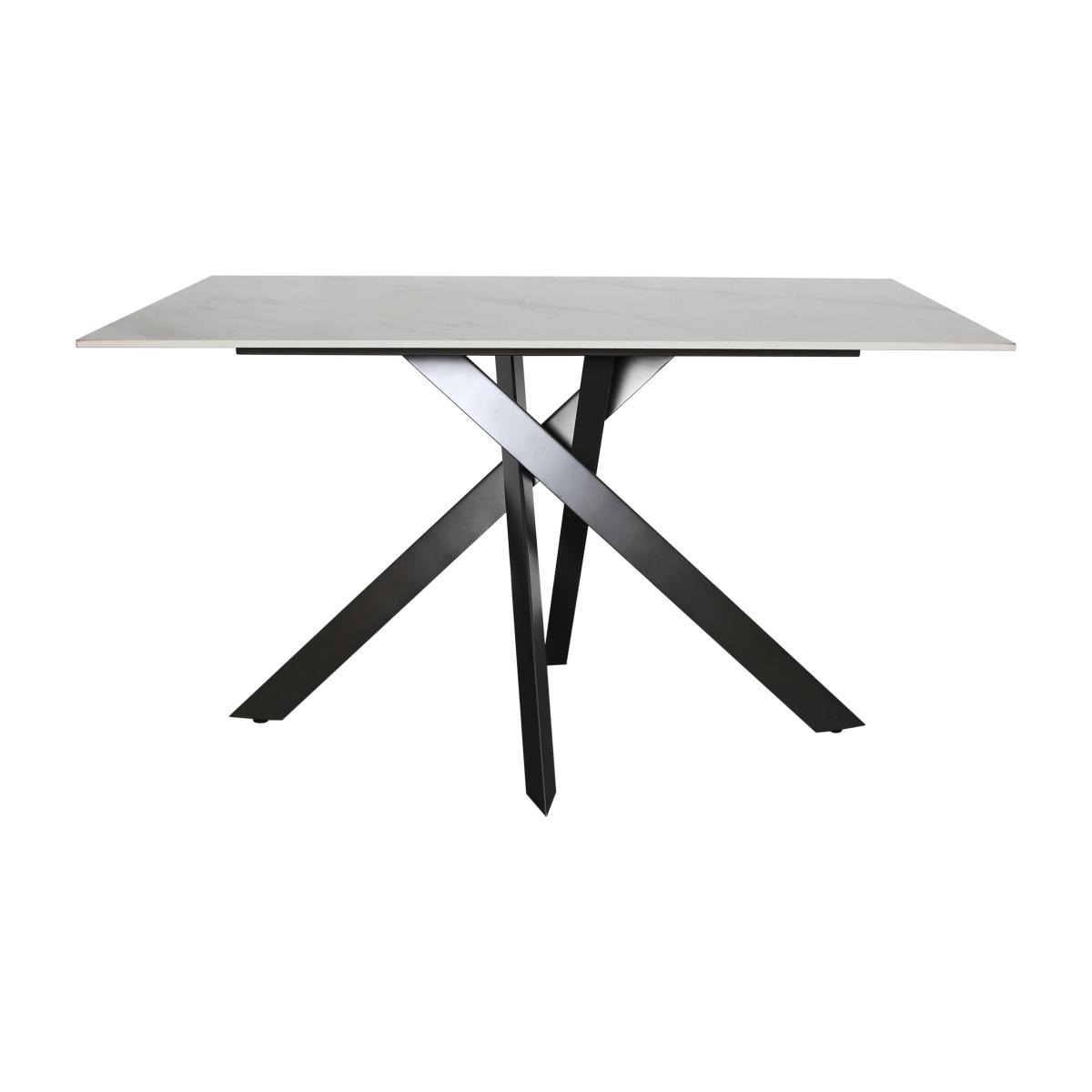 Bold and modern, the Samurai collection combines textures and finishes to eye-catching effect. Table tops are made of sturdy granite-look tempered glass, both practical and stylish. Bases are asymmetric in design, crafted from grey powder-coated metal. The range includes a large extending dining table with an innovative extension mechanism that sees the extra leaf smoothly slide into place in seconds, comfortable dining chairs in a choice of upholstery, dining sets, occasional tables and storage pieces. With its creative design and striking aesthetic, the Samurai collection makes it easy to bring home cool contemporary style. Bring the wow factor to a smaller dining room with this stunning compact dining table with beautiful white sintered stone top and bold asymmetric metal base. Why you'll love it. Bold contemporary finishes meet ergonomic design in this compact extending dining table. Well-crafted modern style. White sintered stone top is absolutely stunning and very hardwearing. Unique asymmetric base design in graphite grey powder-coated metal. This compact dining table with white stone top is part of the Samurai range. What you need to know. Compact dining table seats 6. Metal base. Table top is made from sintered stone, which is created using natural stone. Top is coated with glass and may show light surface scratches with use. Use placemats and coasters at all times to protect the surface. Mop spills quickly, and avoid abrasive cloths and cleaning materials. Designed to pair with the Samurai range’s dining chairs.