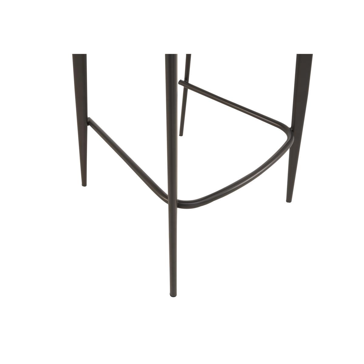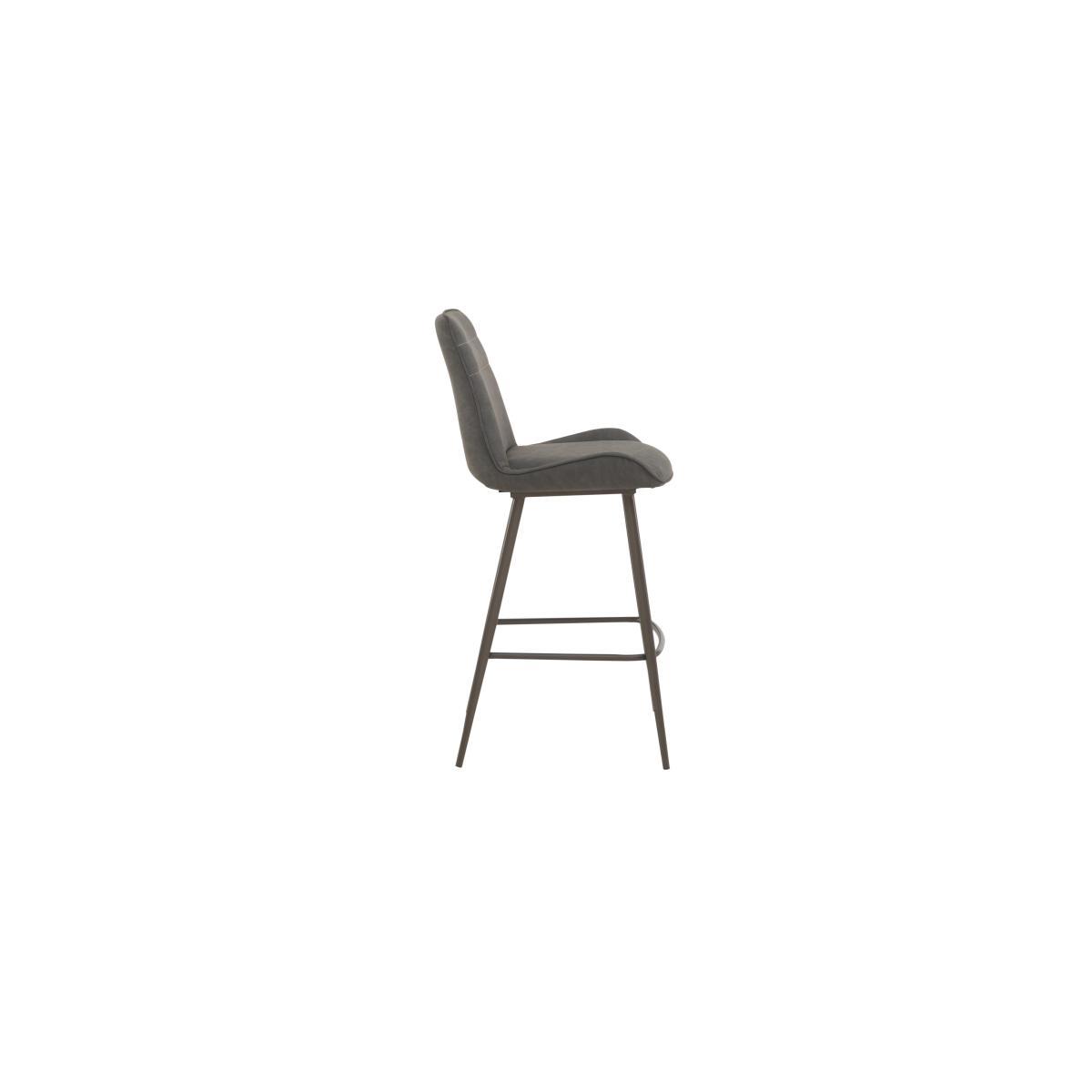 Bold and modern, the Samurai collection combines textures and finishes to eye-catching effect. Table tops are made of sturdy granite-look tempered glass, both practical and stylish. Bases are asymmetric in design, crafted from grey powder-coated metal. The range includes a large extending dining table with an innovative extension mechanism that sees the extra leaf smoothly slide into place in seconds, comfortable dining chairs in a choice of upholstery, dining sets, occasional tables and storage pieces. With its creative design and striking aesthetic, the Samurai collection makes it easy to bring home cool contemporary style. This effortlessly cool bar stool is built for both comfort and style. Beautifully upholstered in soft faux leather and deeply cushioned, it has a diner-friendly high back and integrated footrest. Why you'll love it. Contemporary bar stool makes a bold statement. Well-crafted modern style. Fully upholstered in dark grey faux leather with simple linear stitching detail. Beautifully cushioned with a comfortable and supportive back. Slender angled powder-coated metal legs with footrest in graphite grey. Designed to complement the Samurai bar table. This bar stool is also available fully upholstered in faux leather. What you need to know. Seat cushioning is made of foam. Part of the Samurai collection of striking furniture for living and dining rooms.