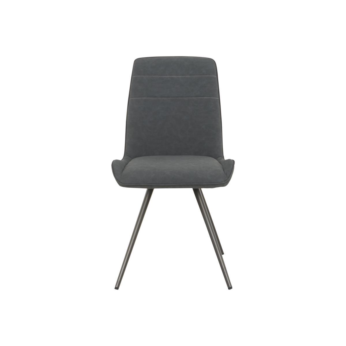 The perfect dining table demands a stylish dining chair, and here it is. The Samurai dining chair is simple and striking, comfortable and well- crafted, showcasing an on- trend combination of grey metal and faux leather. Why you'll love it Contemporary dining chair makes a bold statement. Well- crafted modern style. Fully upholstered in dark grey faux leather with simple linear stitching detail. Beautifully cushioned with a gently curved shape that conforms to the sitter’s back. Slender angled powder- coated metal legs in graphite grey. Designed to complement the Samurai extending dining table. This dining chair is also available with a two- tone velvet and faux leather finish. What you need to know Seat cushioning is made of foam. Part of the Samurai collection of striking furniture for living and dining rooms.