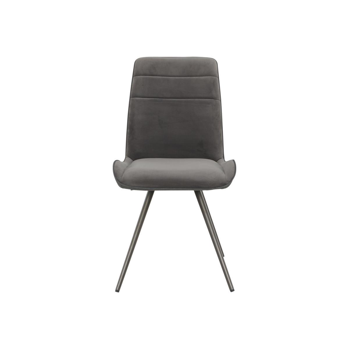 It’s the two- tone finish that sets this dining chair apart. The chair seat is upholstered in velvet, its back in dark grey faux leather. With its metal legs and graceful curves, it’s a stylish addition to any dining room. Why you'll love it Contemporary dining chair makes a bold statement. Well- crafted modern style. Two- tone upholstery in velvet, in a choice of colours, and dark grey faux leather. Beautifully cushioned with a gently curved shape that conforms to the sitter’s back. Simple linear stitching detail. Slender angled powder- coated metal legs in graphite grey. Designed to complement the Samurai extending dining table. This dining chair is also available fully upholstered in faux leather. What you need to know Seat cushioning is made of foam. Part of the Samurai collection of striking furniture for living and dining rooms.