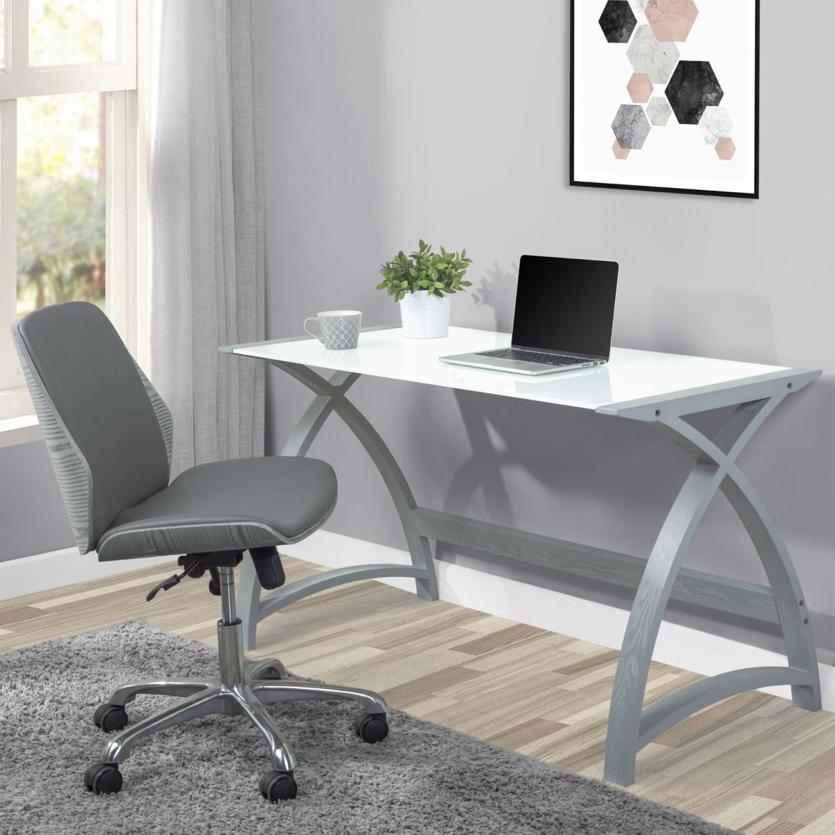 I love this desk chair for its sleek, modern look and versatility. Its grey tone makes it incredibly adaptable, working well in everything from minimalist and contemporary studies to more eclectic or industrial home offices. The armless design keeps it compact and unobtrusive, which is perfect for smaller spaces or creating a clean, clutter-free environment. For styling, consider pairing it with a streamlined desk and a simple, functional workspace setup. Adding a touch of colour through accessories like cushions or throws can brighten the overall look without overpowering the aesthetic. Practicality-wise, its adjustable height and rolling base make it ideal for daily comfort and ease of movement.